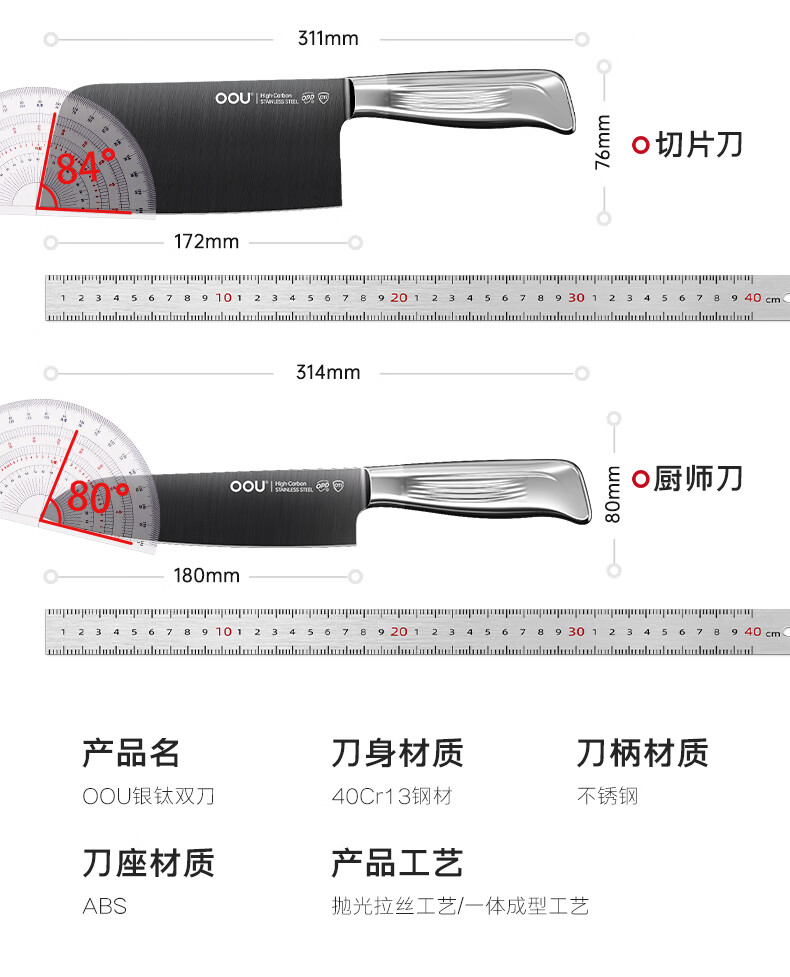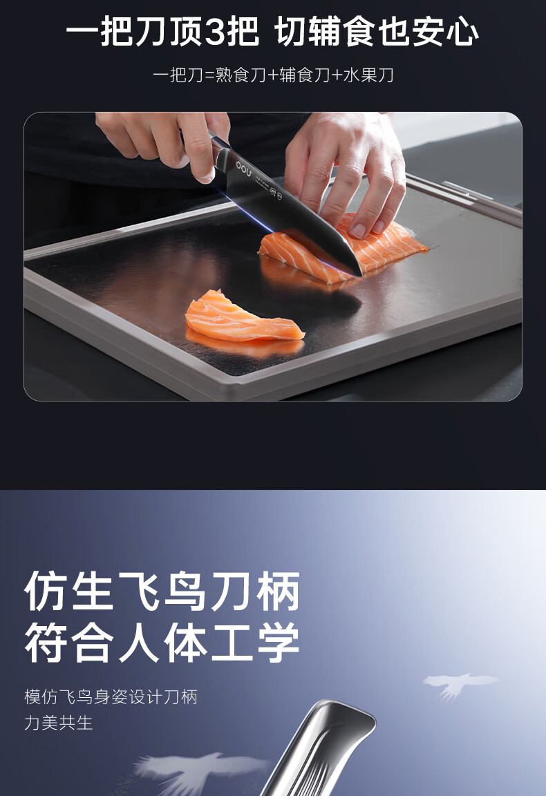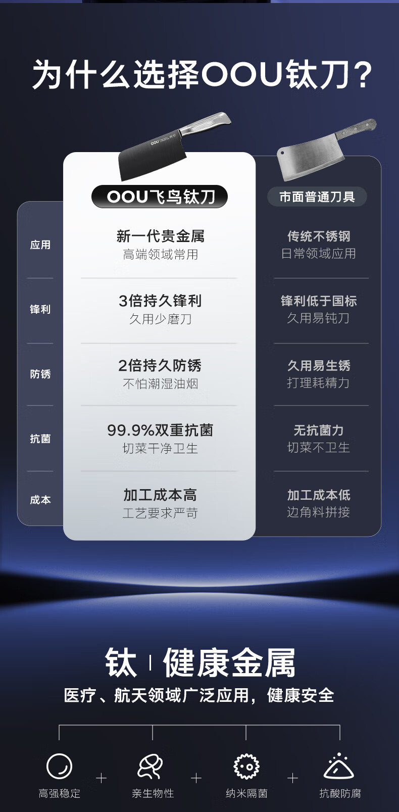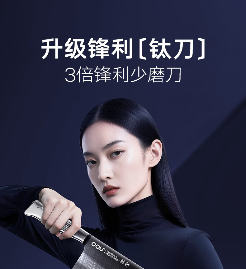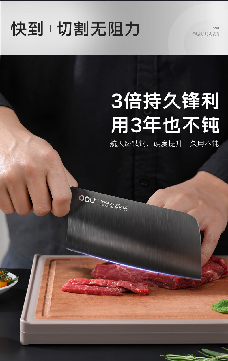 OOU厨房刀具全套装家用菜刀钛材质切菜切肉砍骨厨师专用防锈抗菌钛刀 【锋利防锈】BO飞鸟切片刀