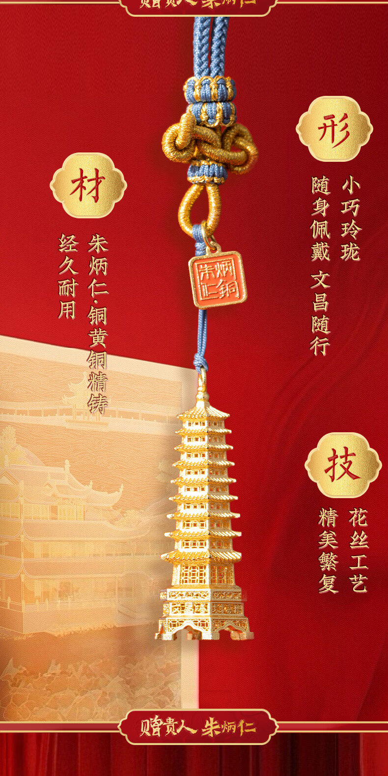 朱炳仁铜 状元文昌塔挂件 家居日用书房装饰文运挂件礼品装饰品礼物 状元文昌塔挂件
