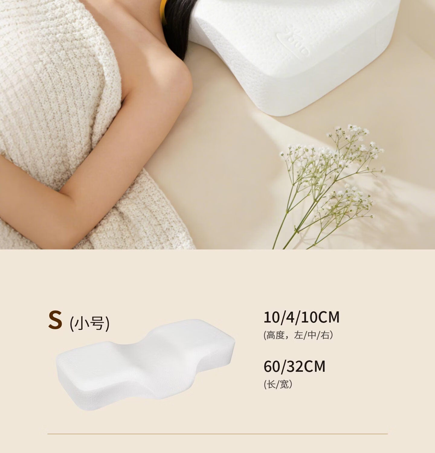 四维康颈椎护养枕深度睡眠颈椎专用枕头记忆棉枕头蝶形枕慢回弹枕芯 白色|S码 单只 身高150-165cm/体重40-50kg
