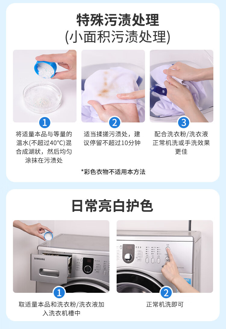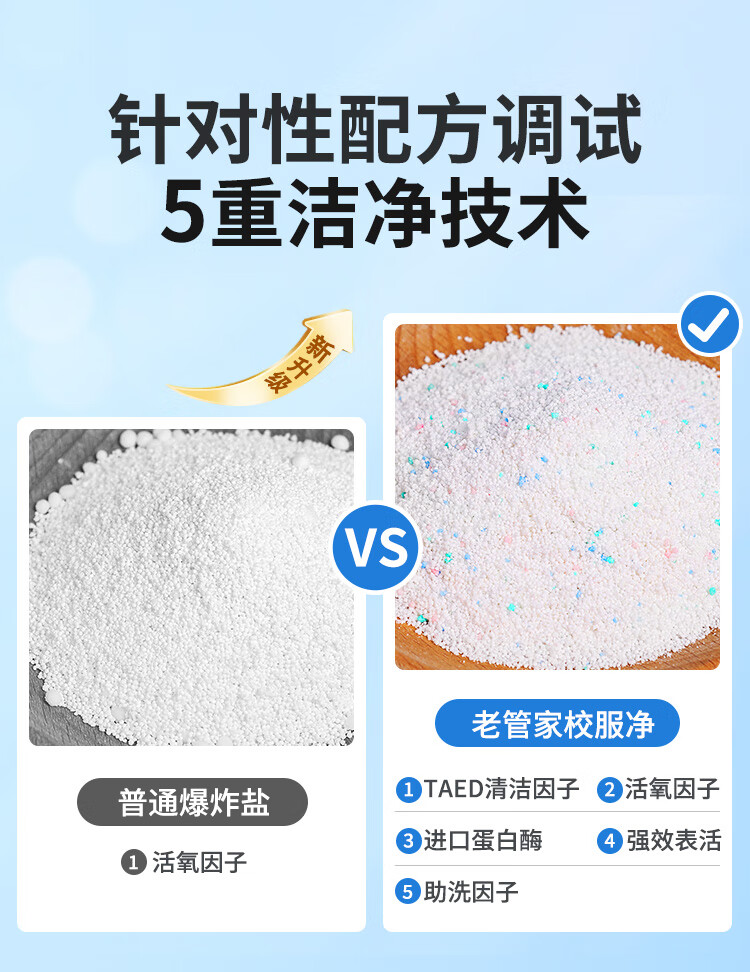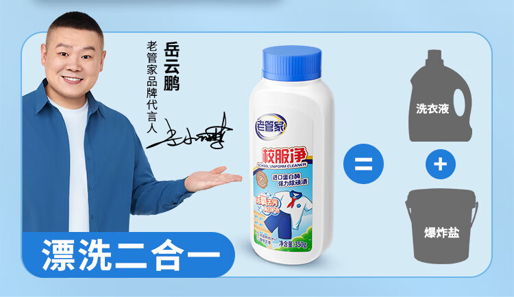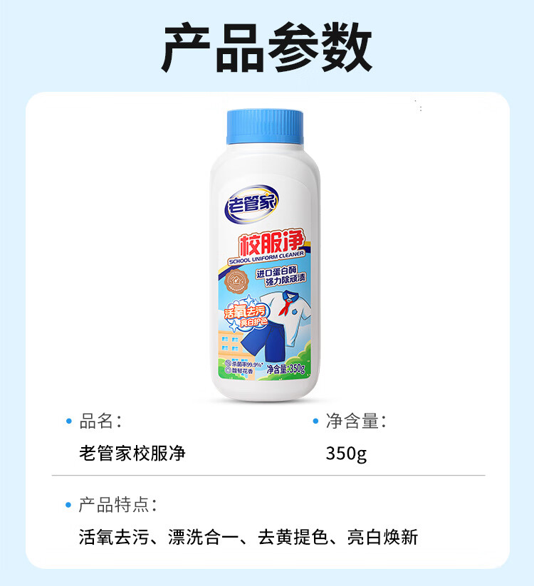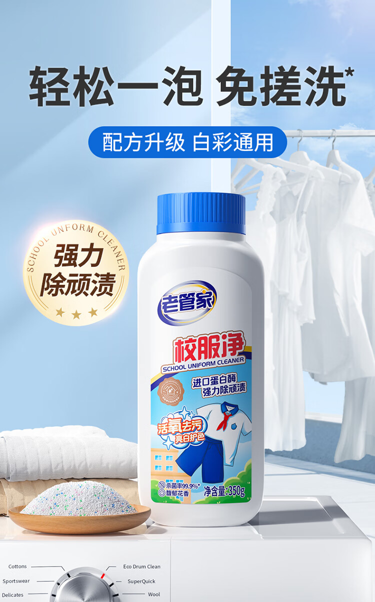 老管家校服净爆炸盐彩漂粉去污渍清洗剂去油渍衣服洗衣亮白增艳清洁剂 350g*3瓶【量贩装】