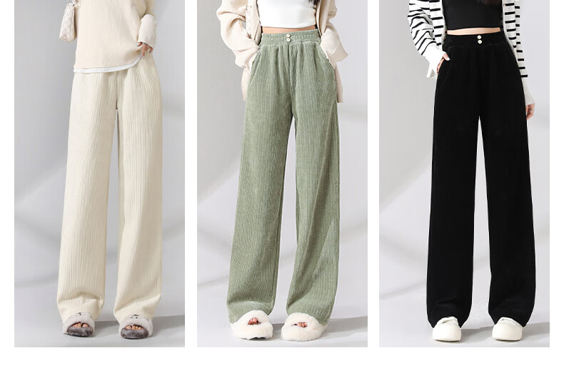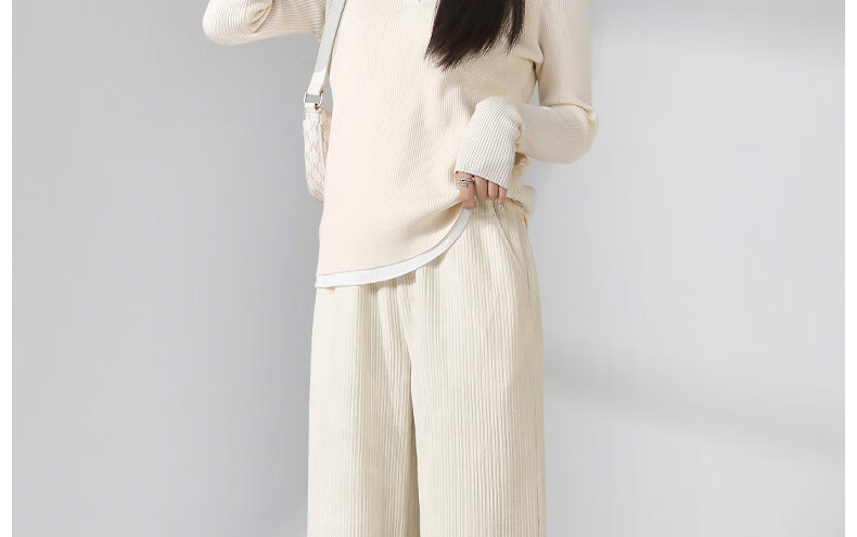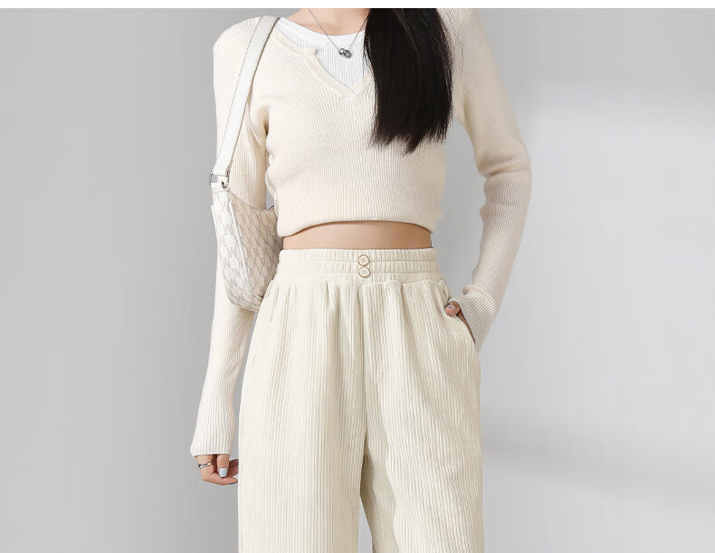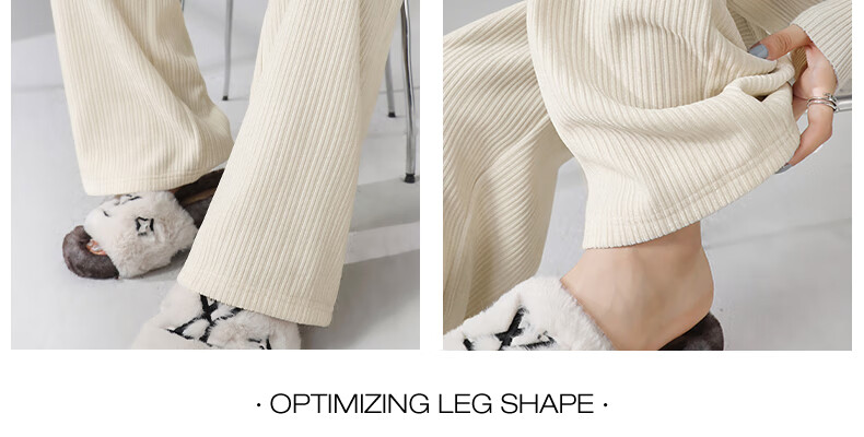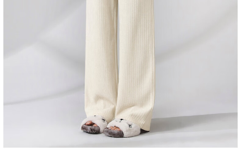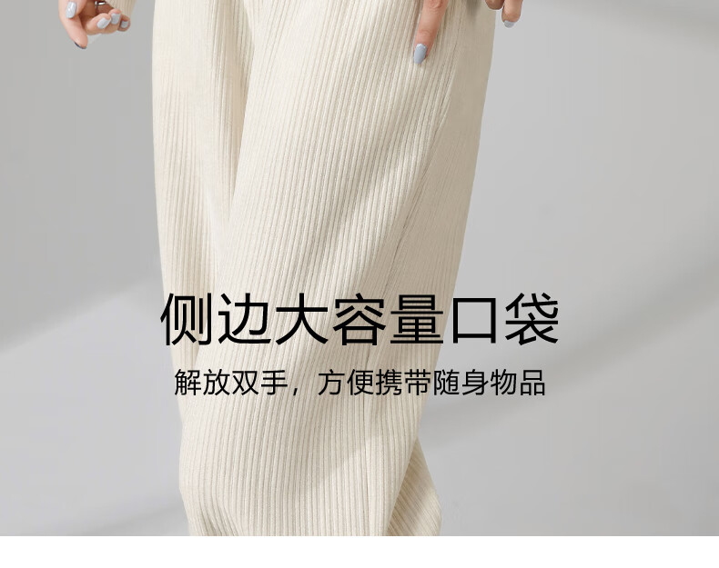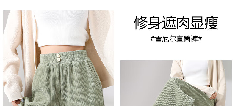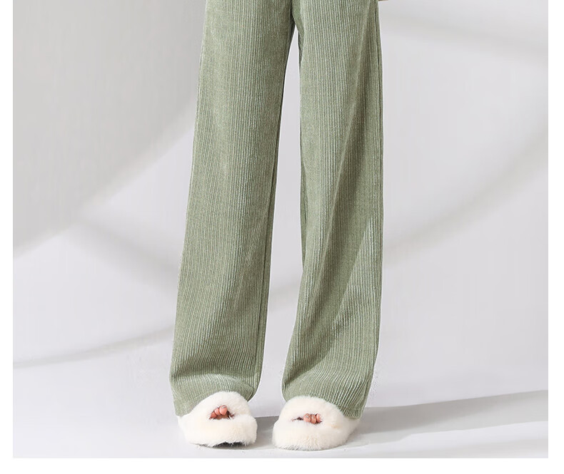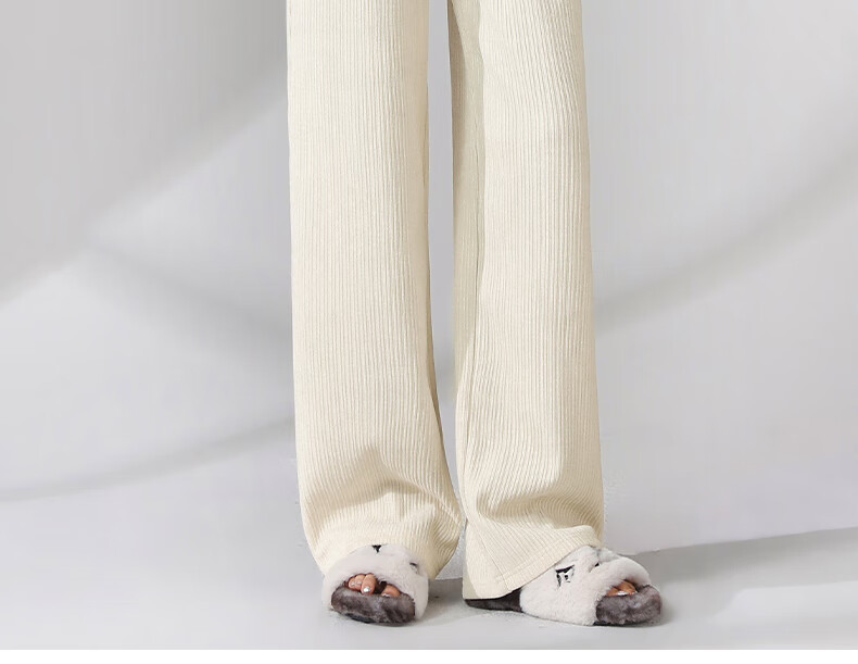 班尼路S&K系列裤子女装雪尼尔直筒裤秋冬新款百搭长裤时尚高级休闲裤1.3 杏#纯色 S