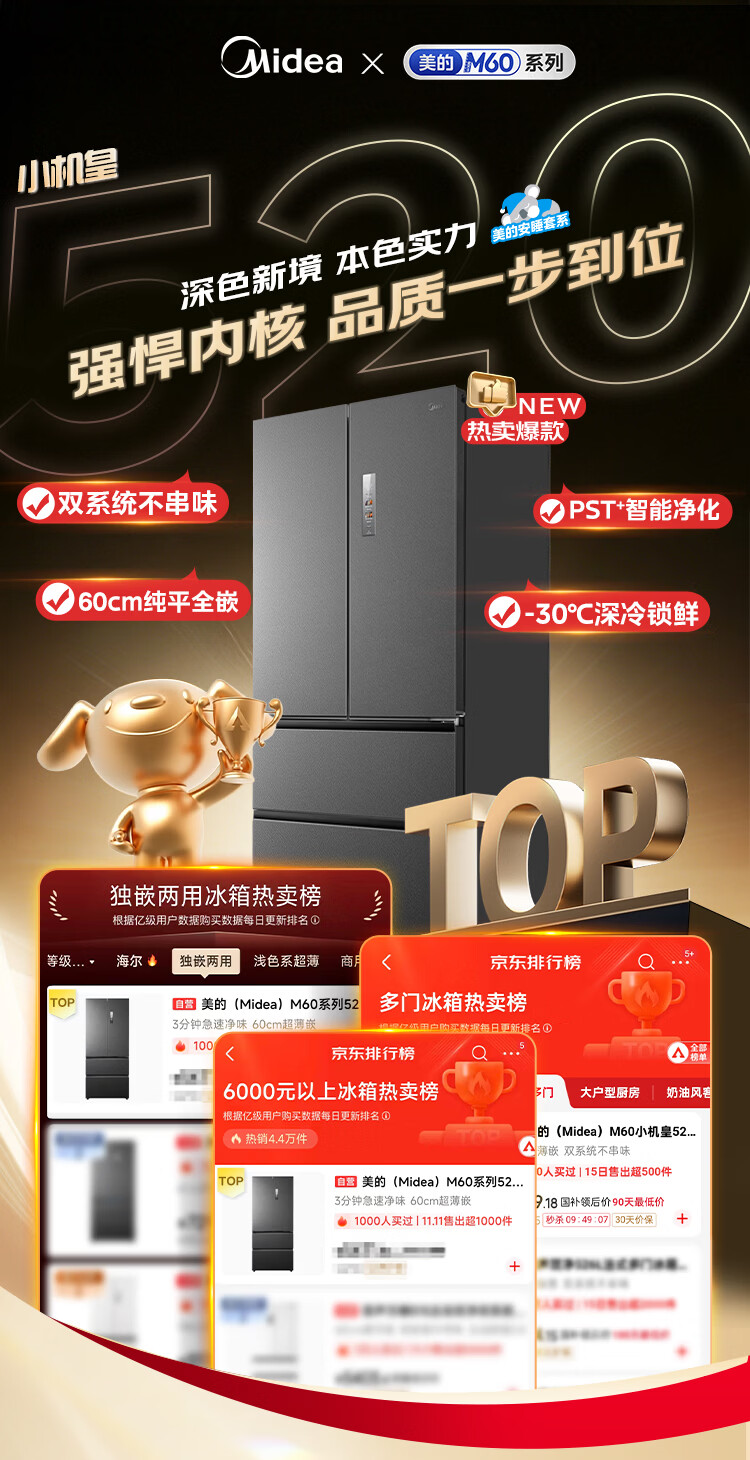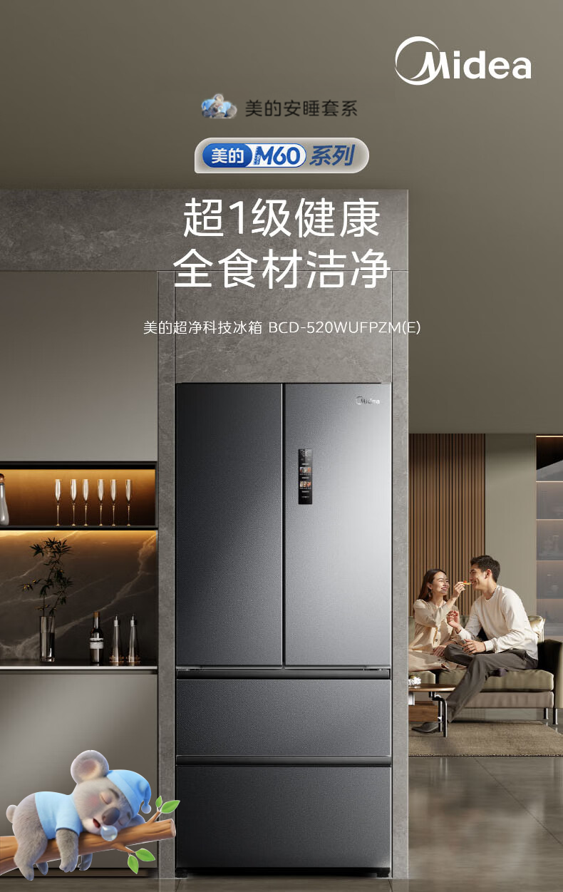 美的(Midea)安睡系列M60小机皇520升法式多门冰箱零嵌双系统除菌大容一级能效幻影砂BCD-520WUFPZM(E)国家补贴