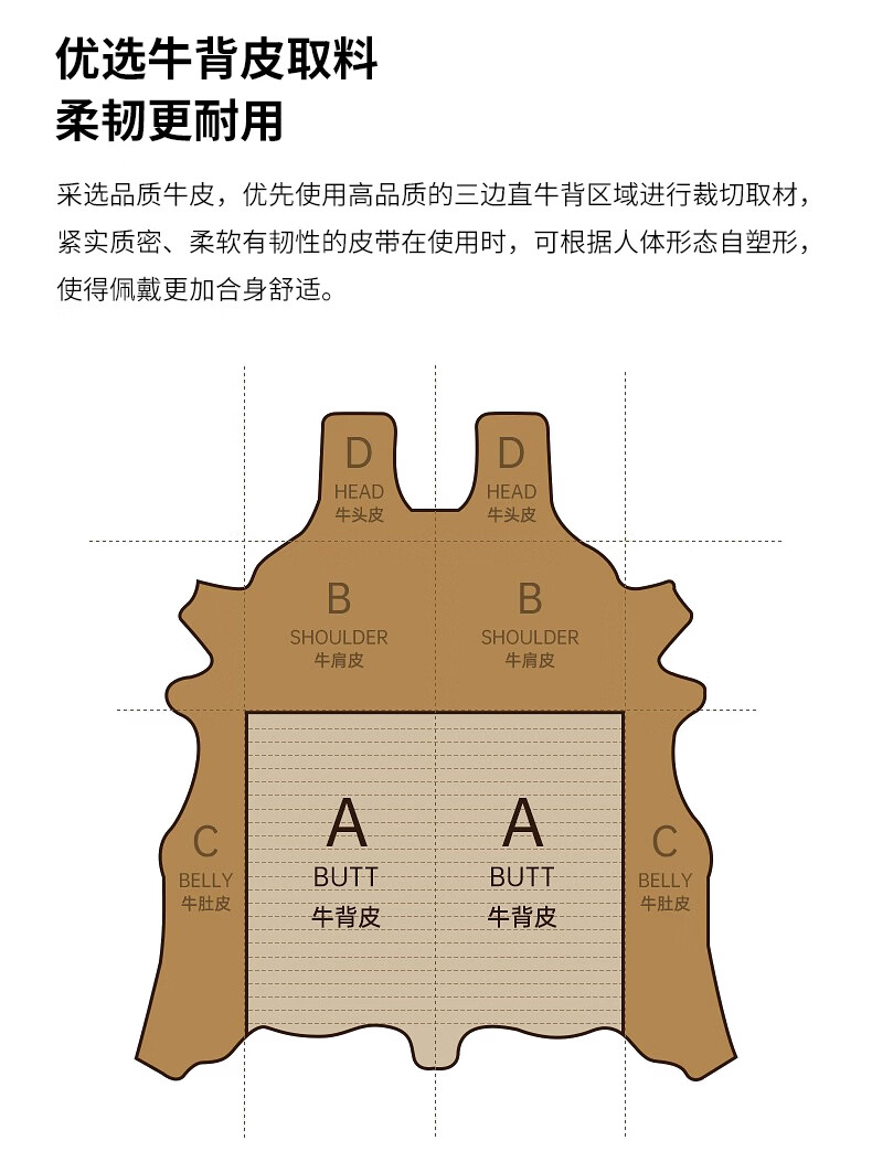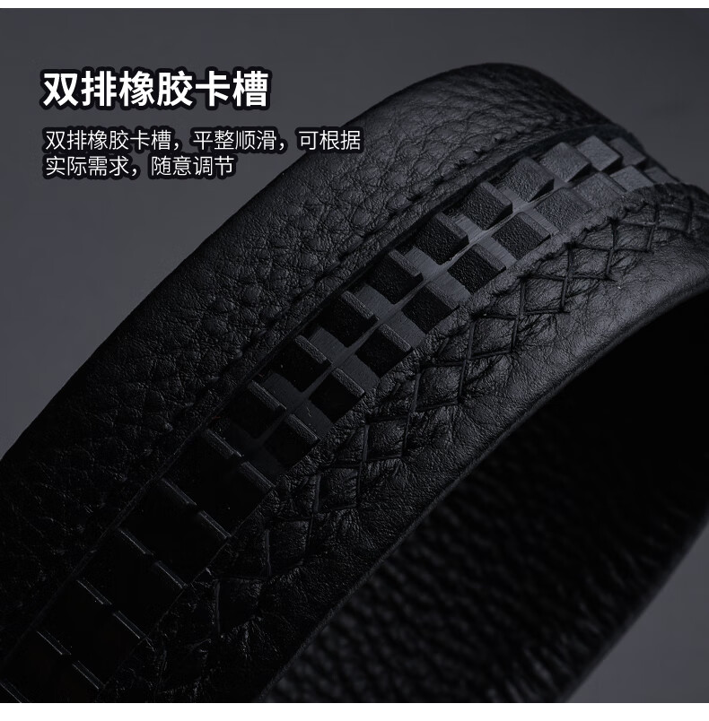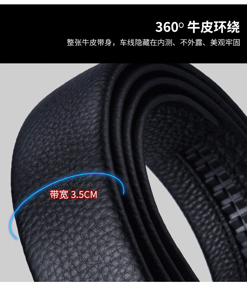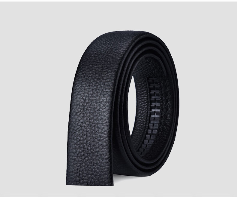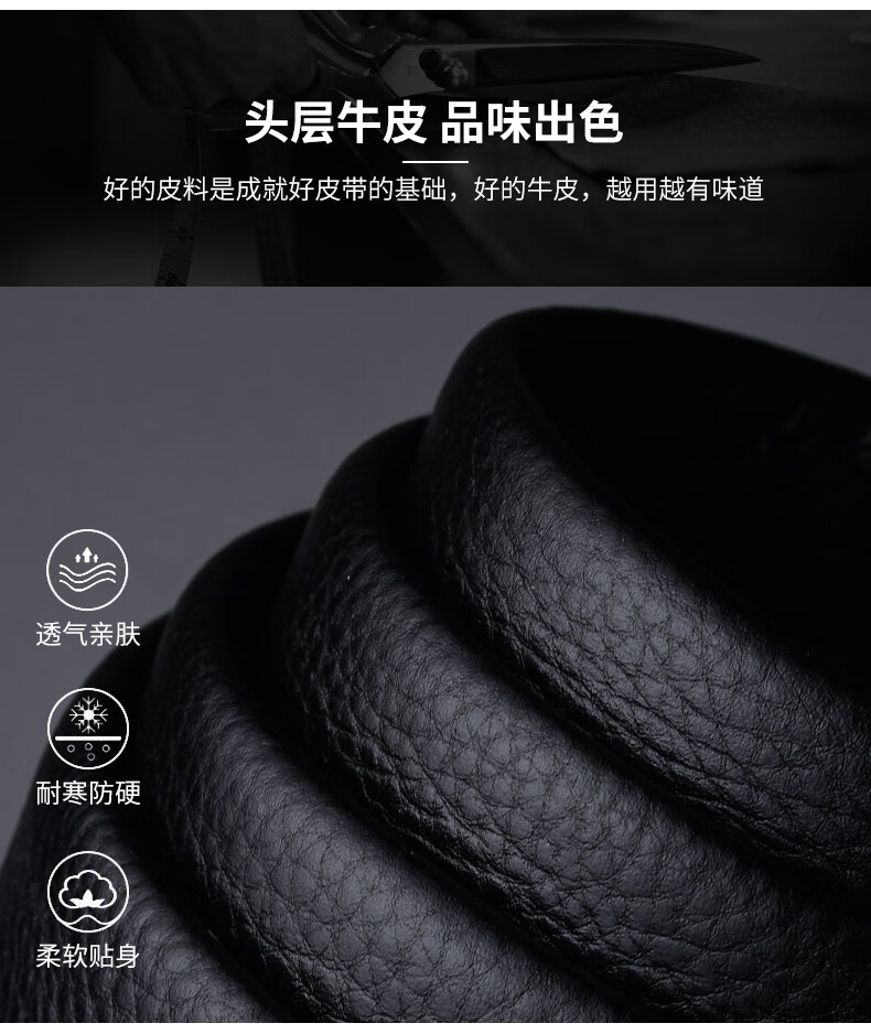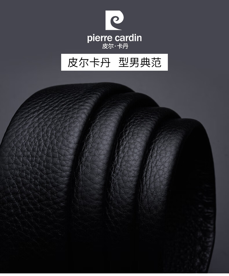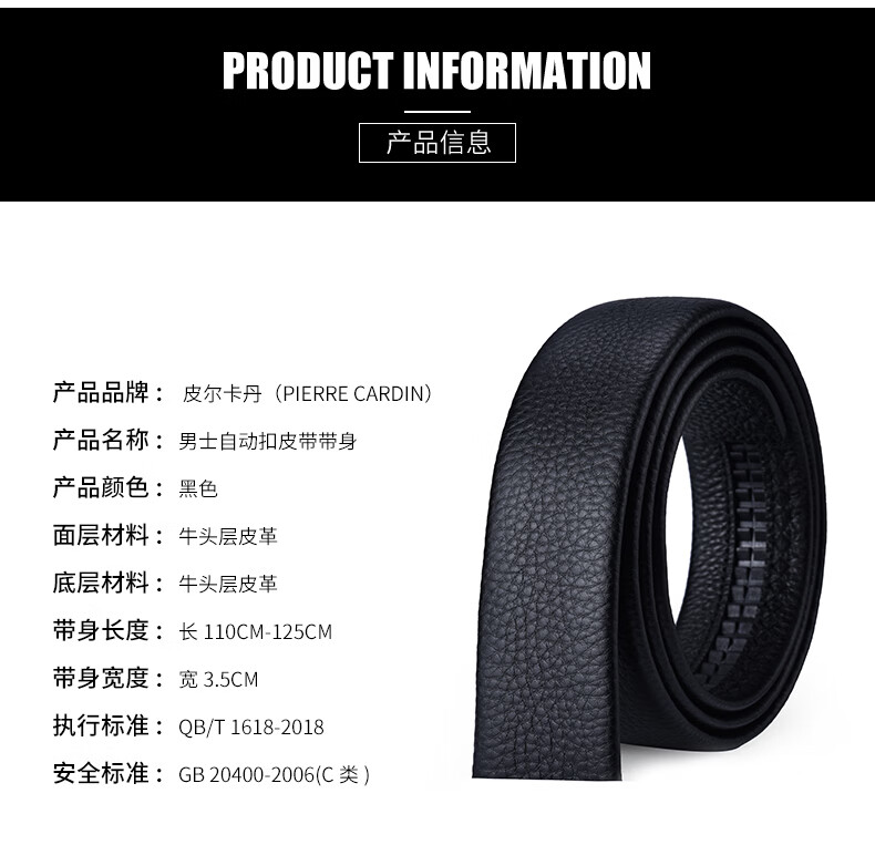 皮尔卡丹【头层牛皮】男士腰带自动扣皮带无扣头带身黑色(宽3.6长115cm)