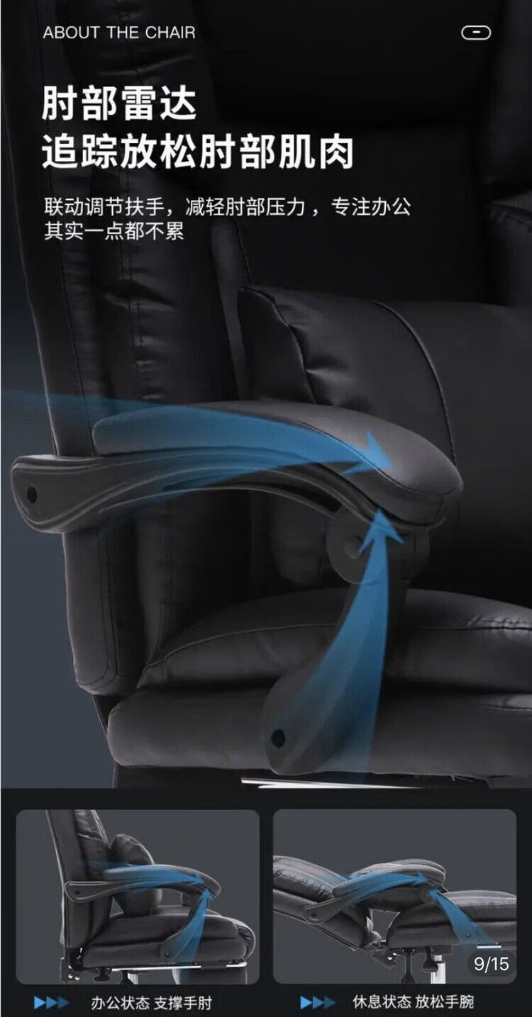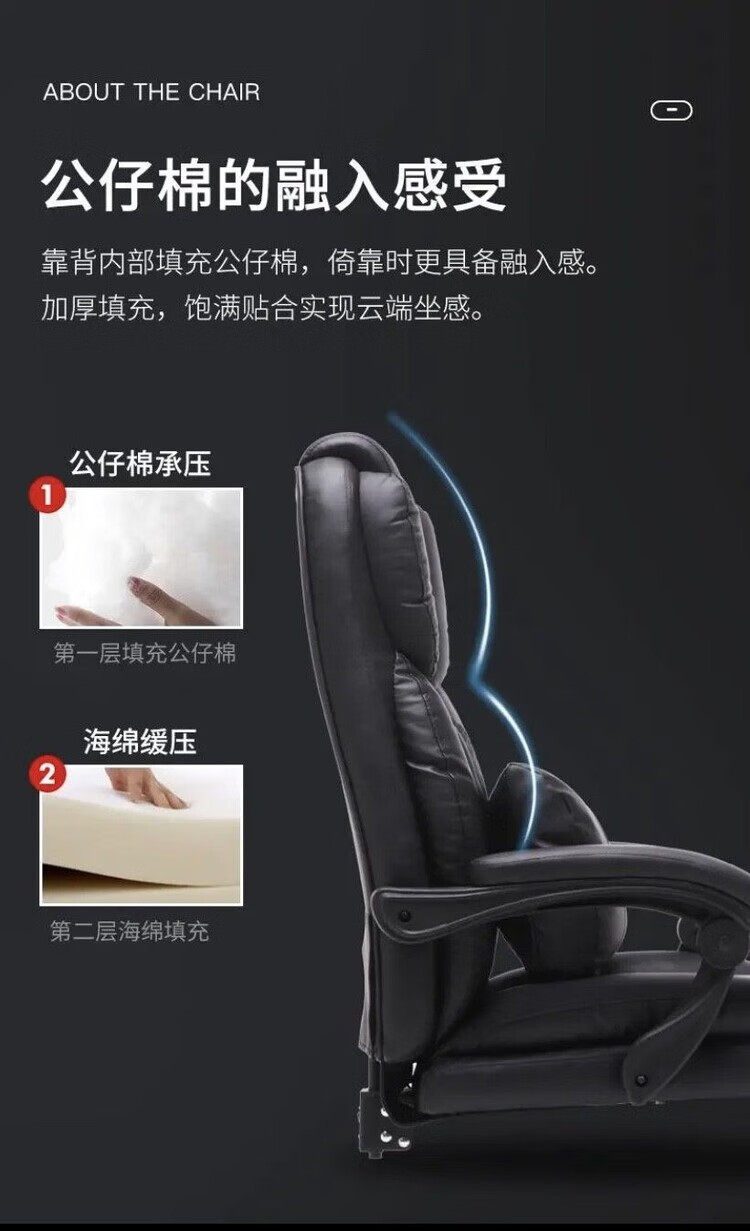 弘星隆升降久坐老板椅电脑椅可躺电竞沙发书房办公可躺椅办公椅子简约 经典黑+坐垫弹簧包+原生海绵 高品质猫抓皮-联动扶手