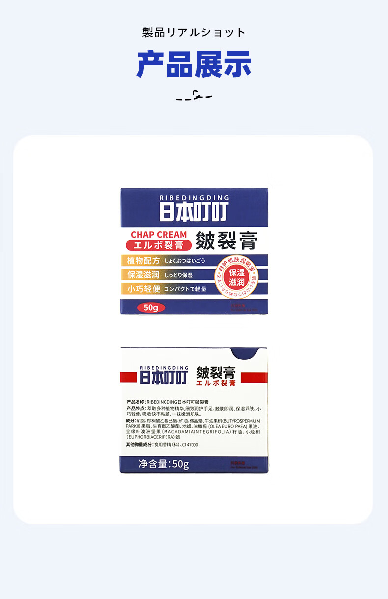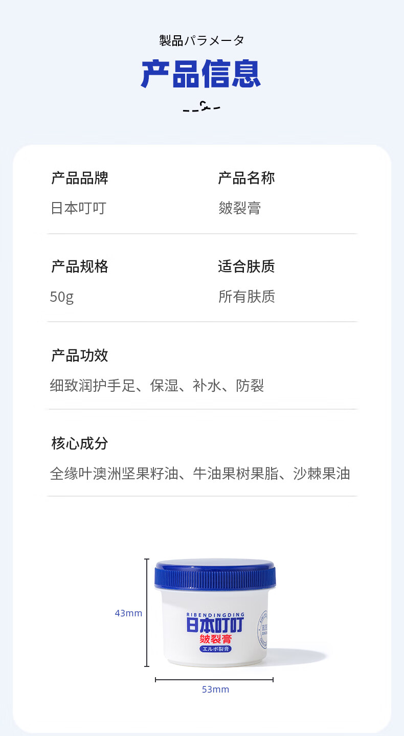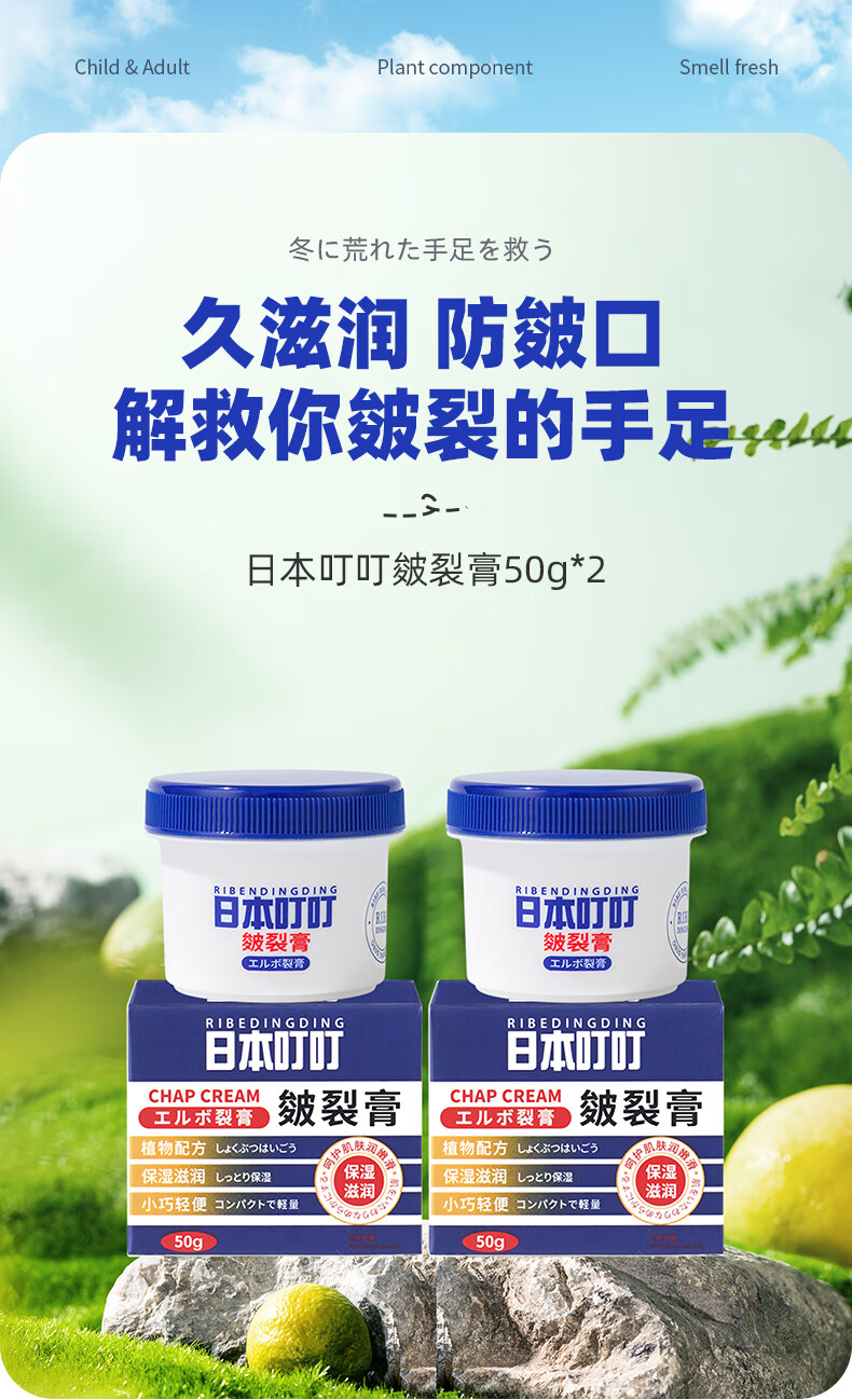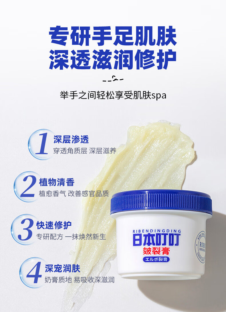 日本叮叮皴裂膏手足干裂润肤霜脚后跟防裂护手足霜滋润肌肤皲裂膏50g*2