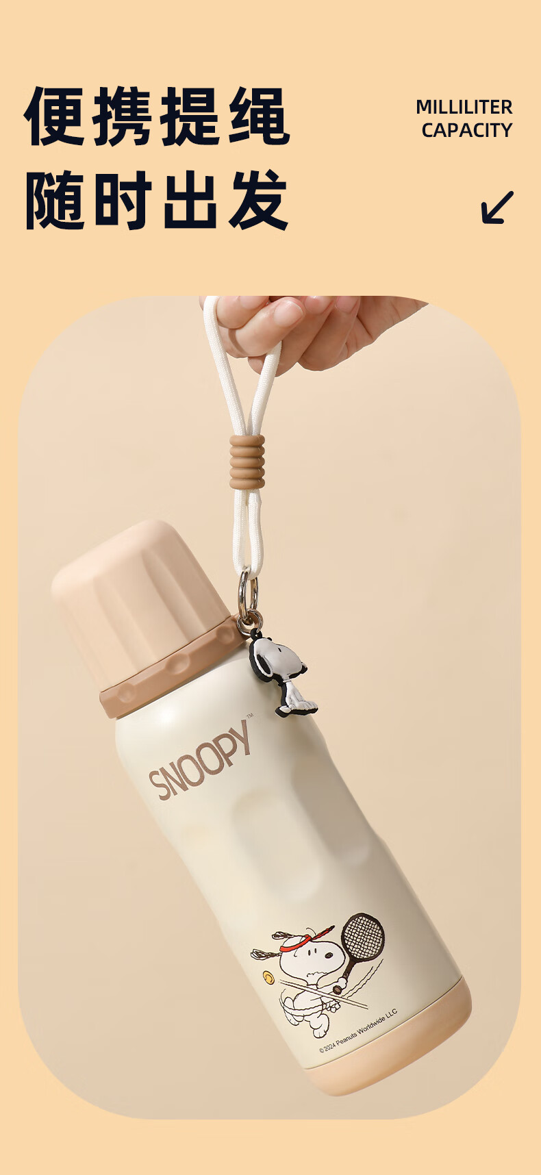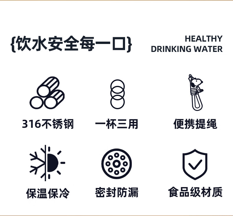 史努比保温杯316不锈钢大容量男女小学生上学专用耐摔便携吸管儿童水杯