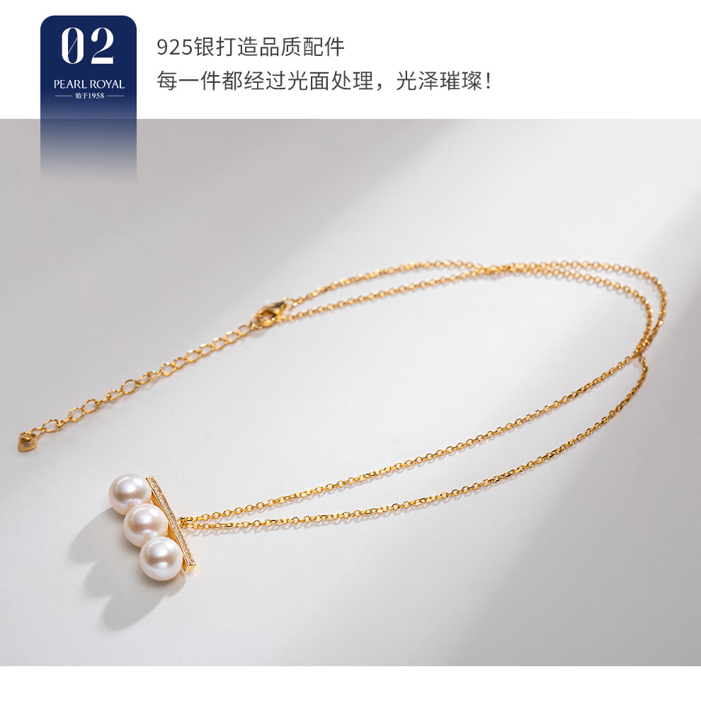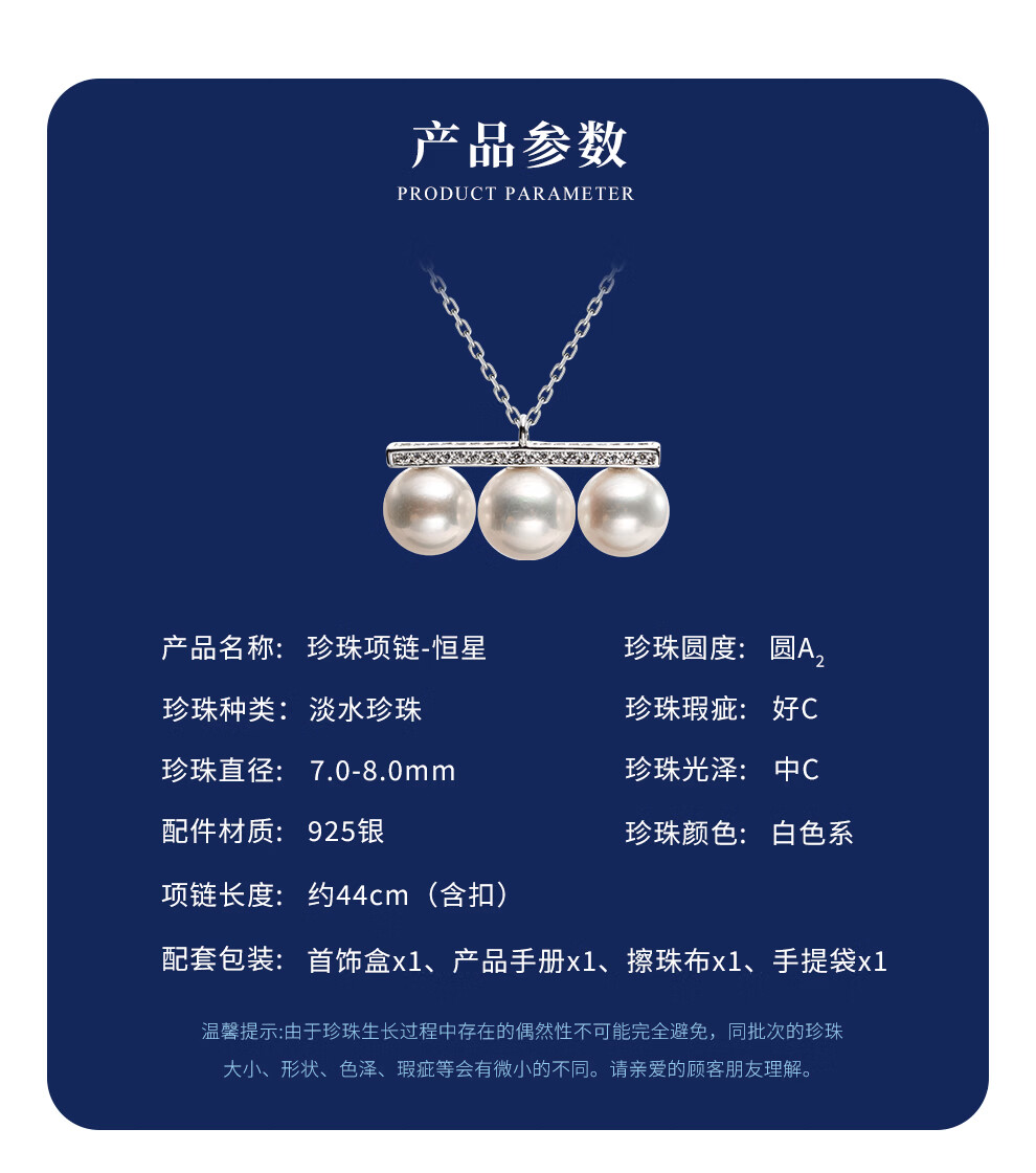 南珠宫恒星925银淡水珍珠项链强光圆形高级感情人节礼物送女友 银色款 7.0-8.0mm