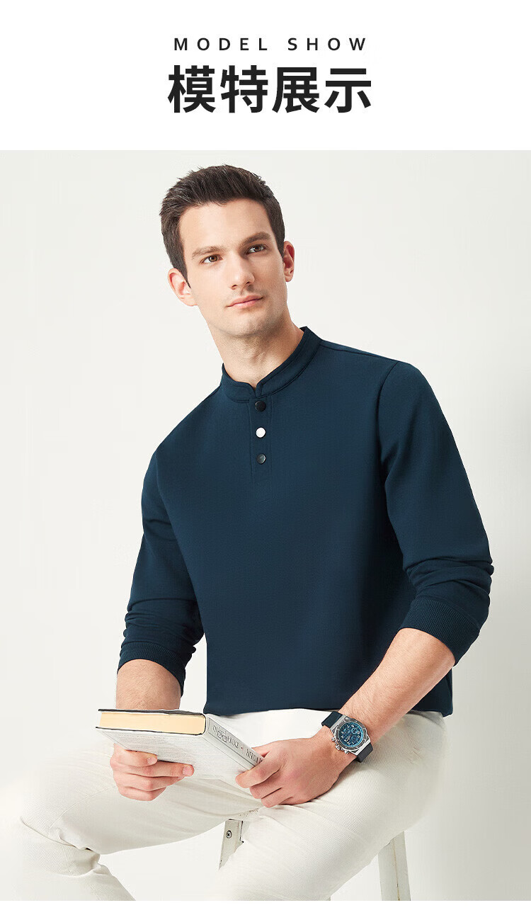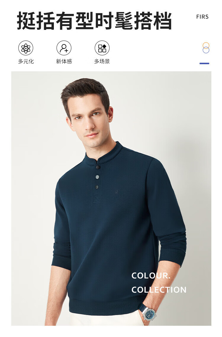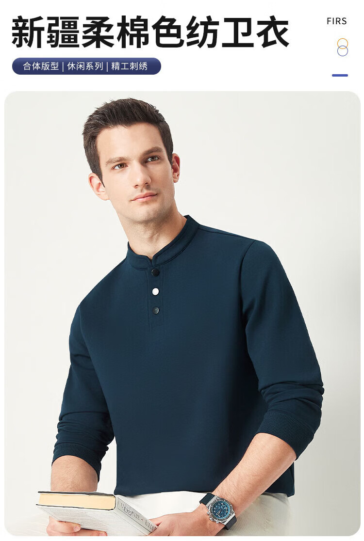 杉杉(FIRS)国风立领卫衣男四季款防风抗皱舒适柔软外搭商务休闲纯色挺括上衣 藏青 M 170/88A