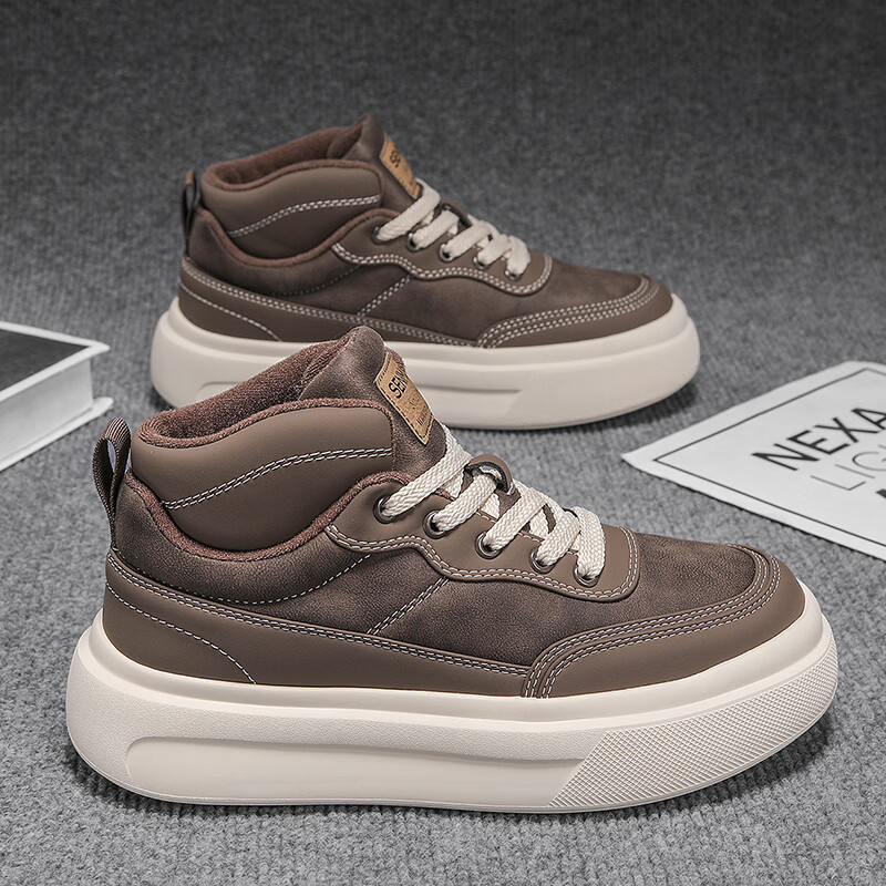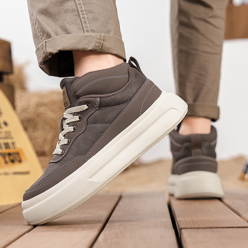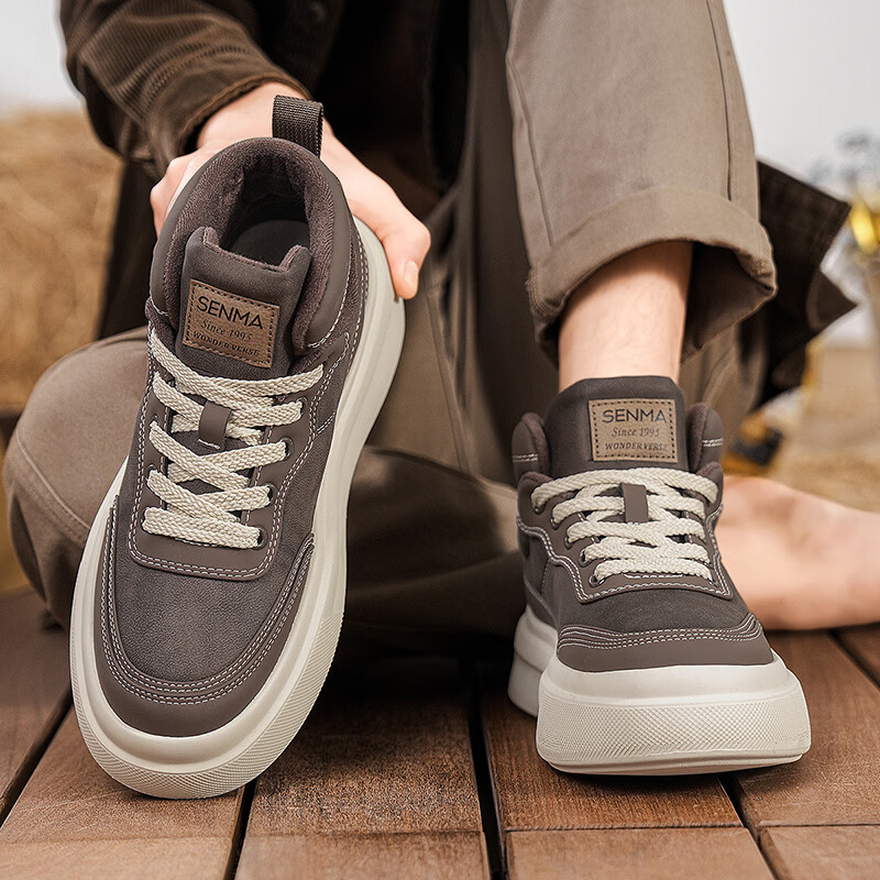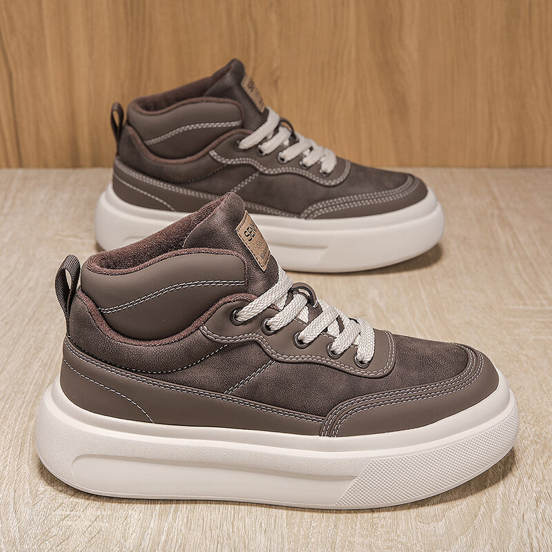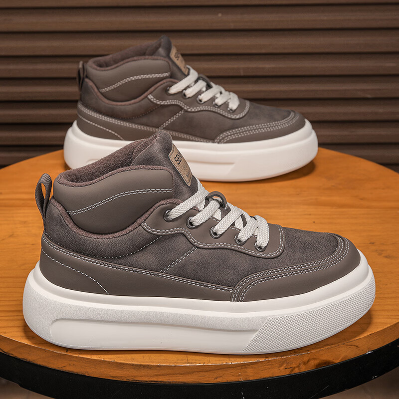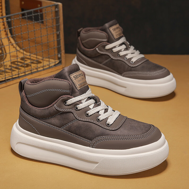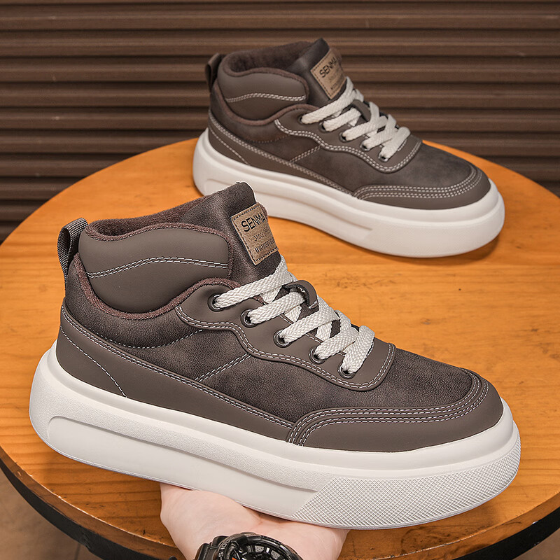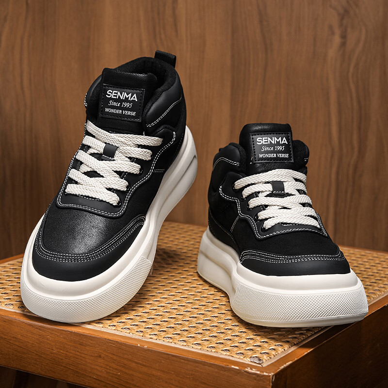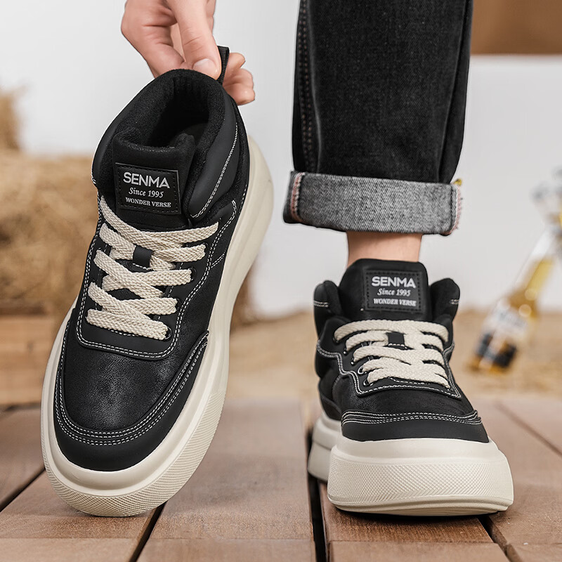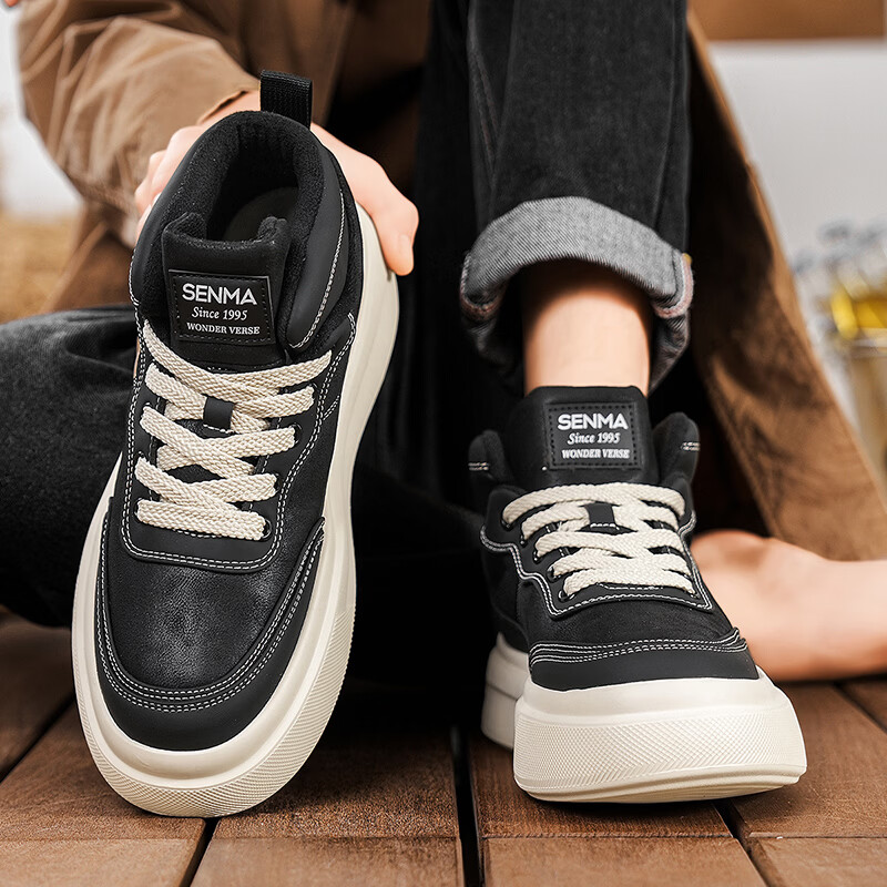 森馬高帮男鞋2026新款冬季加绒保暖棉鞋休闲运动板鞋男士厚底增高棉靴 黑色【基础款】 39 标准码数/现货秒发