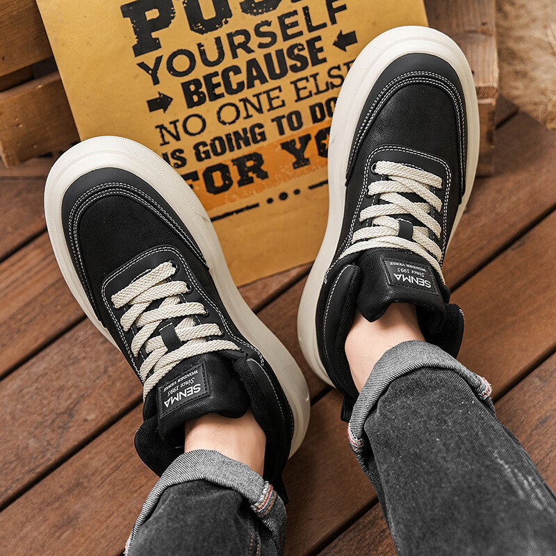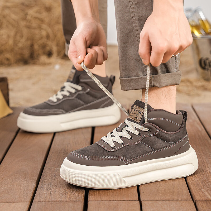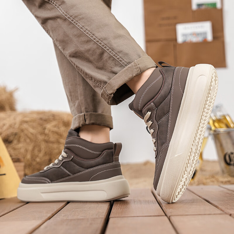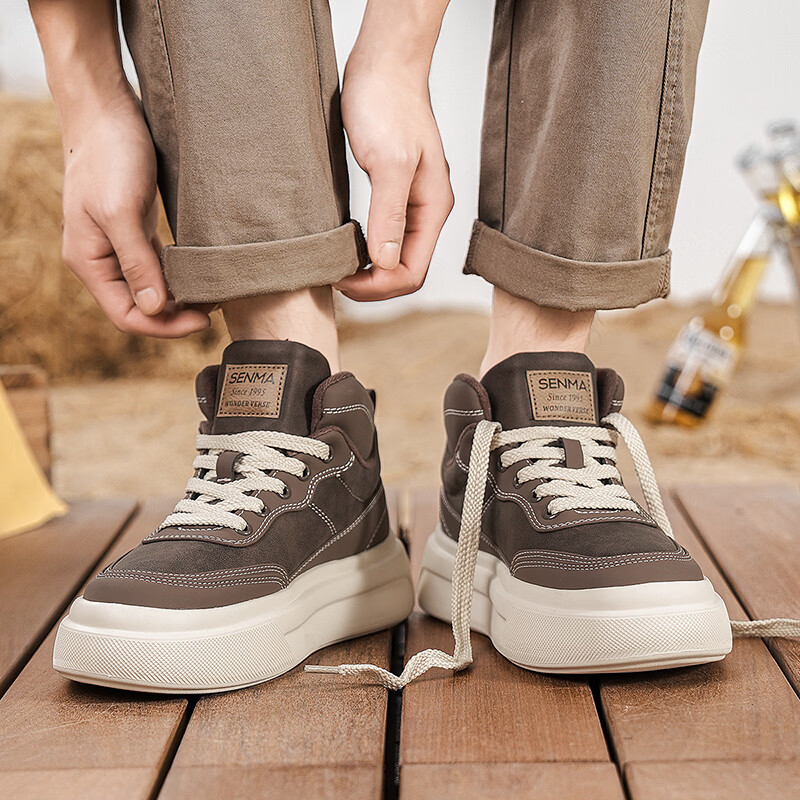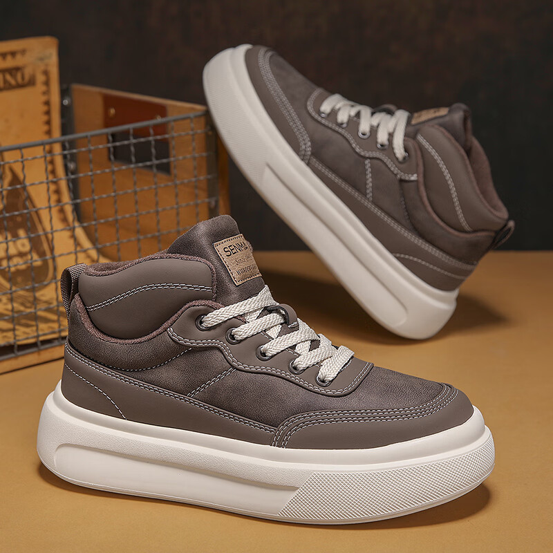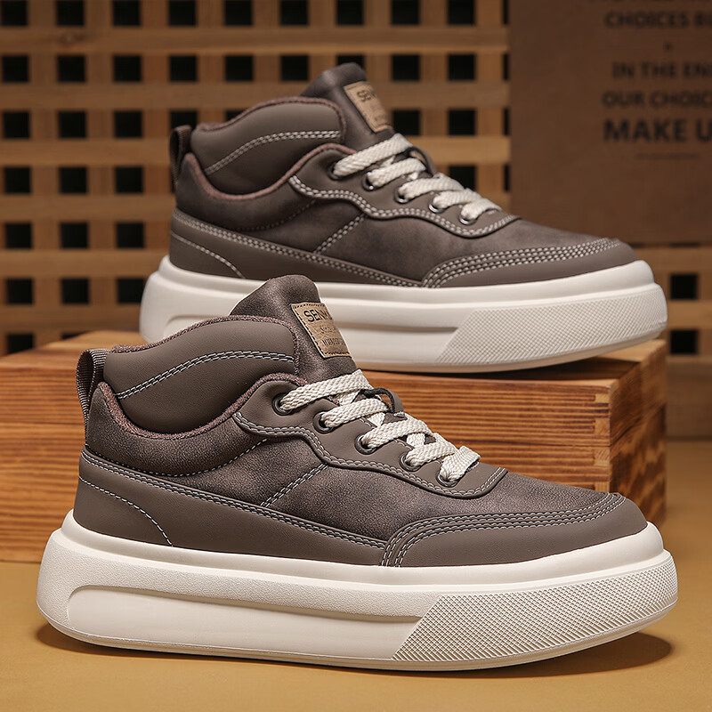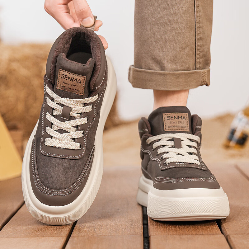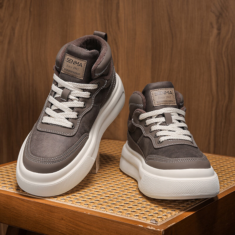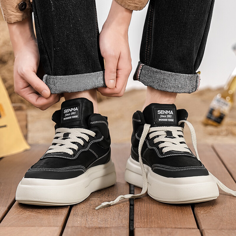 森馬高帮男鞋2026新款冬季加绒保暖棉鞋休闲运动板鞋男士厚底增高棉靴 黑色【基础款】 39 标准码数/现货秒发