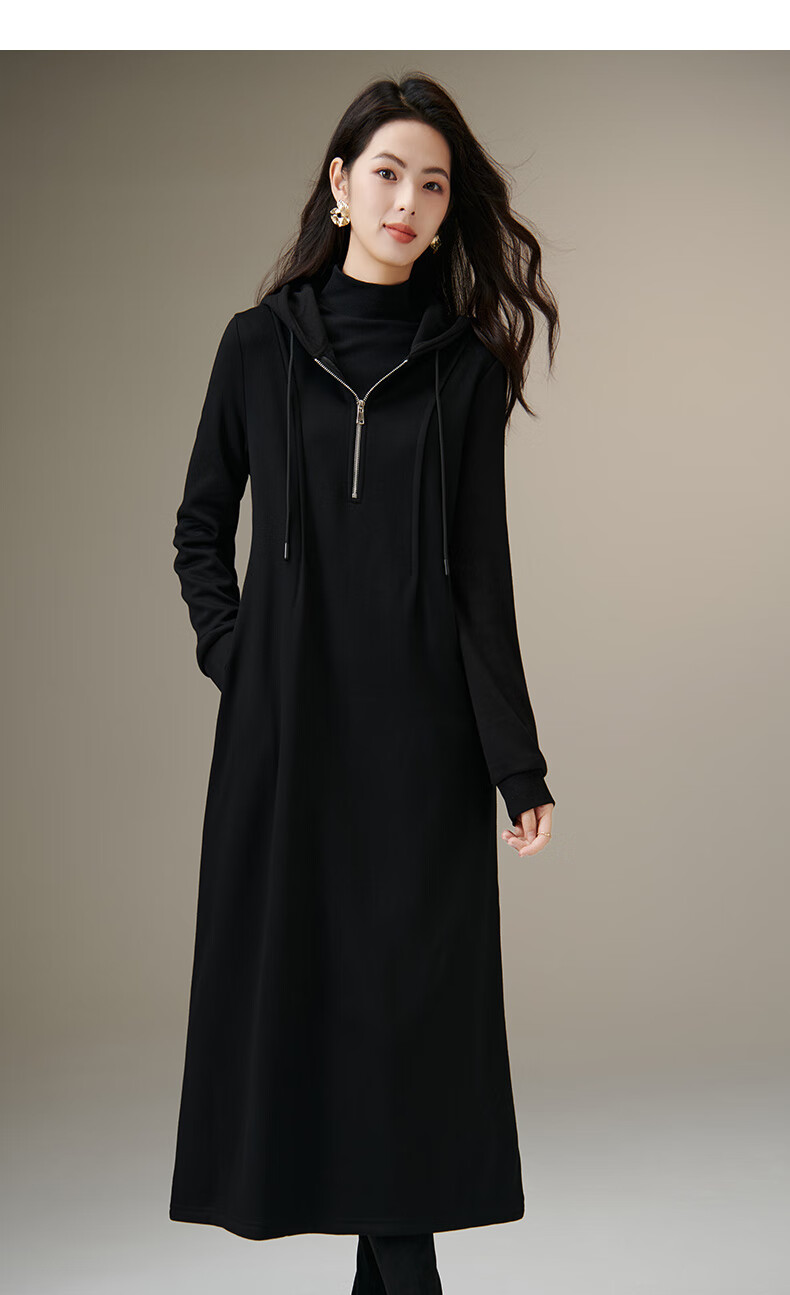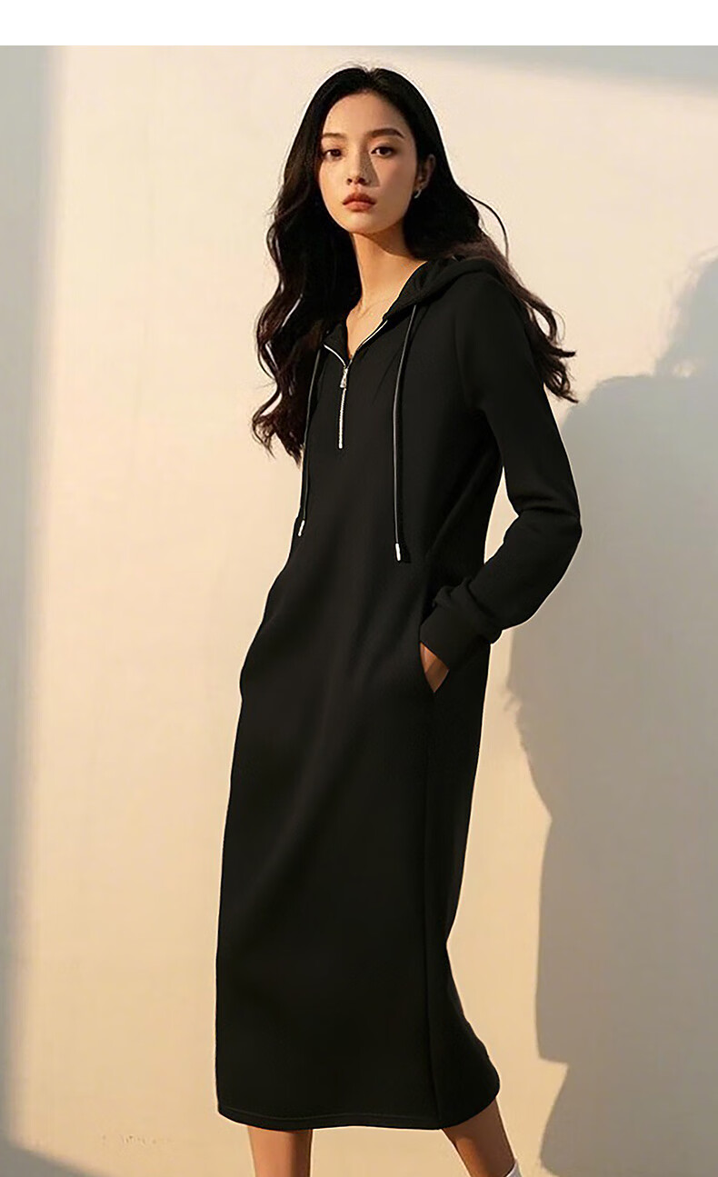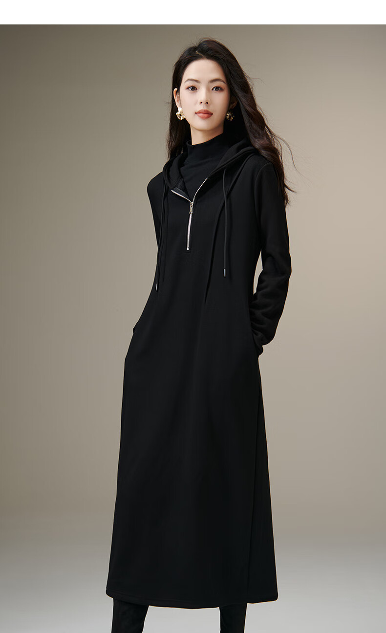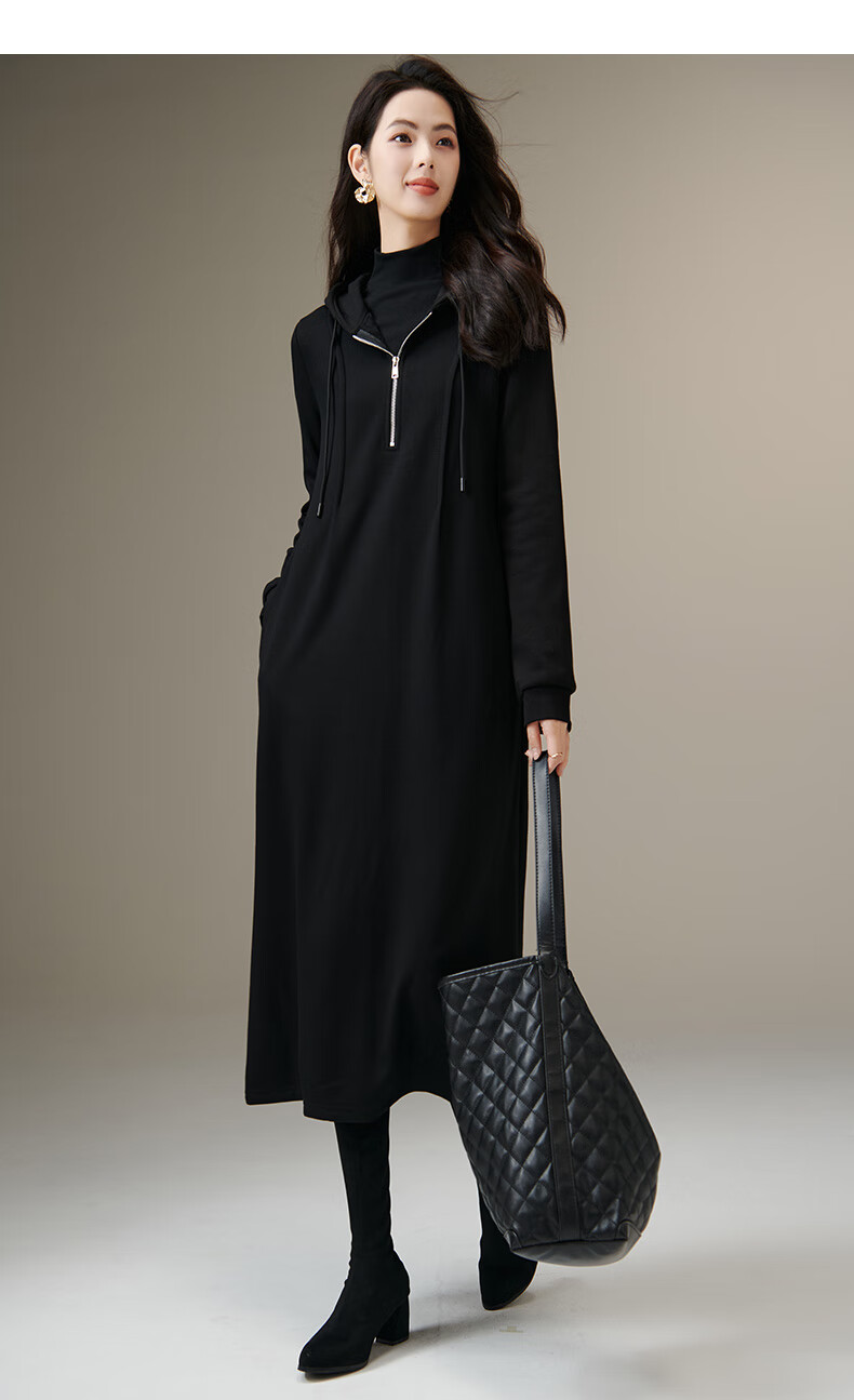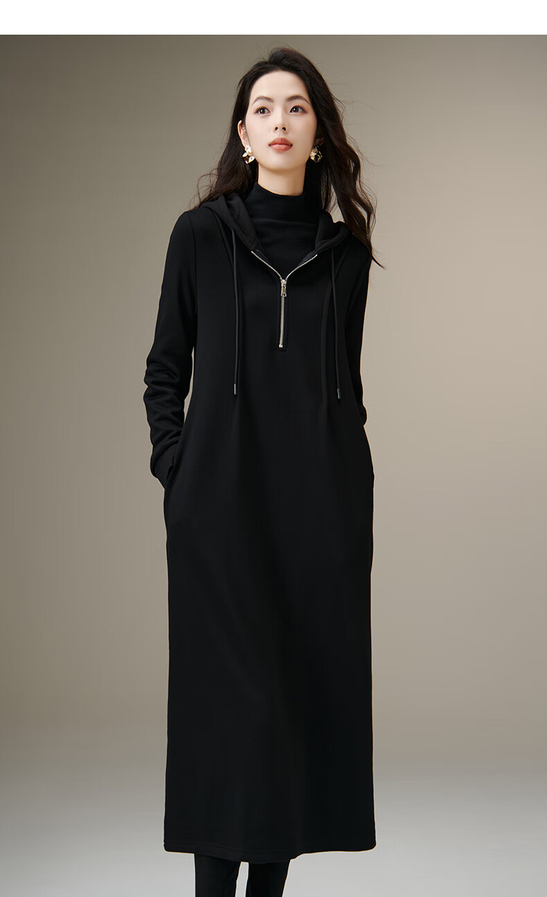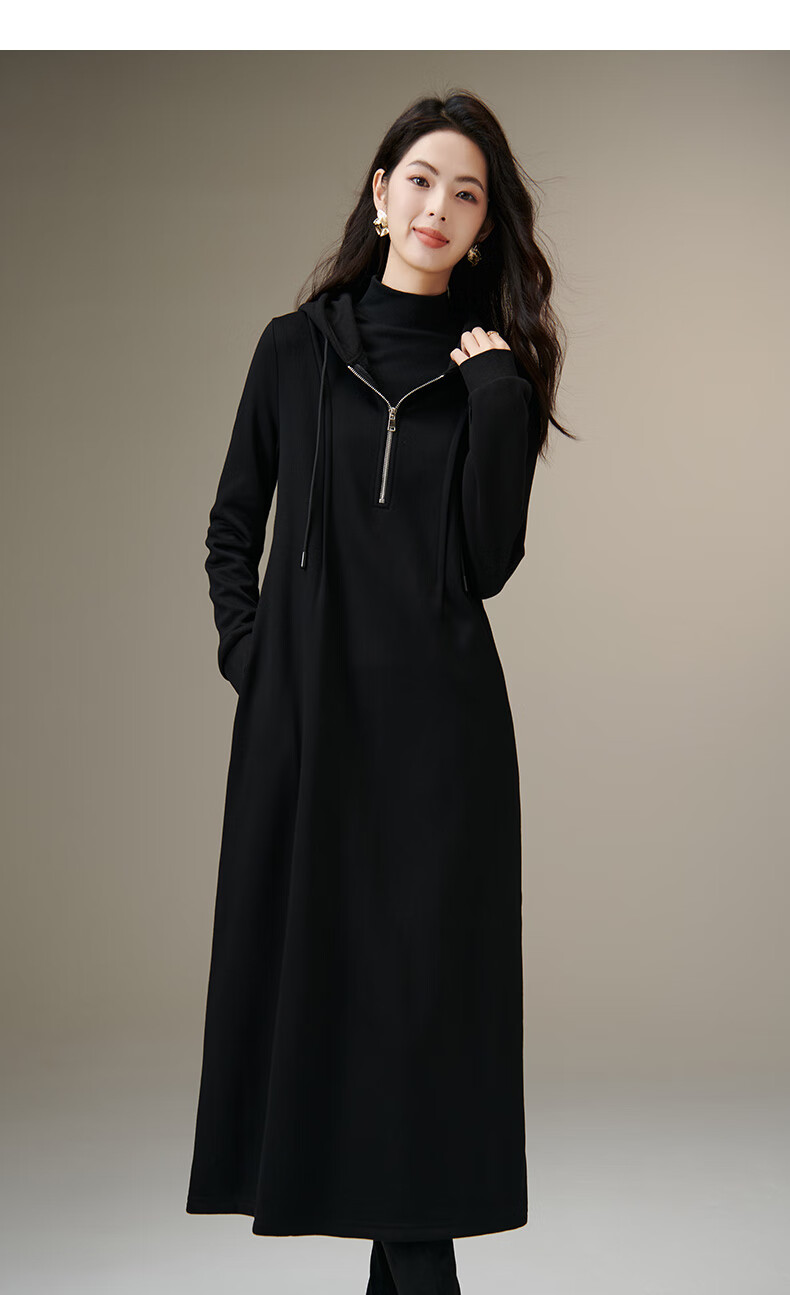 晚白【新品】冬款时尚简约裙子连帽半拉链气质百搭针织连衣裙 黑色 M