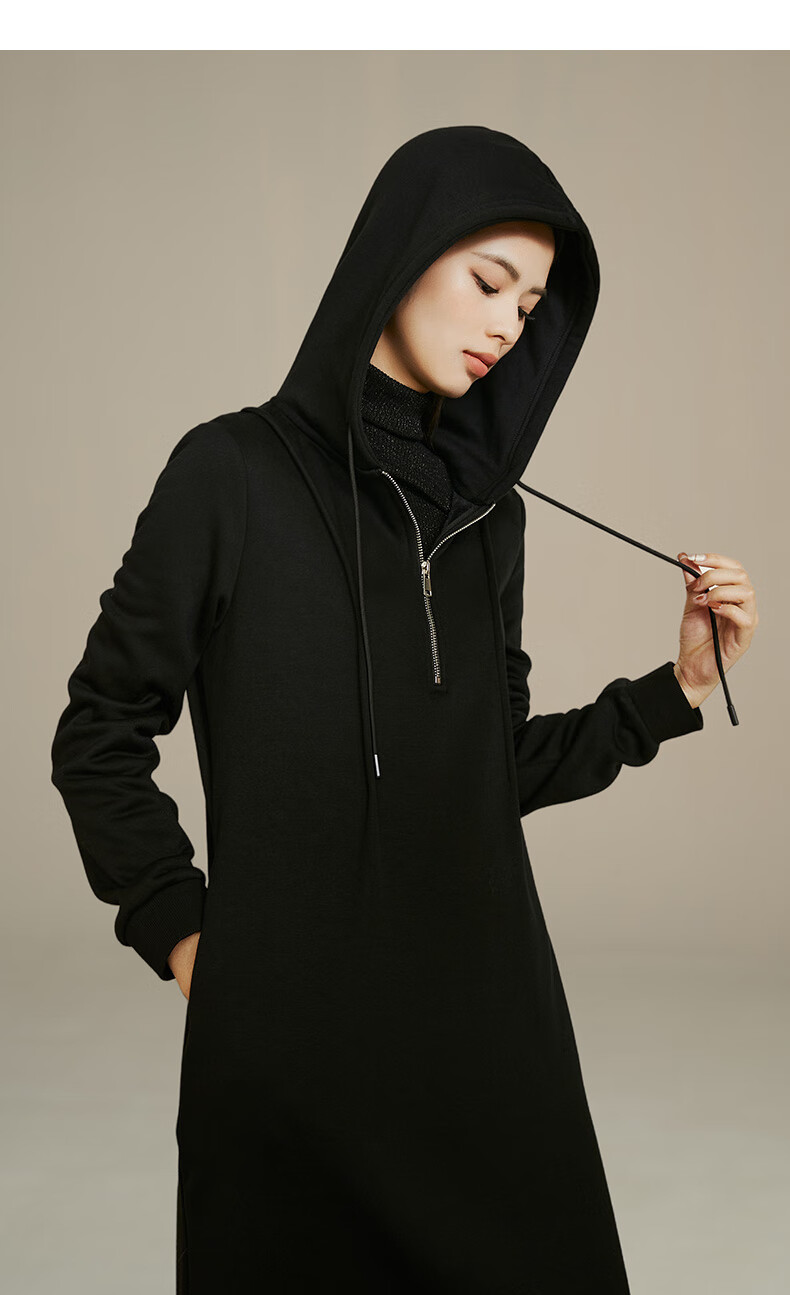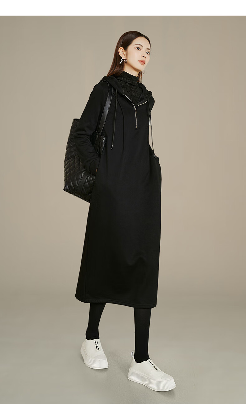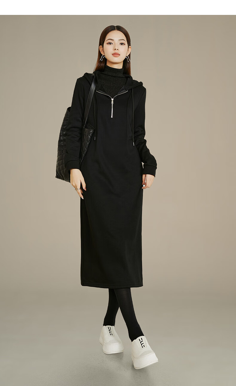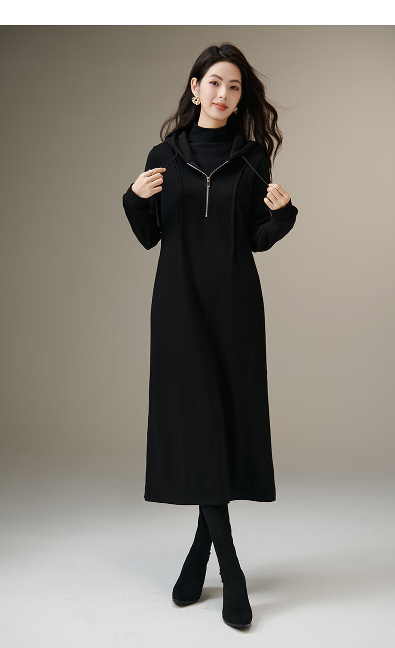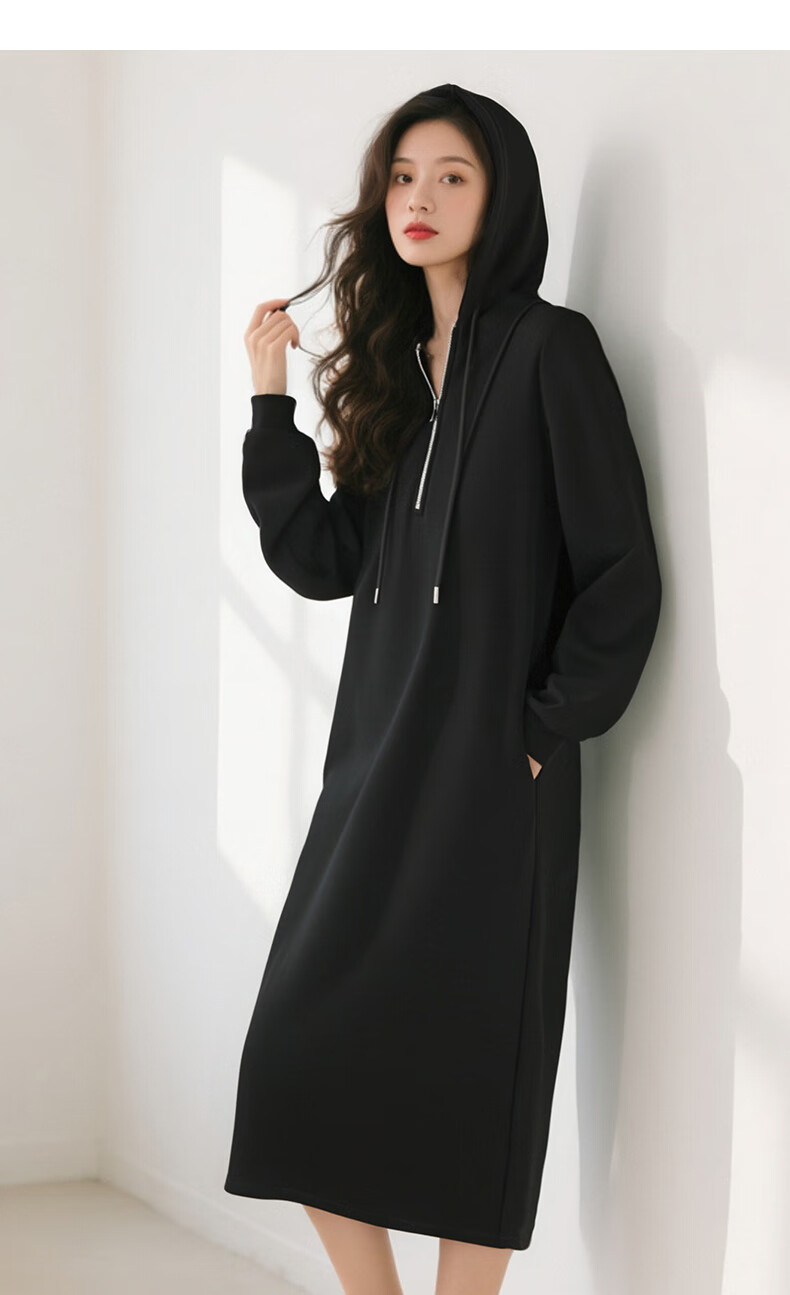 晚白【新品】冬款时尚简约裙子连帽半拉链气质百搭针织连衣裙 黑色 M