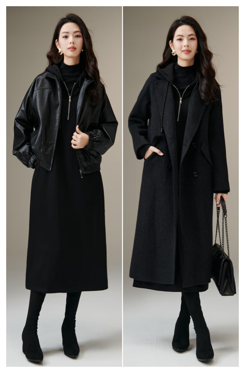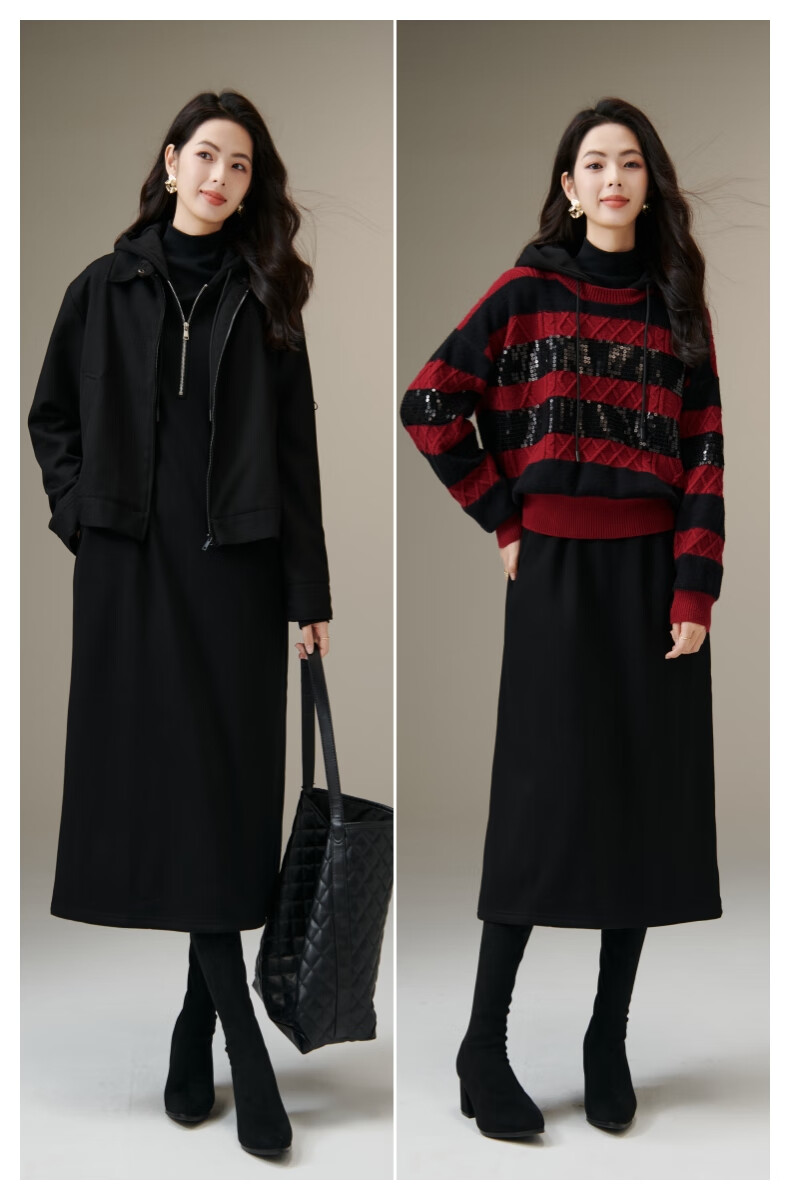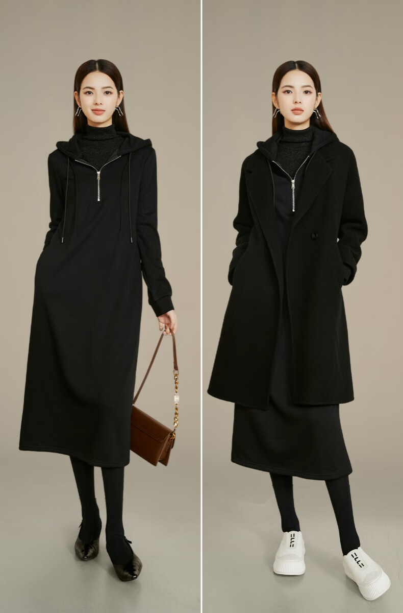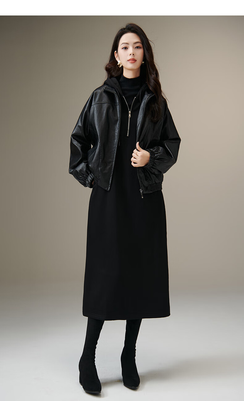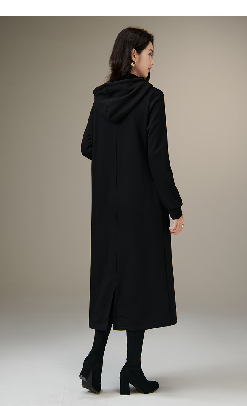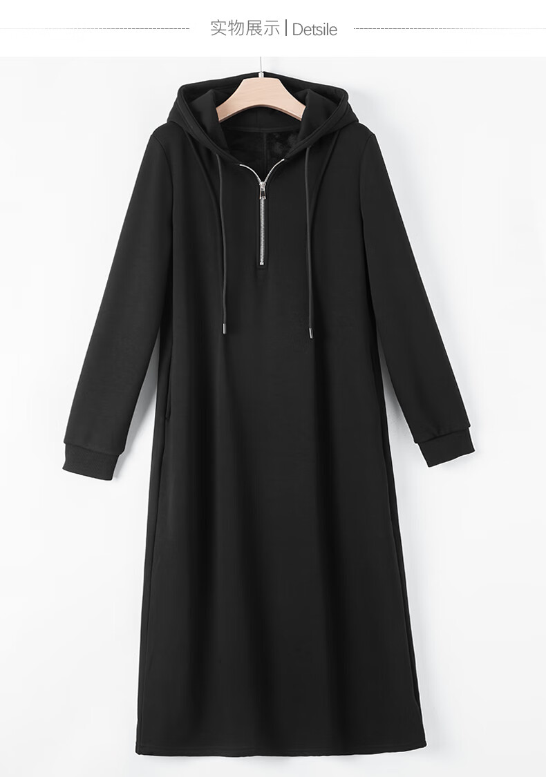 晚白【新品】冬款时尚简约裙子连帽半拉链气质百搭针织连衣裙 黑色 M