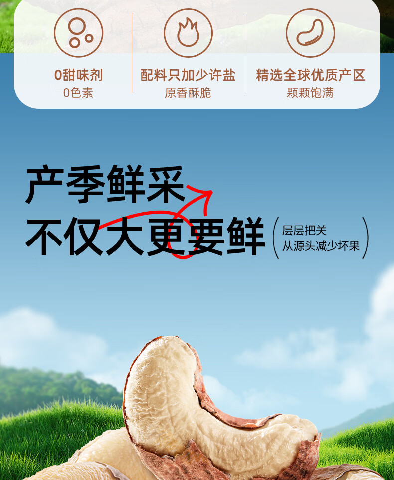 良品铺子腰果大颗粒坚果腰果量贩装 【酥脆饱满】紫衣腰果170g*2罐 ,