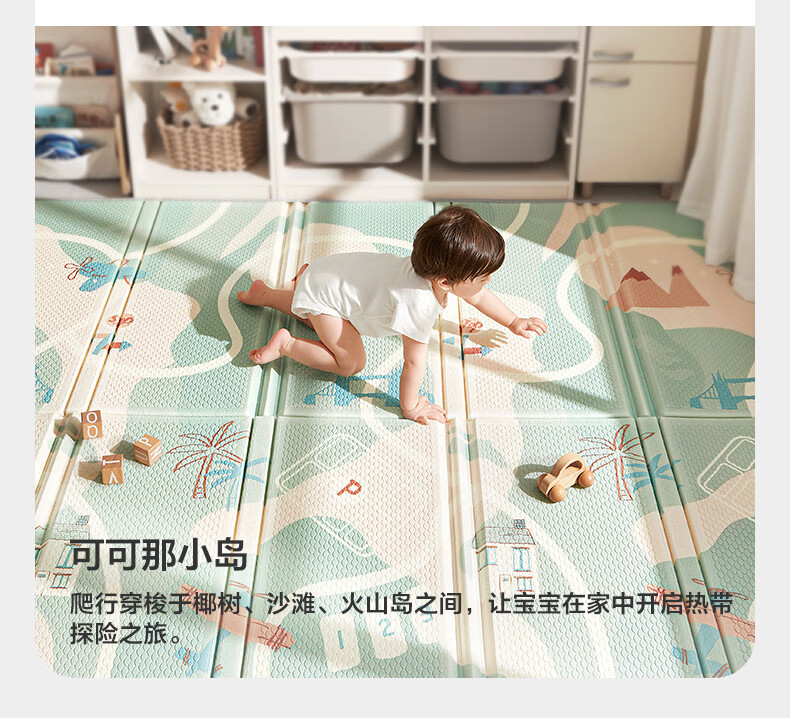 babycare抗菌XPE折叠爬行垫宝宝爬爬垫婴儿童地垫-可可那小岛180*200*2cm
