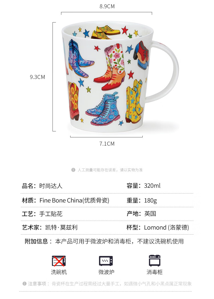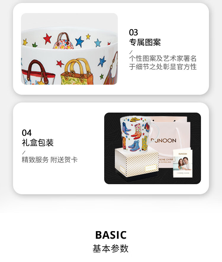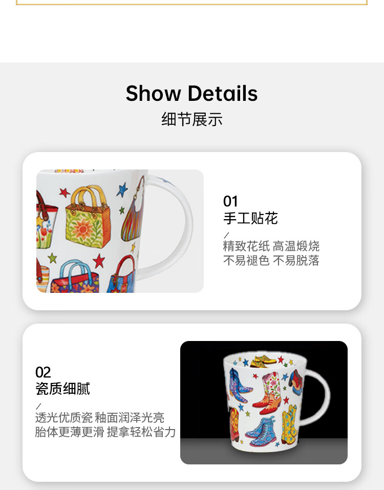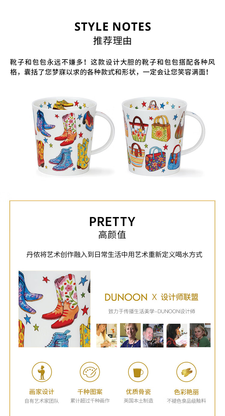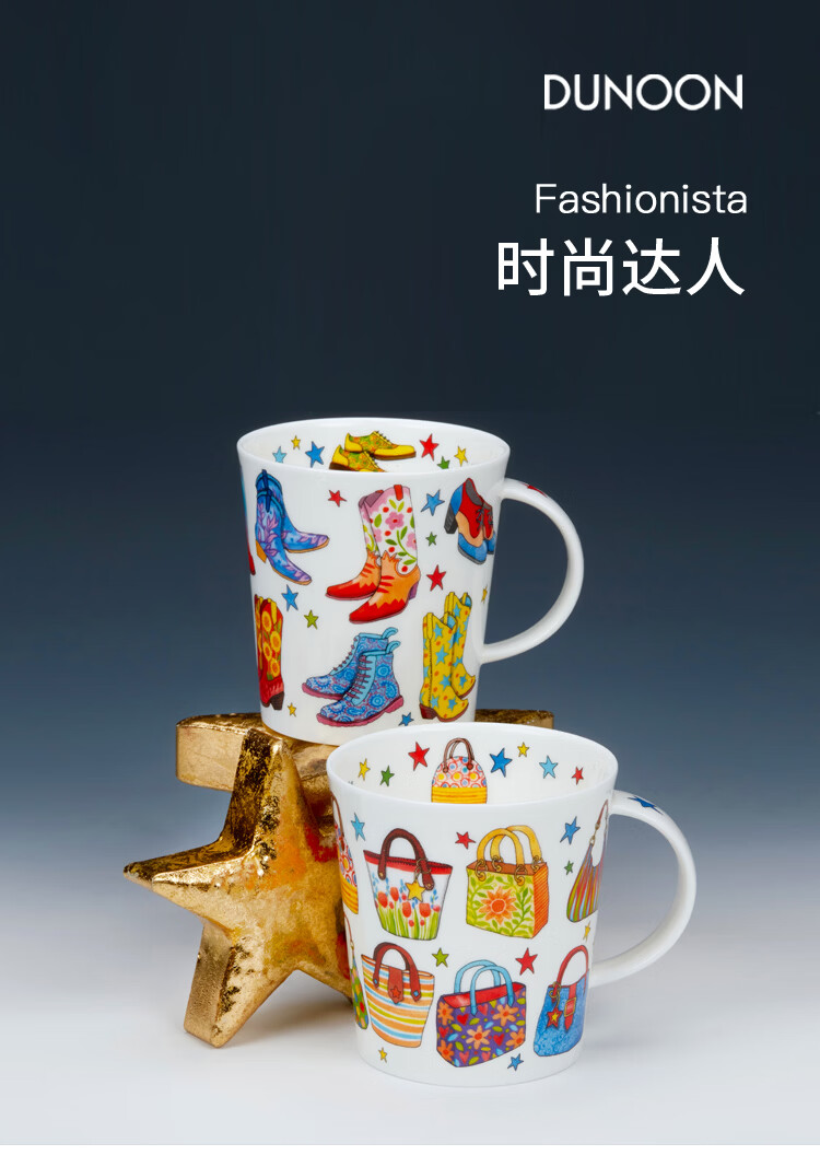 丹侬(DUNOON)骨瓷马克杯女时尚包包靴子图案咖啡杯陶瓷水杯好看的杯子潮流杯 时尚达人-靴子
