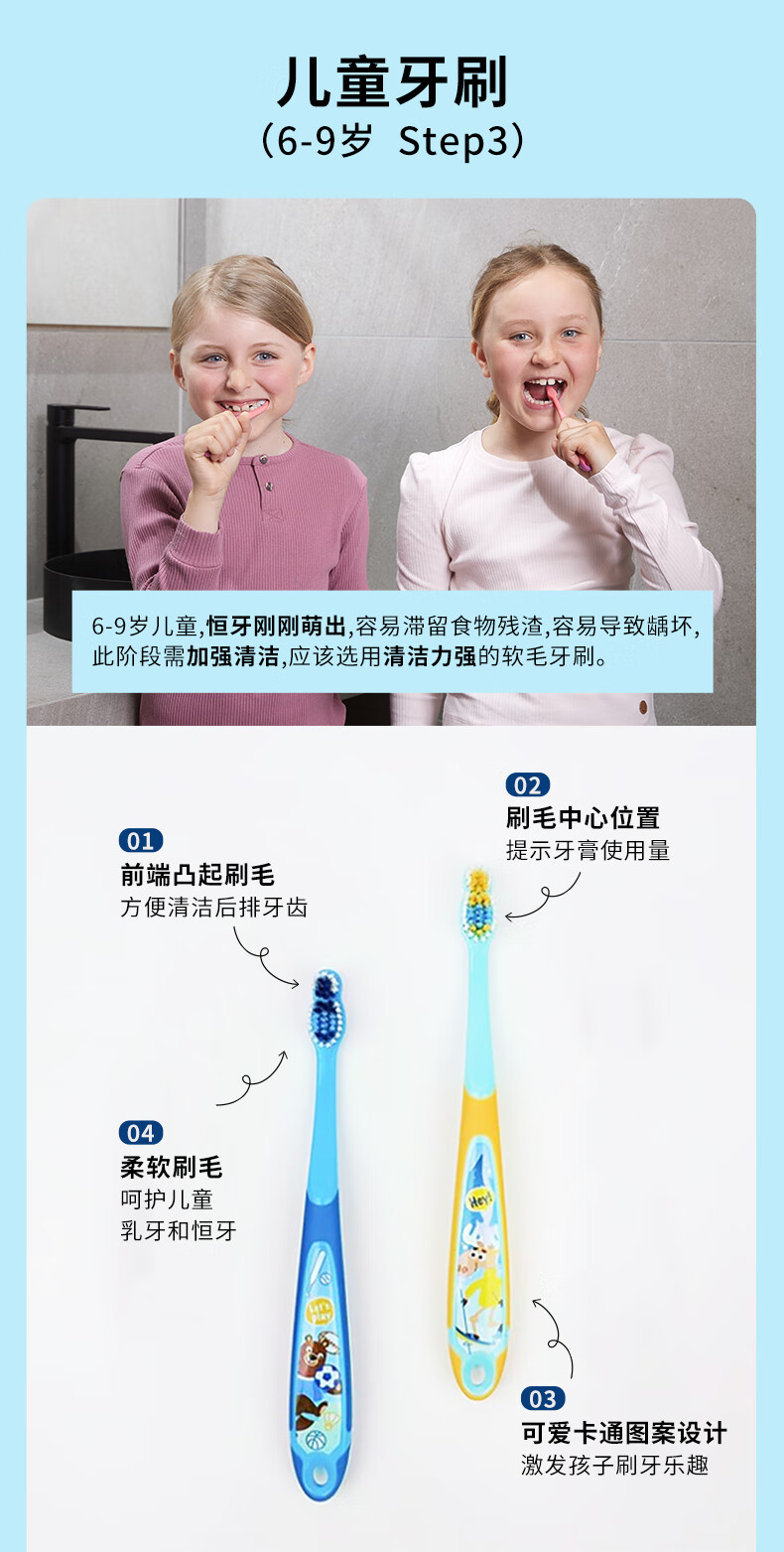 英格翰儿童牙刷3-6-12岁宝宝牙刷软毛牙膏儿童小学生换牙期卡通2支套装