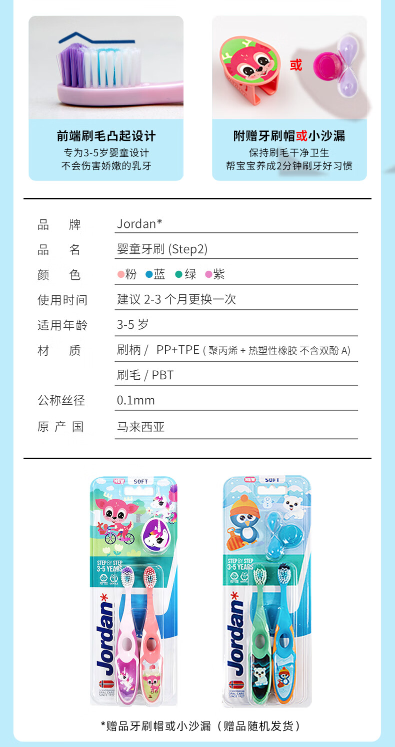 Jordan婴幼儿童宝宝细软毛乳牙刷0-1-3岁以下A款2支