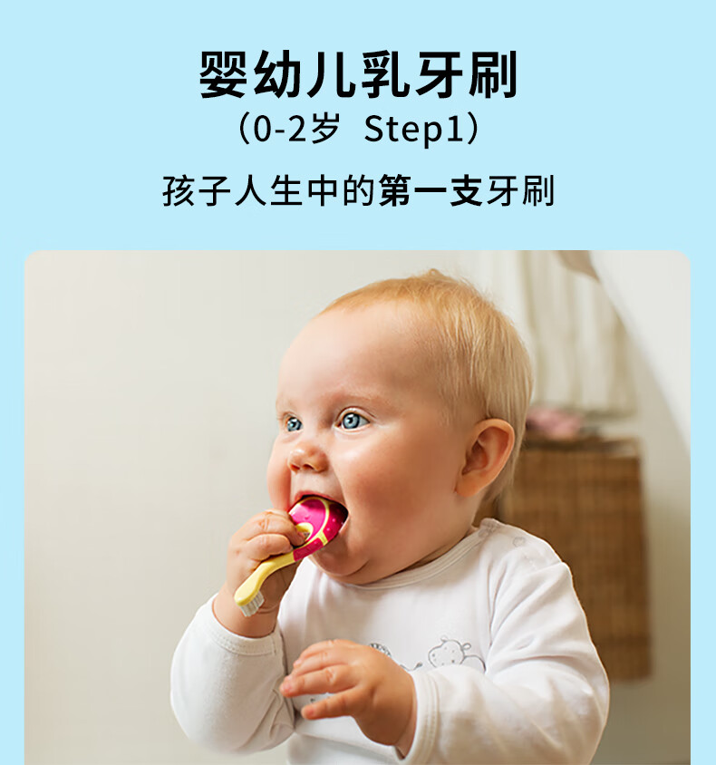 英格翰宝宝牙刷软毛乳牙期0-1至2-3岁舌苔刷婴儿童牙刷出牙训练粉+黄