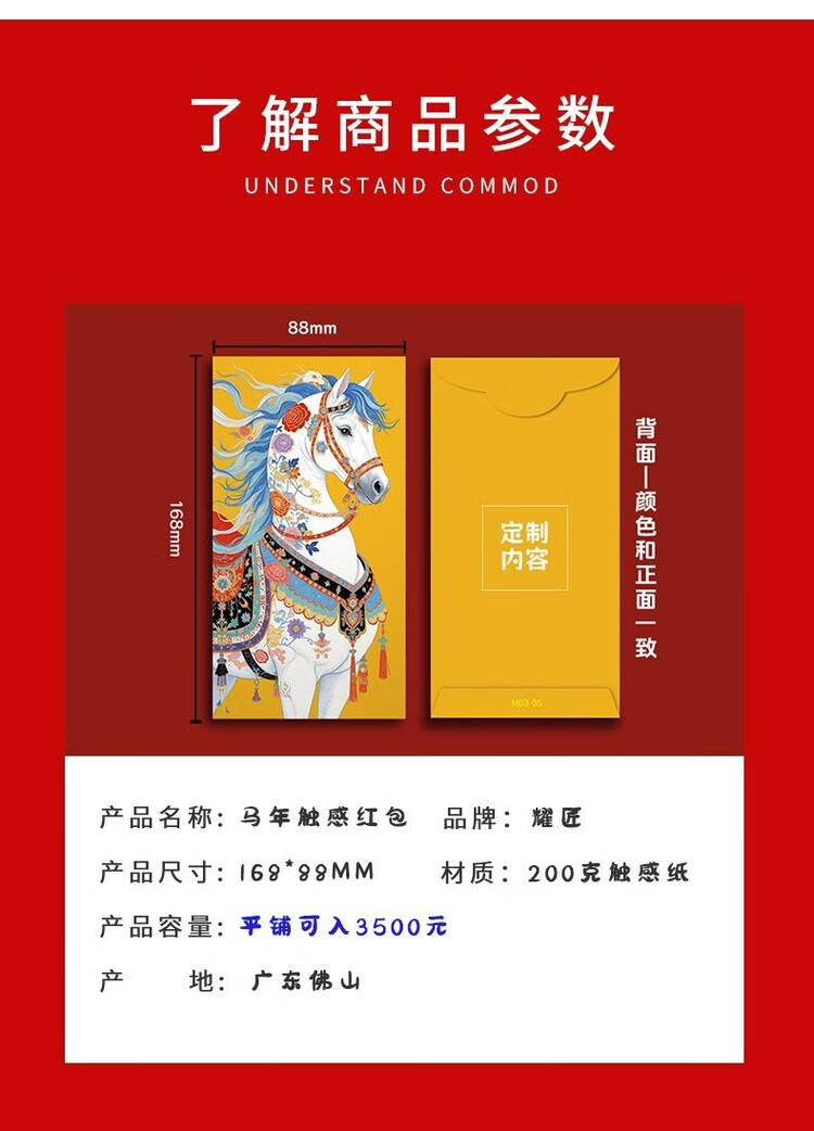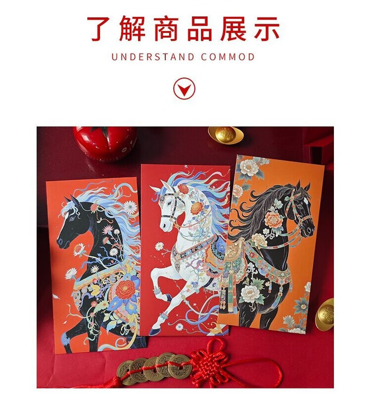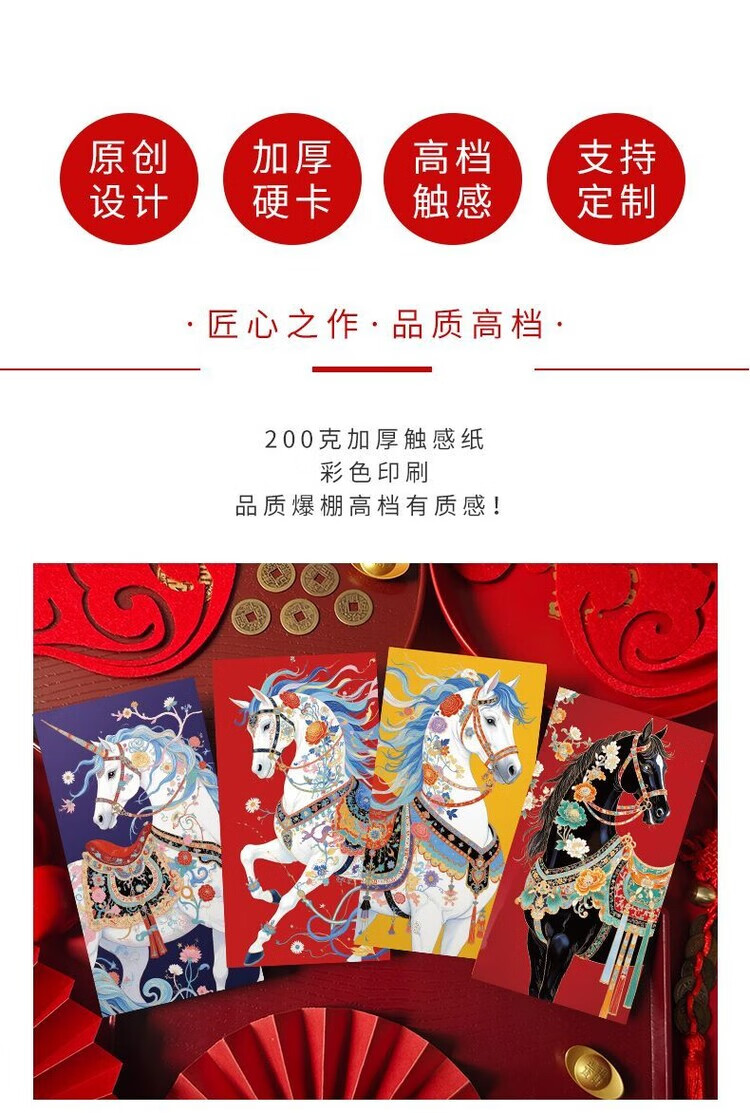 OYKTN2026新款马年红包袋新中式触感高档加厚个性创意过新年港版利是封 马03触感厚款【耀匠正品6个混装】 长款(平铺可入3000元)