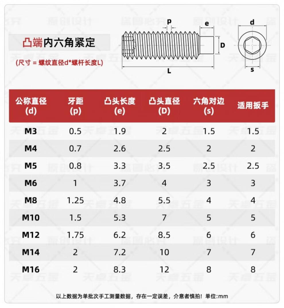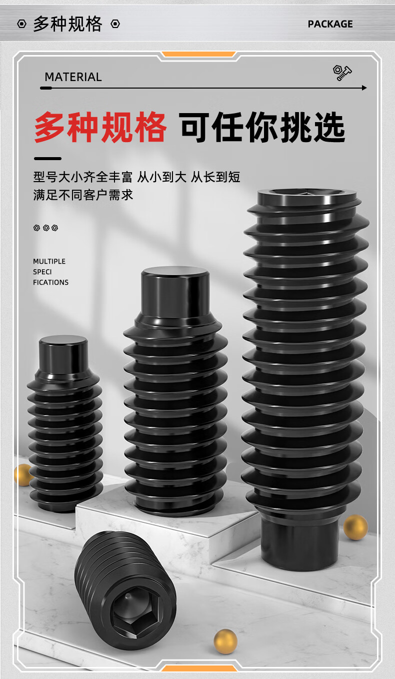 天卓五金M3-M16凸端紧定12.9级内六角螺丝机米螺钉顶丝无头止付螺栓M4M5M6 ---螺丝表层 涂有【防锈油】---