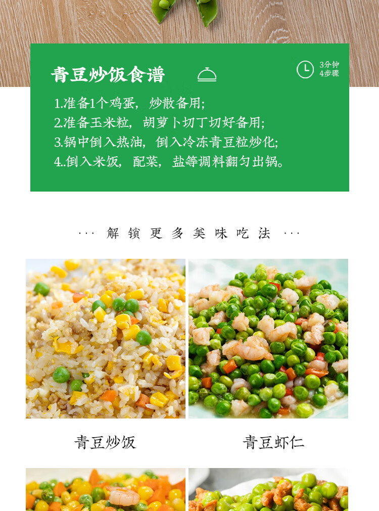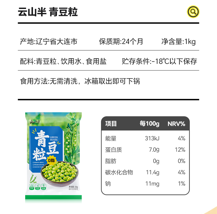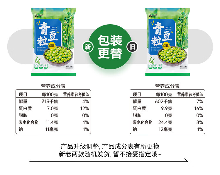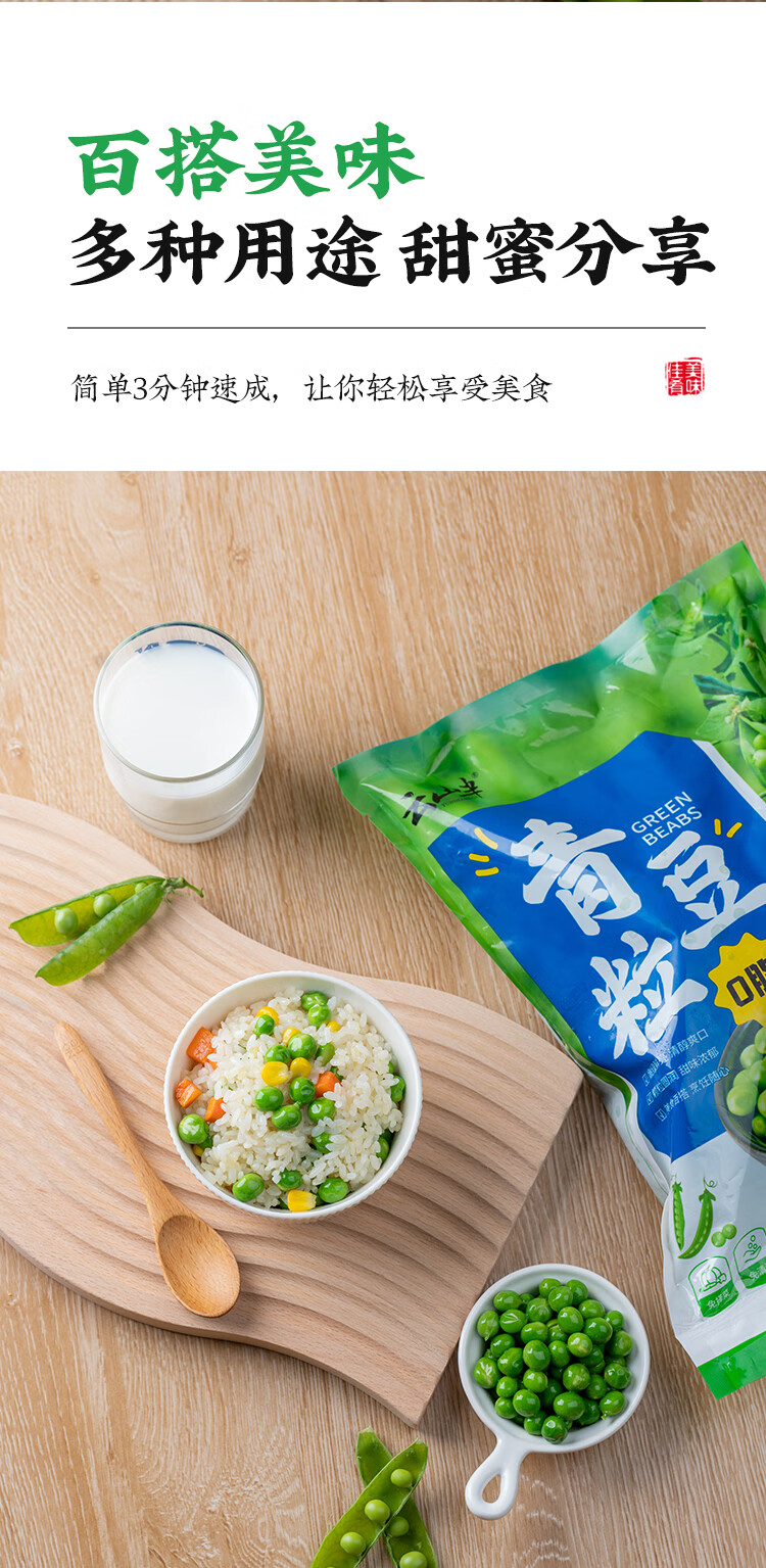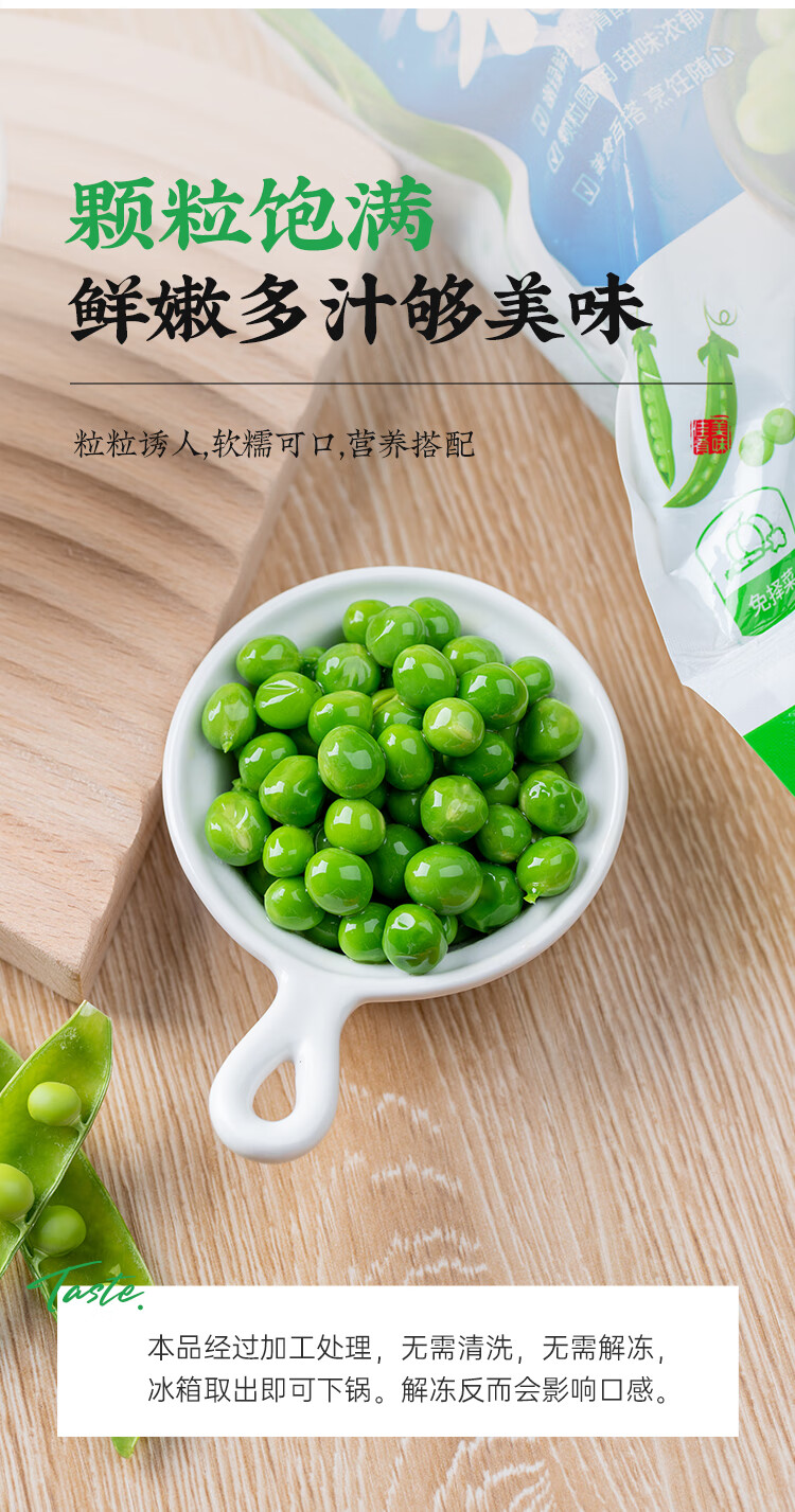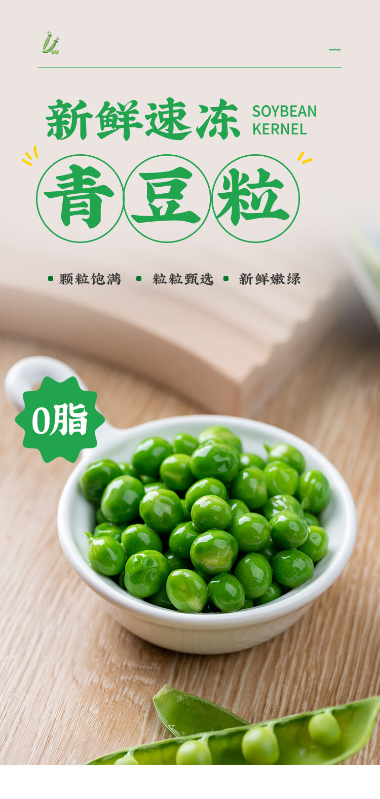 云山半青豆粒1kg 0脂肪0添加剂 新鲜豌豆粒 速冻锁鲜 半加工蔬菜