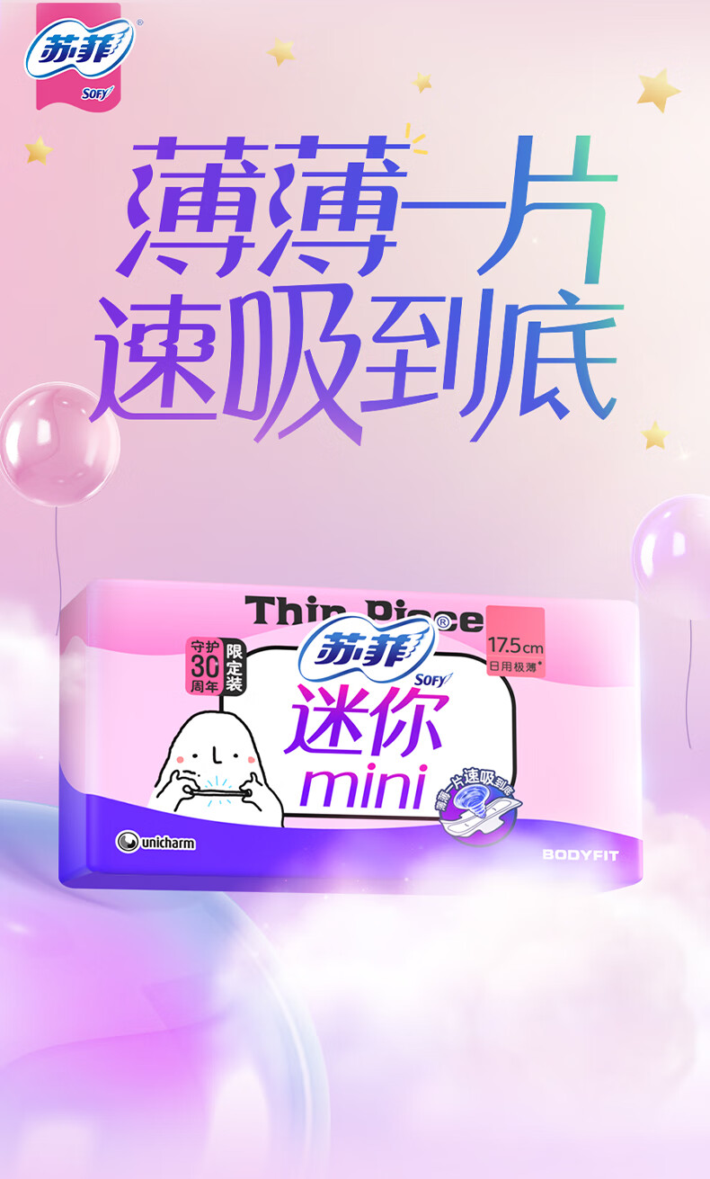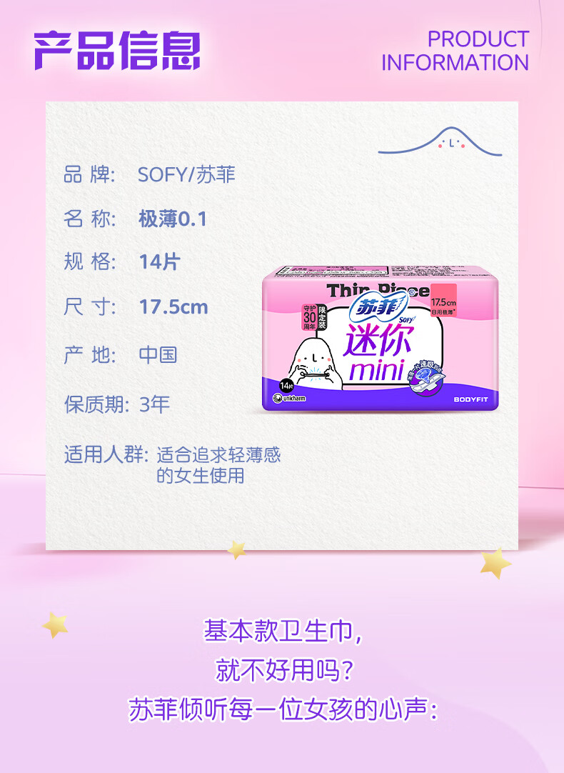 苏菲弹力贴身极薄0.1日用迷你卫生巾175mm14片护垫超薄量少棉柔姨妈巾