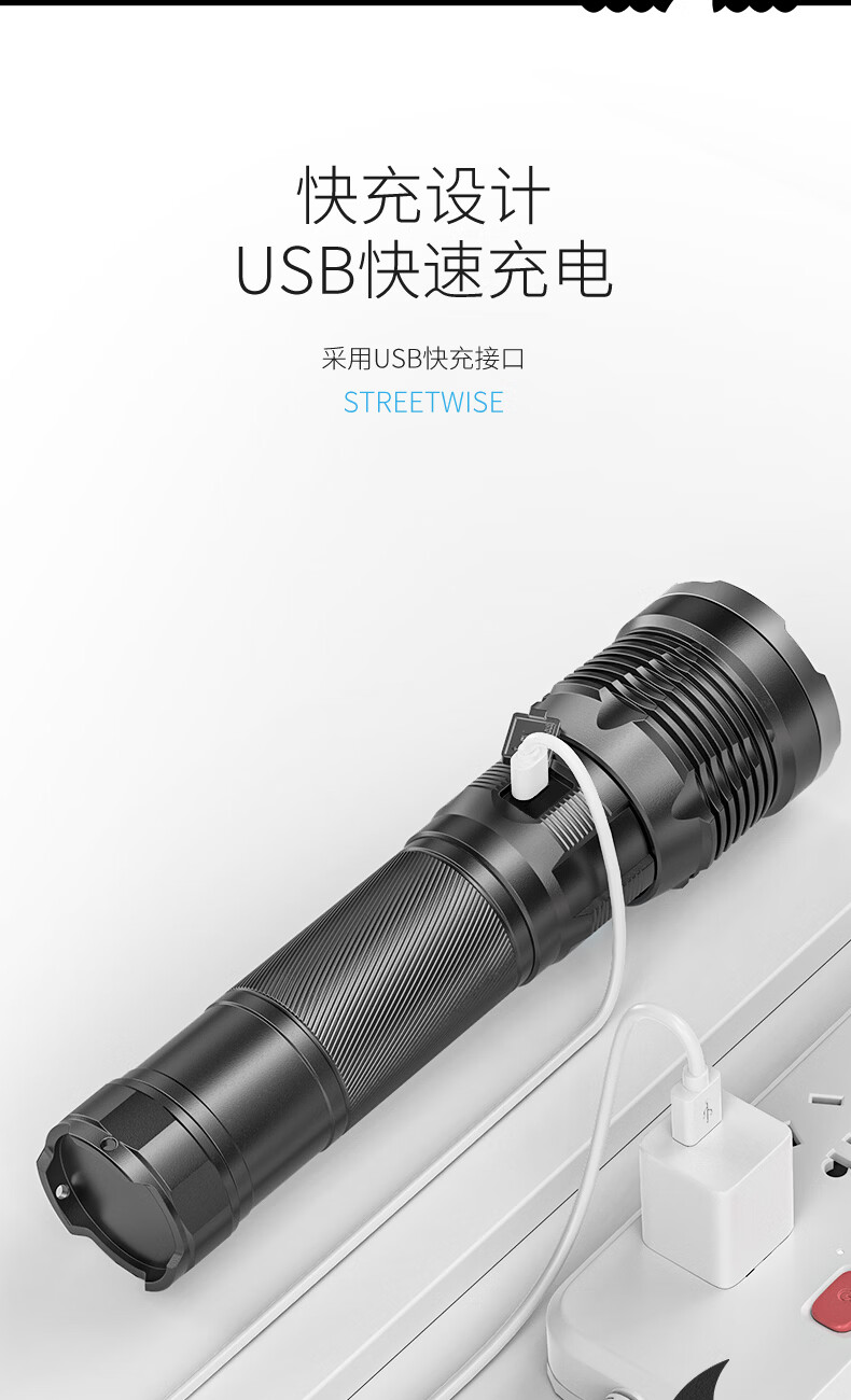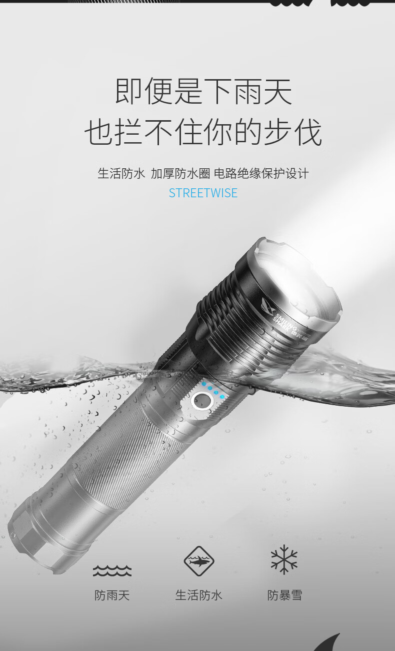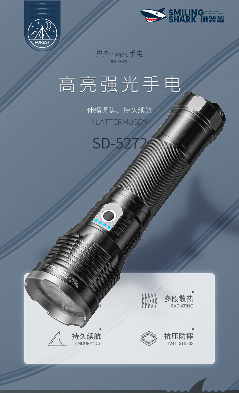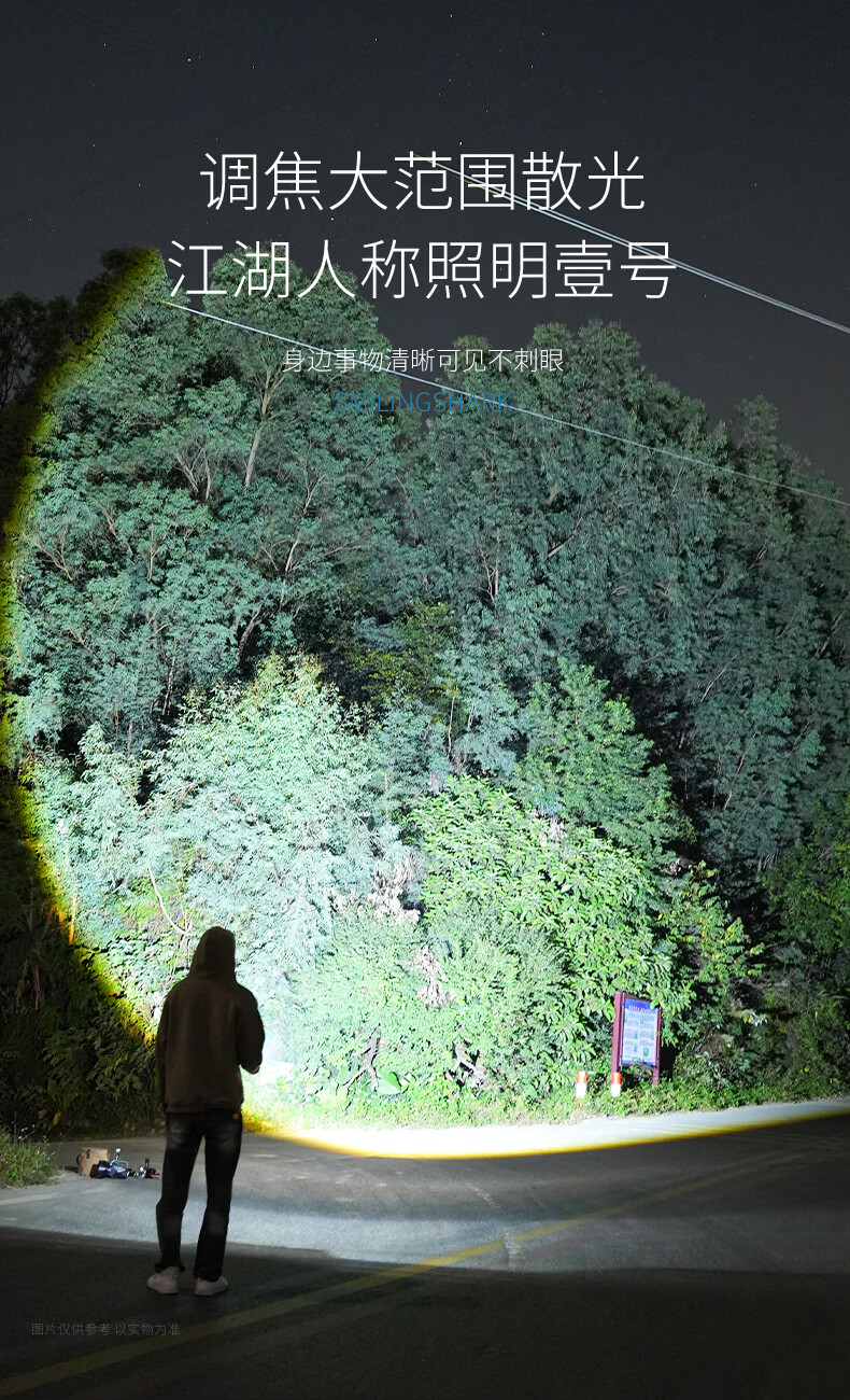 微笑鲨强光手电筒超亮变焦远射户外可充电超长续航大功率便携应急照明灯 爆亮远射【铝合金外壳】伸缩调焦