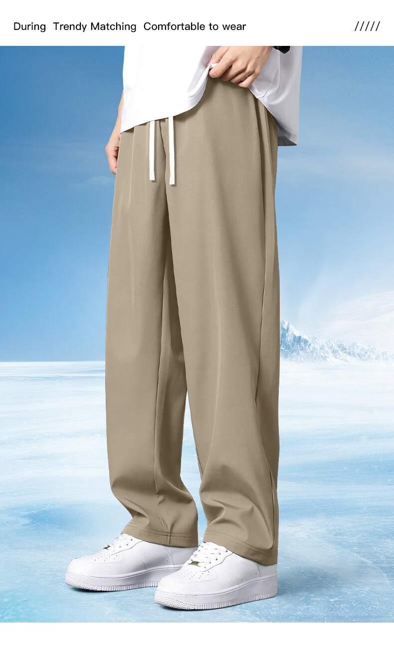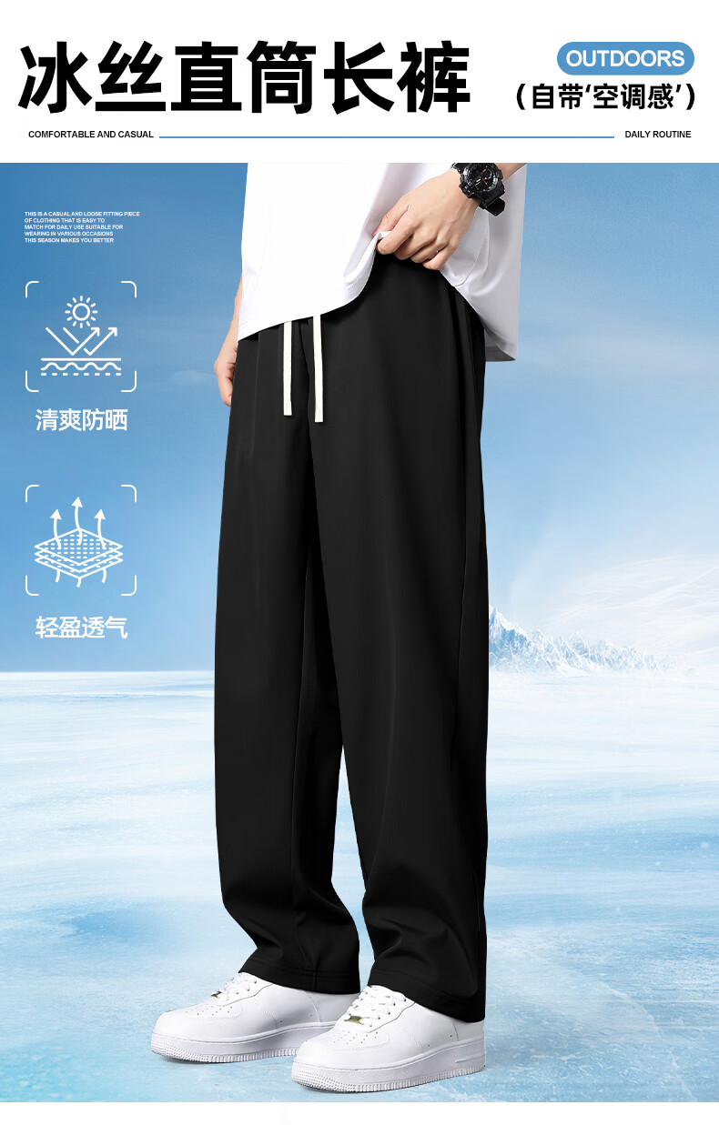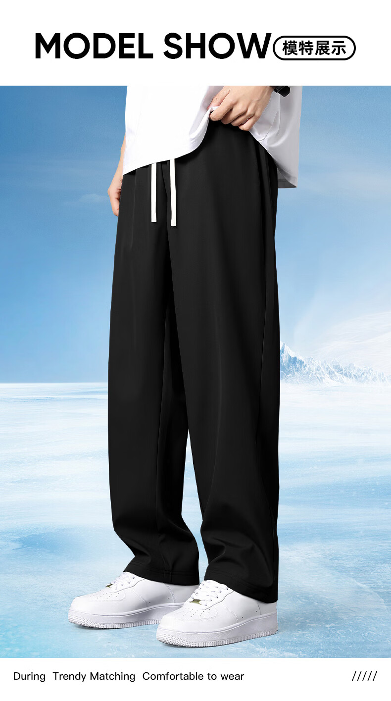 真维斯(Jeanswest)冰丝速干直筒裤子男款2026新款夏季薄款男裤防晒休闲裤宽松阔腿裤 深灰 力量三角_K M