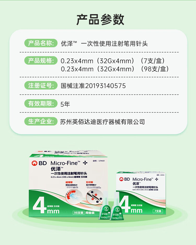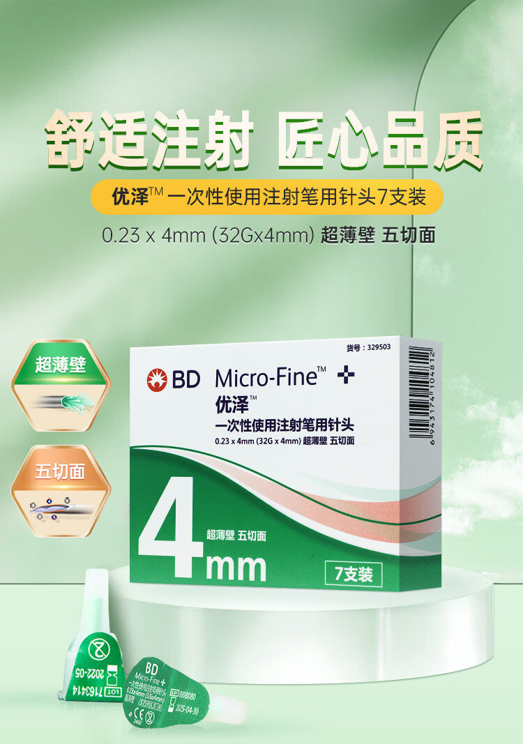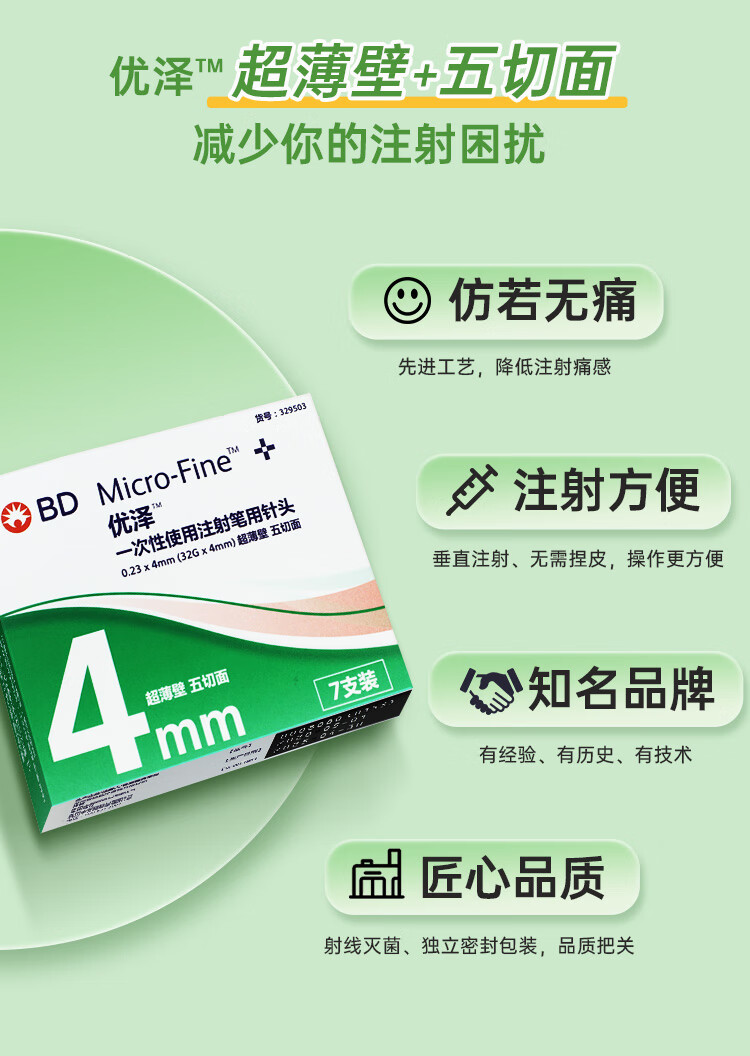 新优锐优泽针头一次性使用注射笔用针头诺和盈针头0.23(32G)*4mm 7支