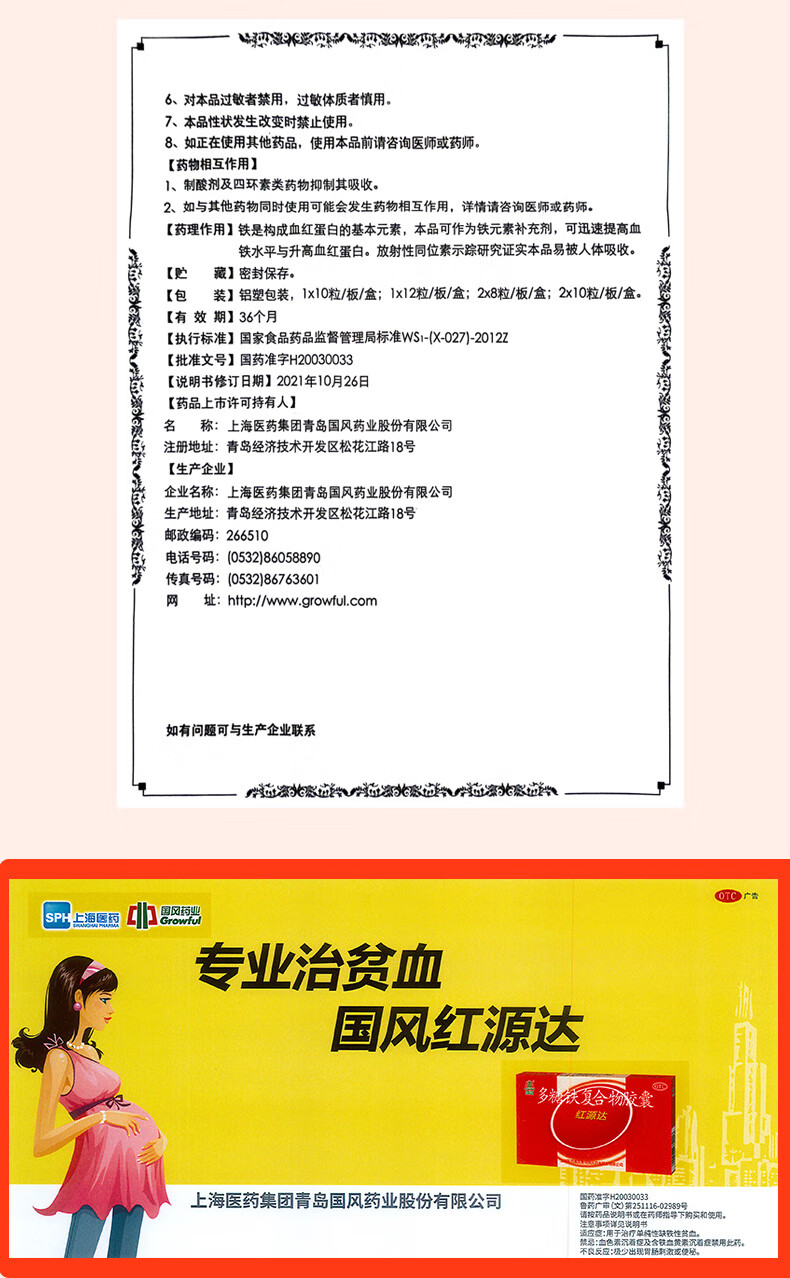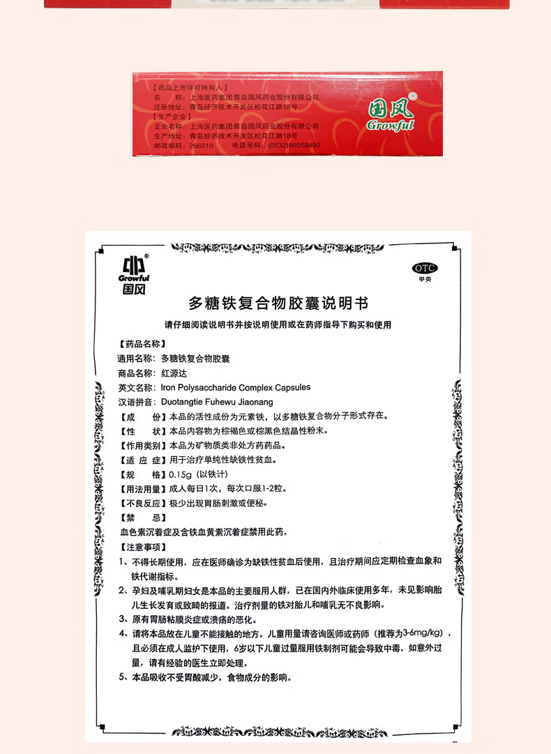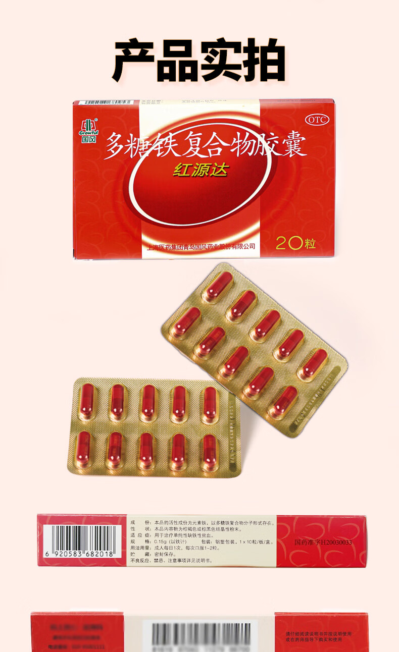 国风 红源达 多糖铁复合物胶囊 20粒 女性贫血补血药补铁剂铁片缺铁性贫血经期补铁