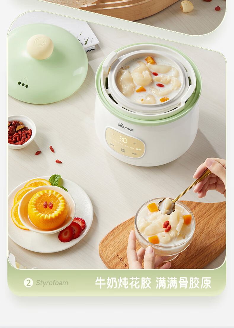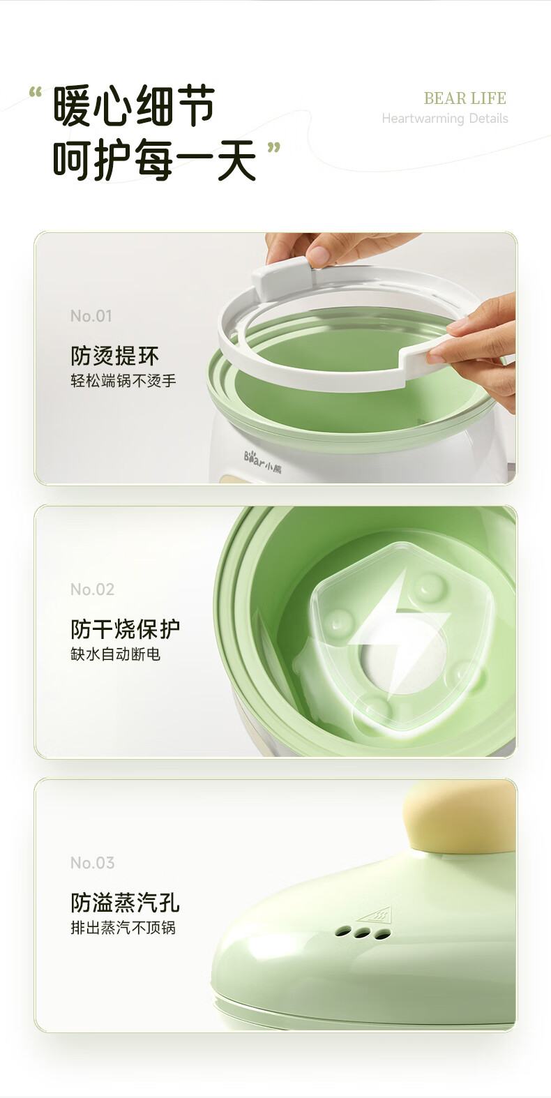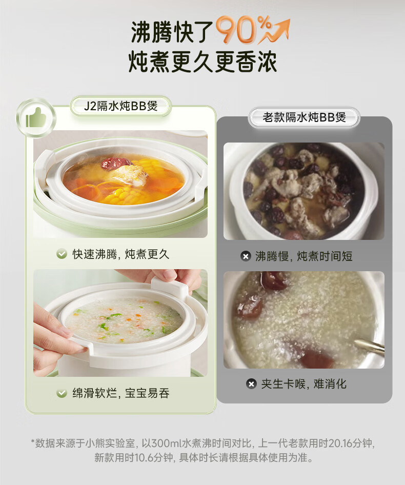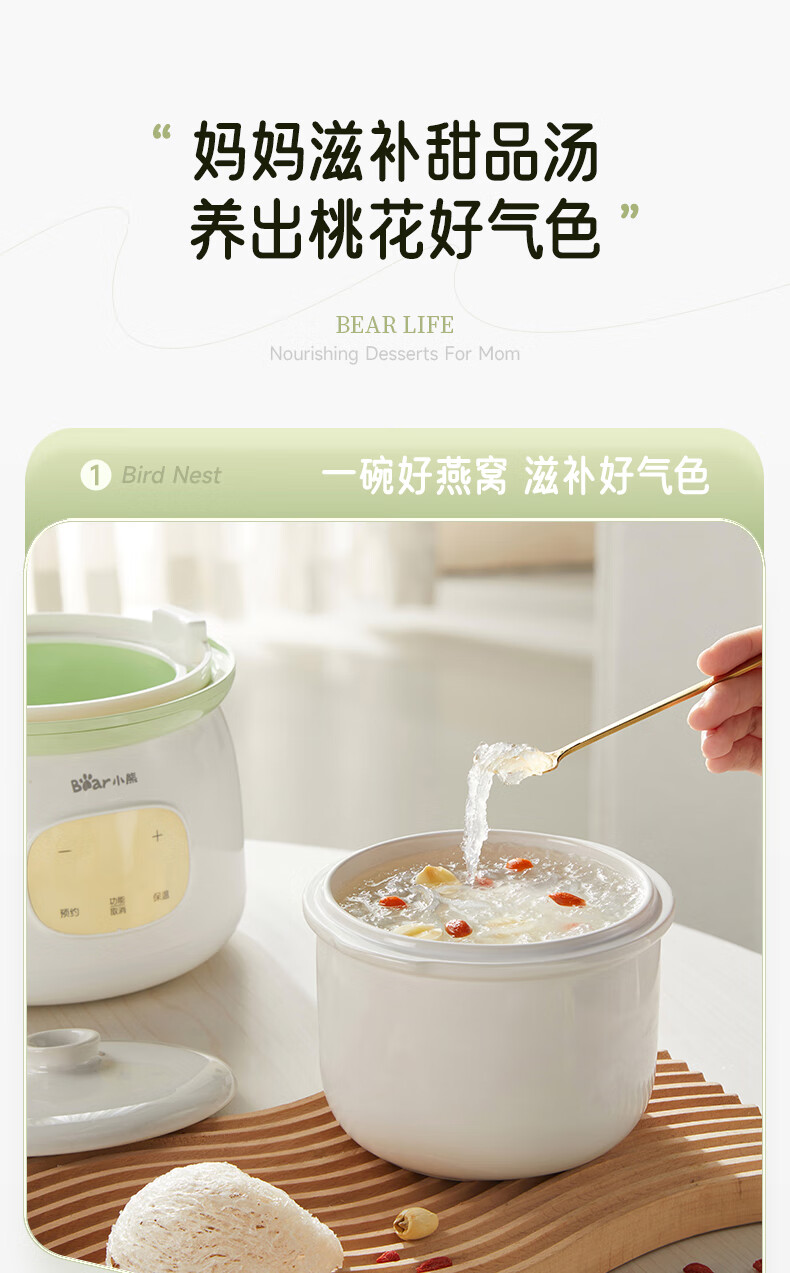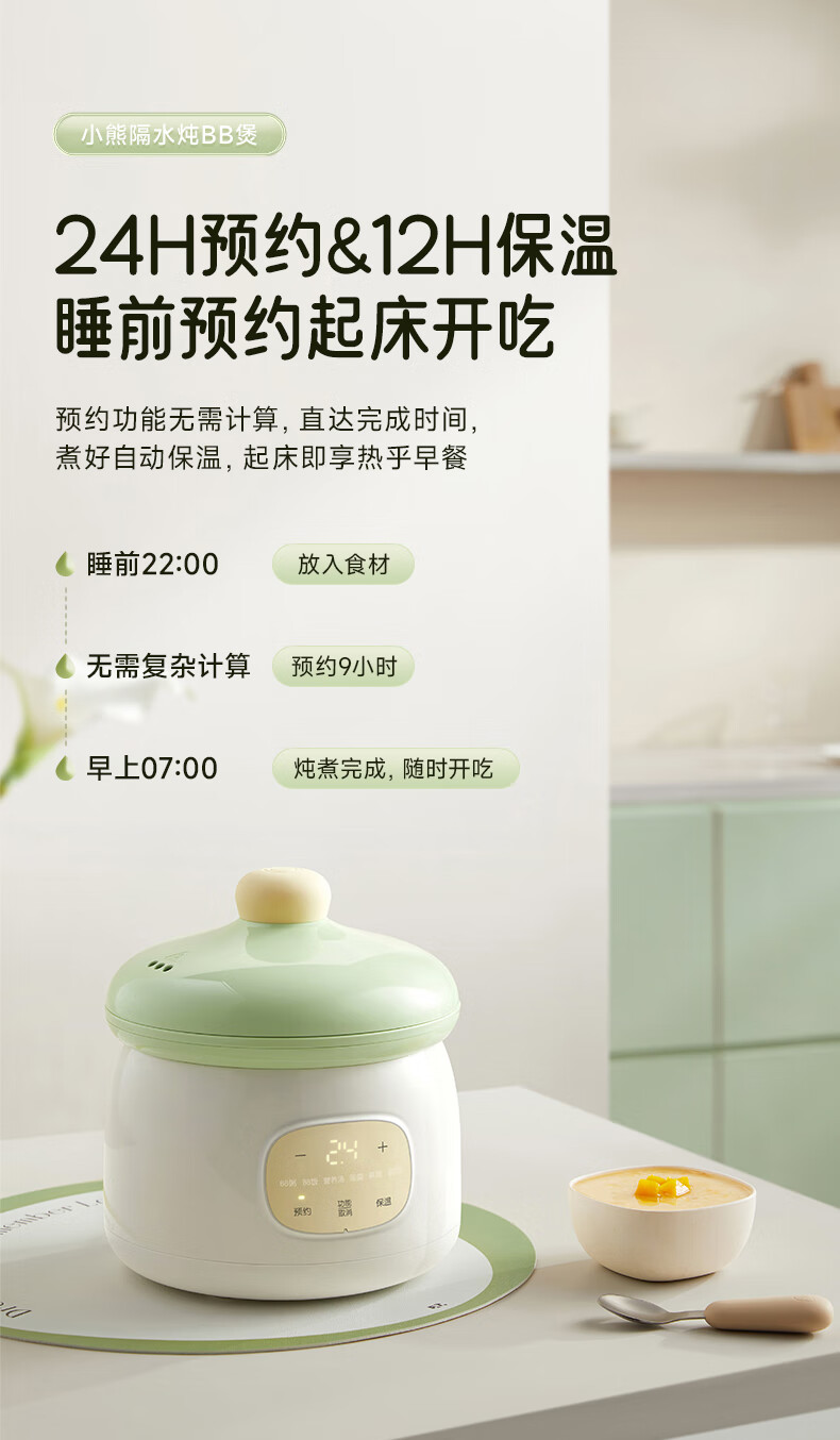小熊(Bear)辅食锅婴儿辅食机bb煲 宝宝煮粥隔水电炖盅天然陶瓷1L BBG-H10J2