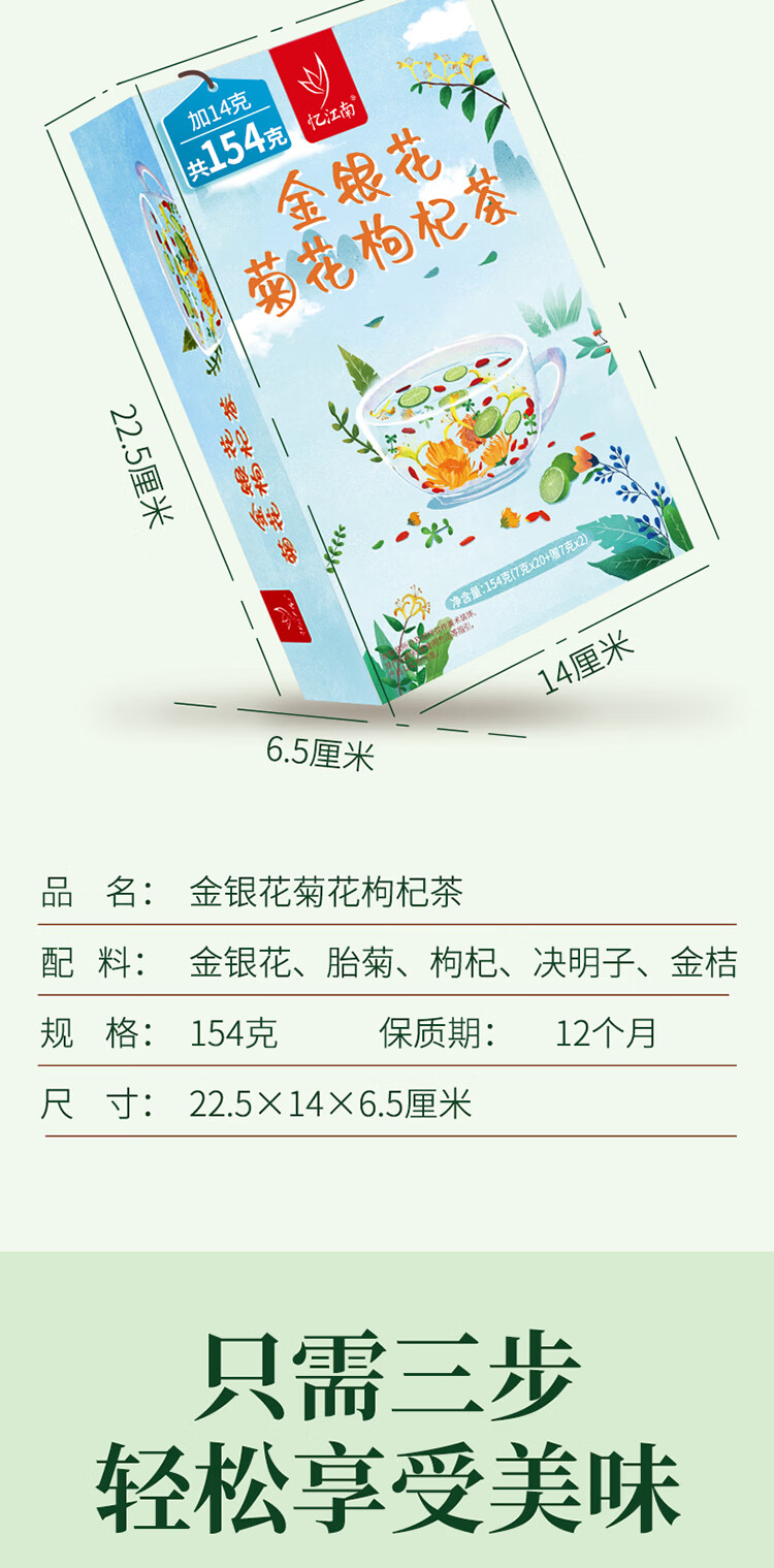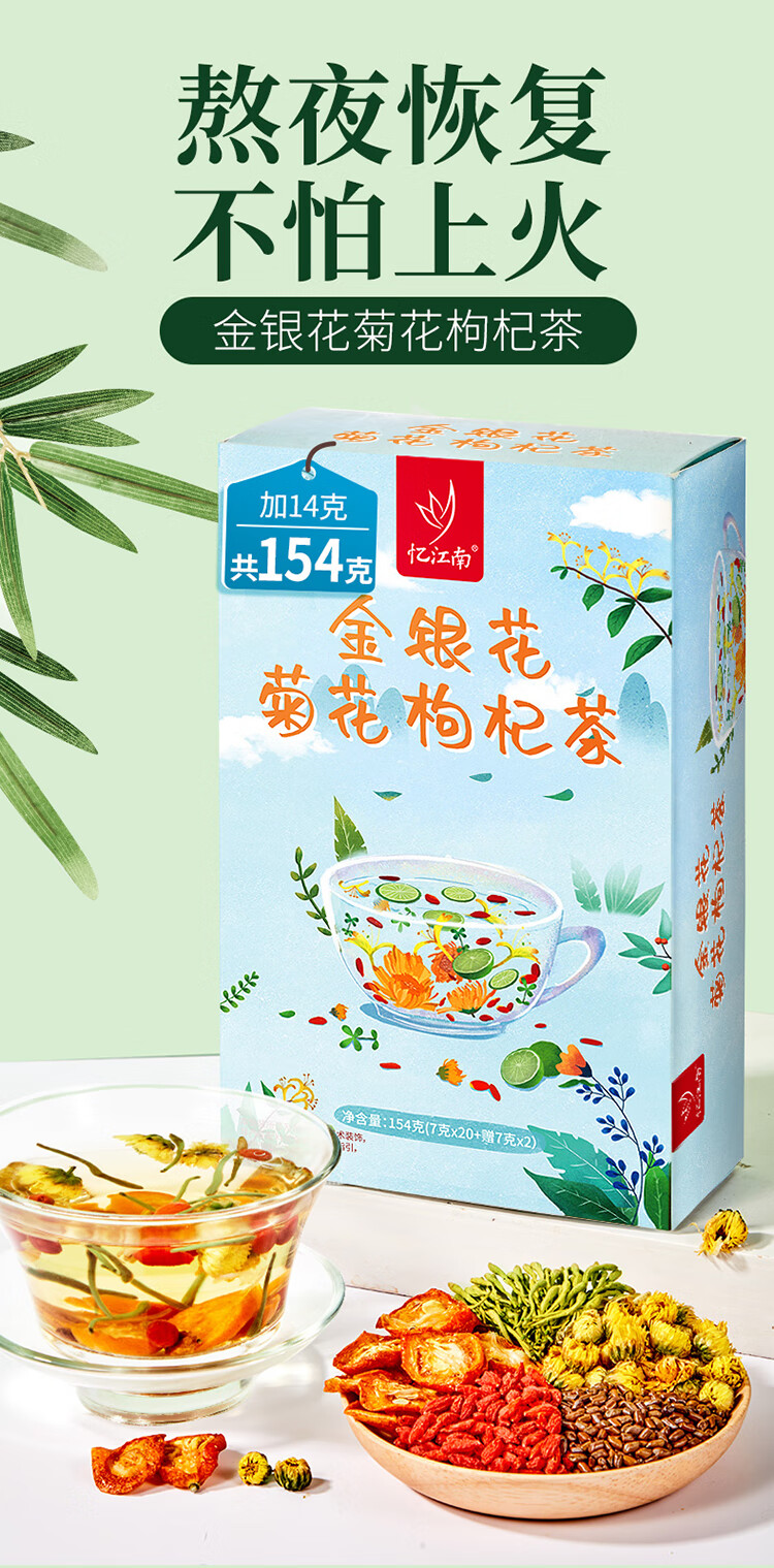 忆江南养生茶菊花枸杞决明子茶154g菊花茶护金桔金银花肝花茶凉茶茶包