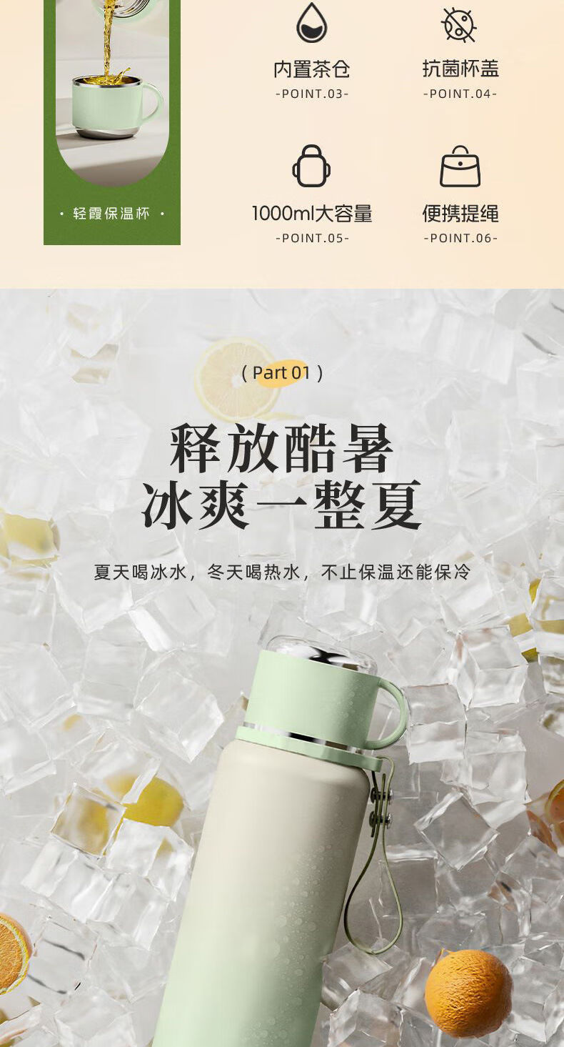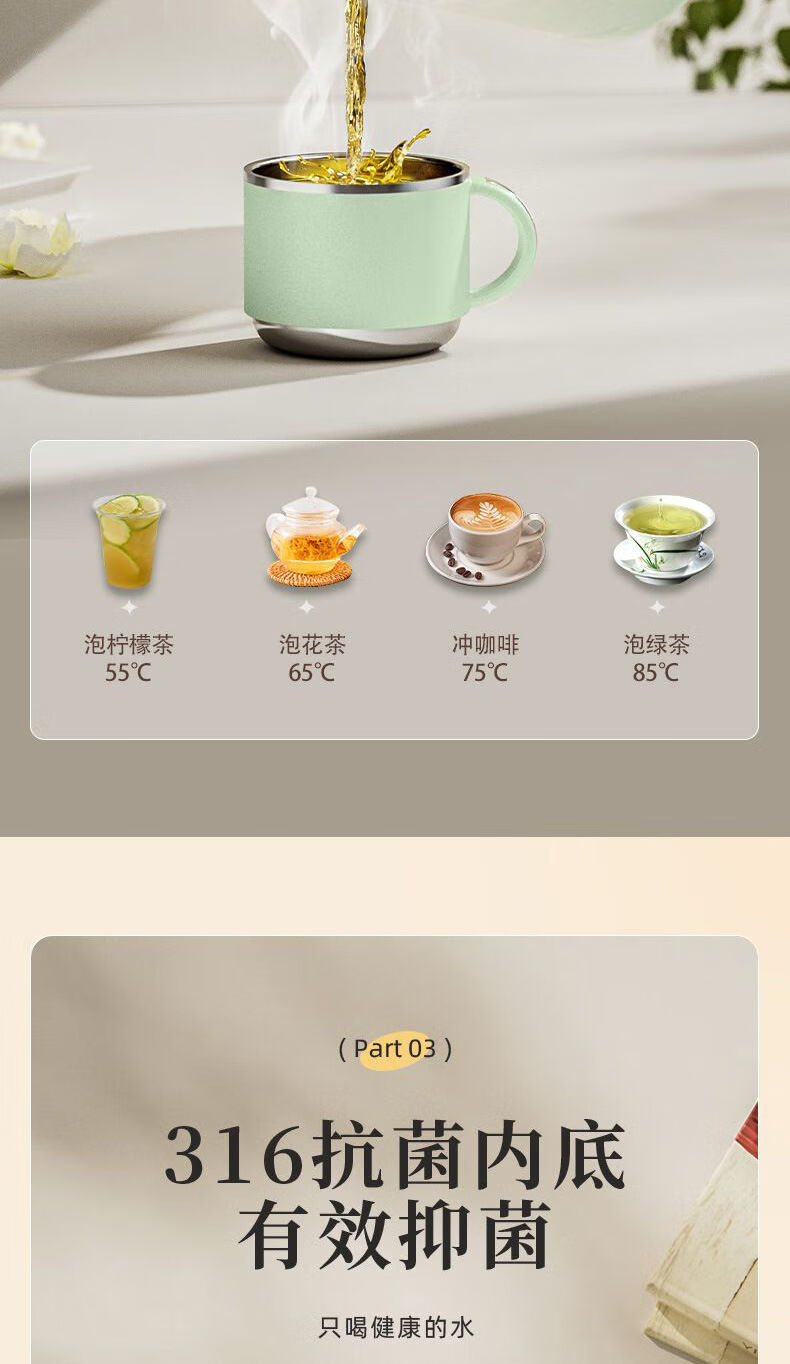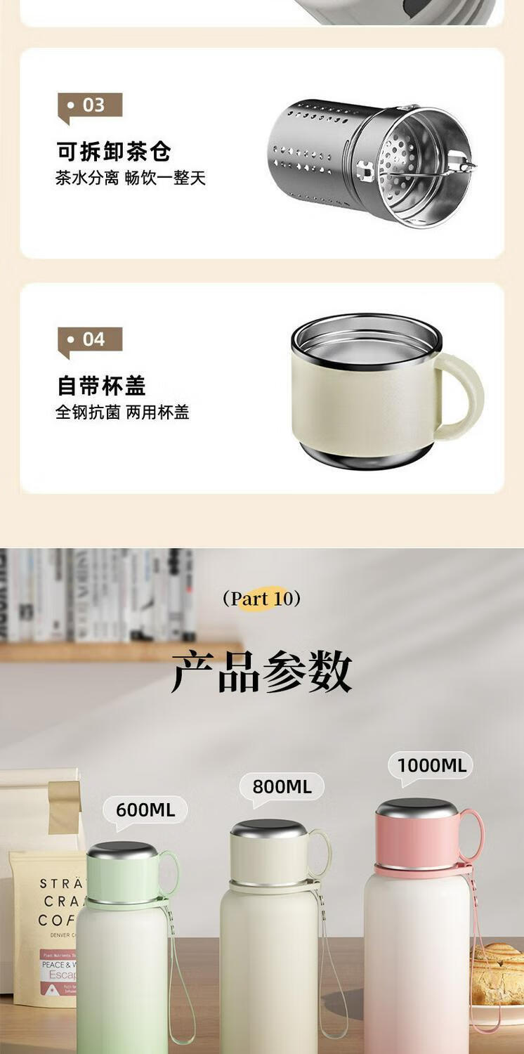咏夏保温杯大容量茶水分离泡茶杯子小清新便携水杯女学生不锈钢杯保冷 气质白色【316/茶水分离】 600ML