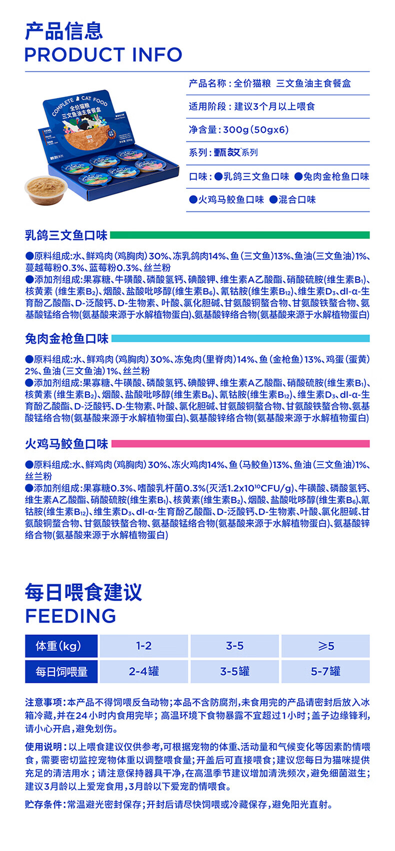 LEGENDSANDY蓝氏全价猫罐头三文鱼油主食餐盒混合口味 300g(50g/杯*6)