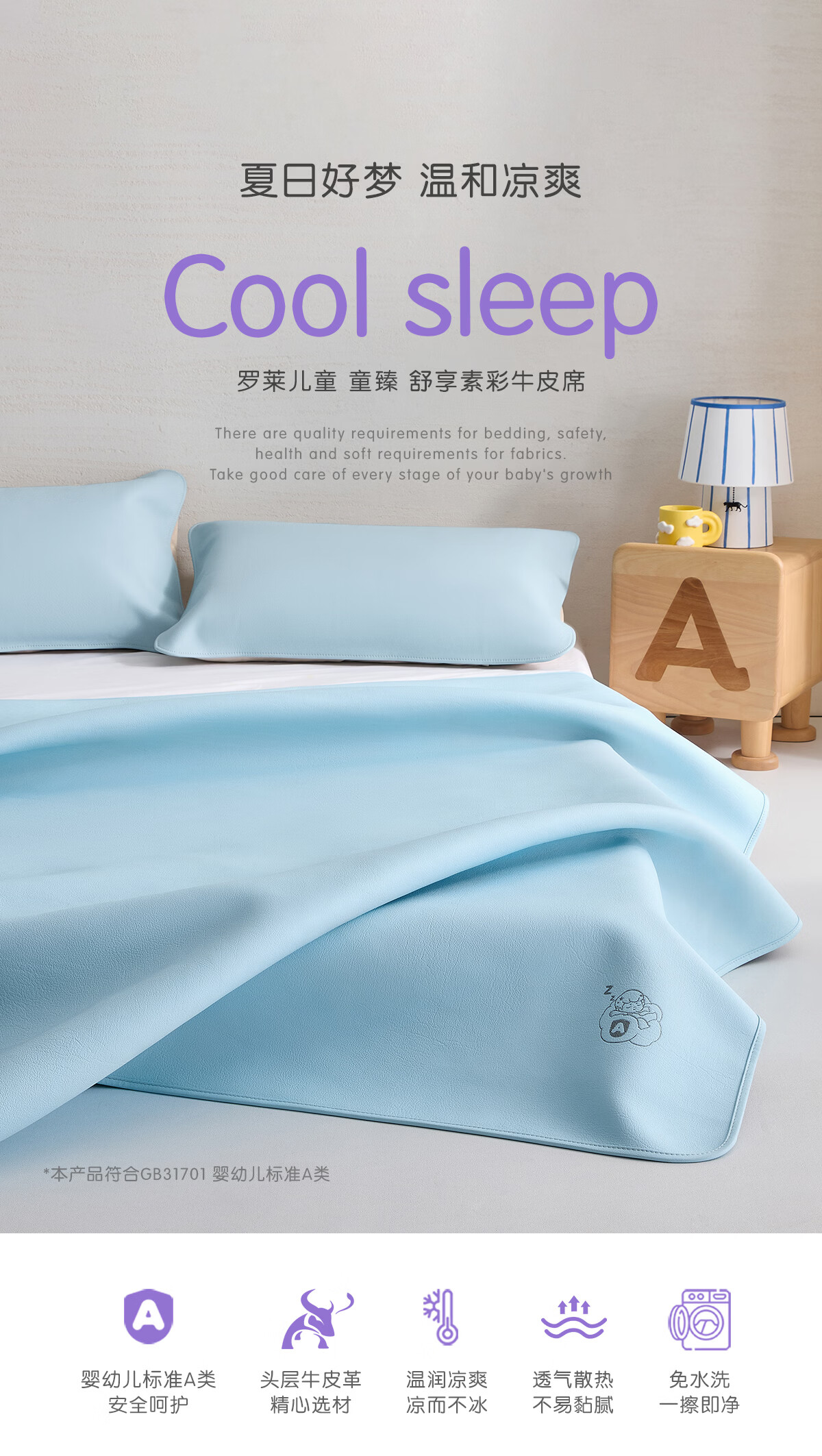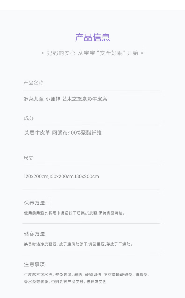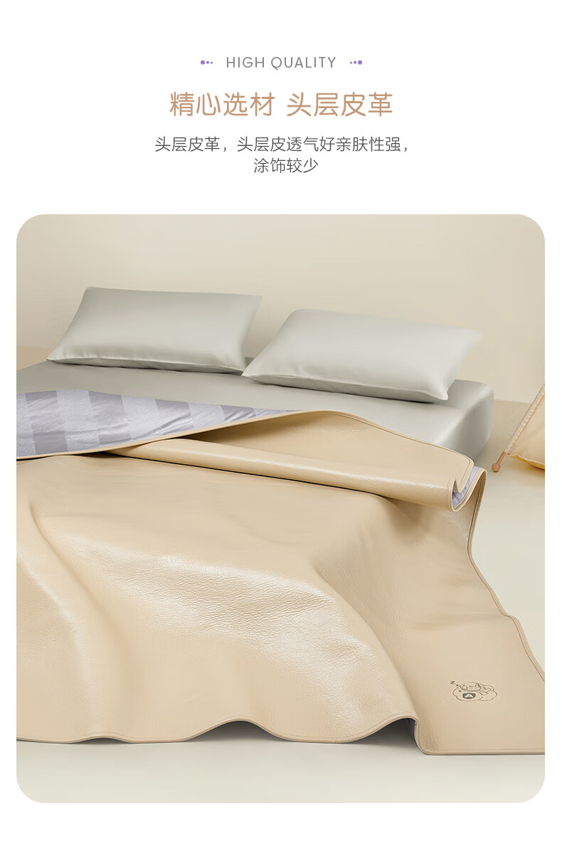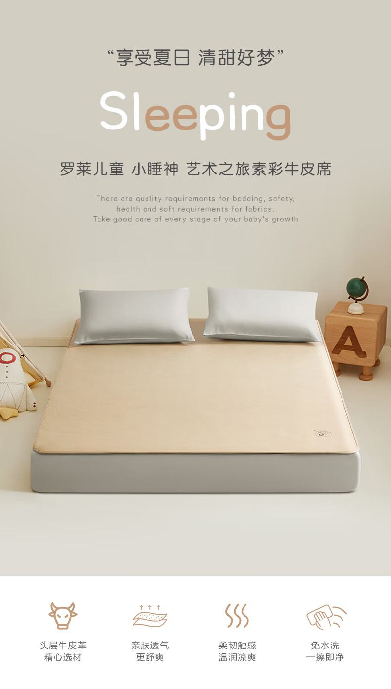 罗莱家纺婴幼儿A类头层牛皮席子夏季凉席空调席 童臻 舒享素彩牛皮席 1.2米床 200cm*120cm 单席不含枕套
