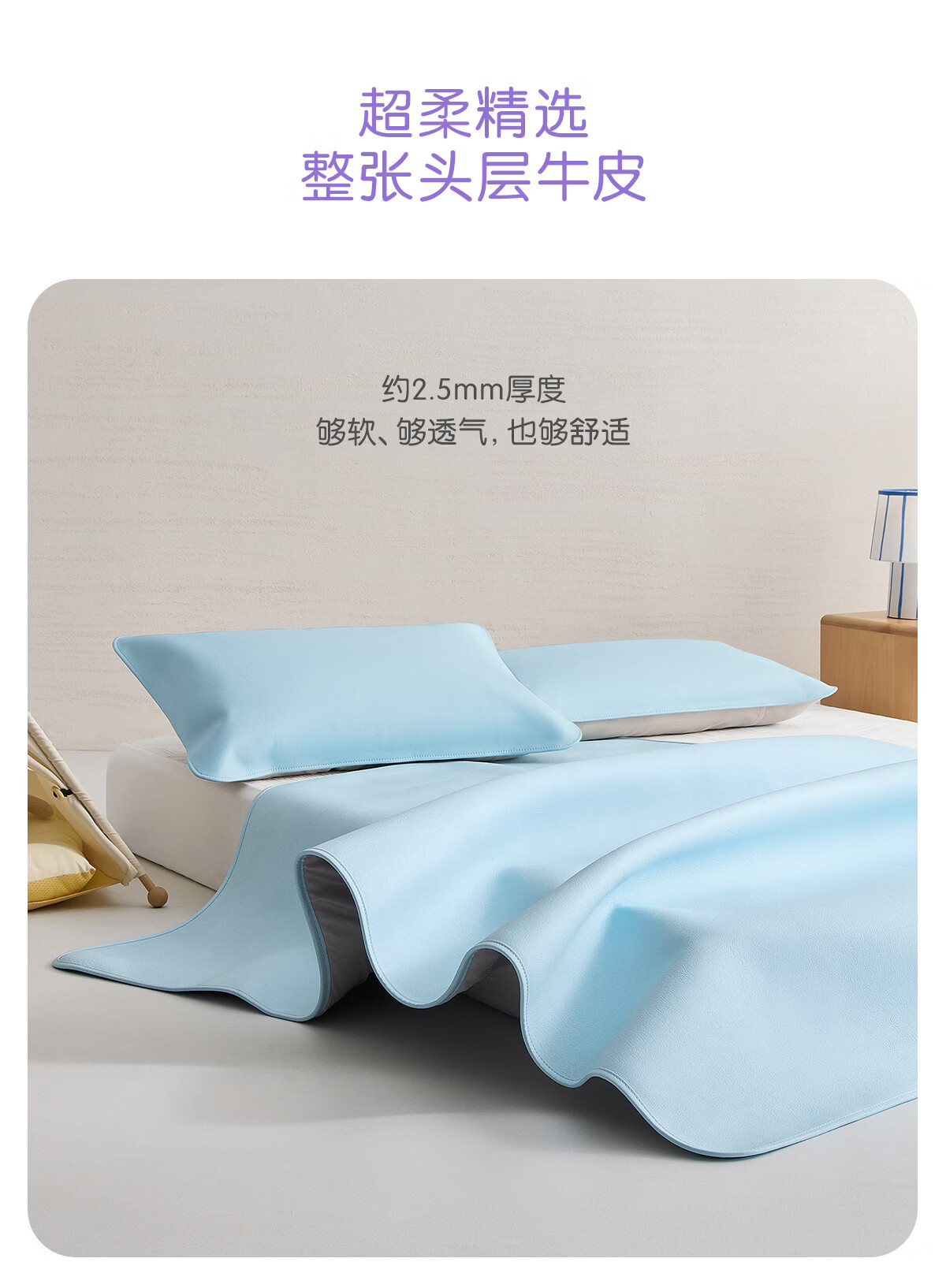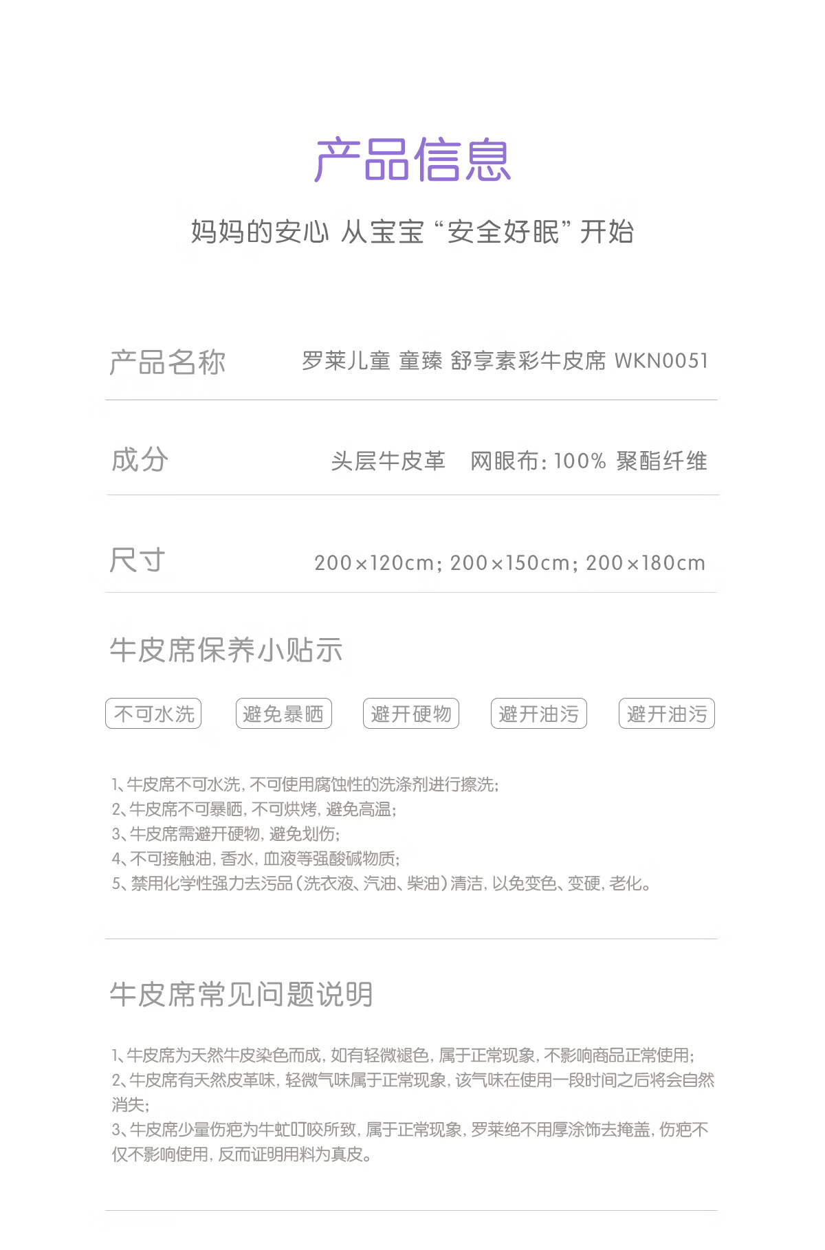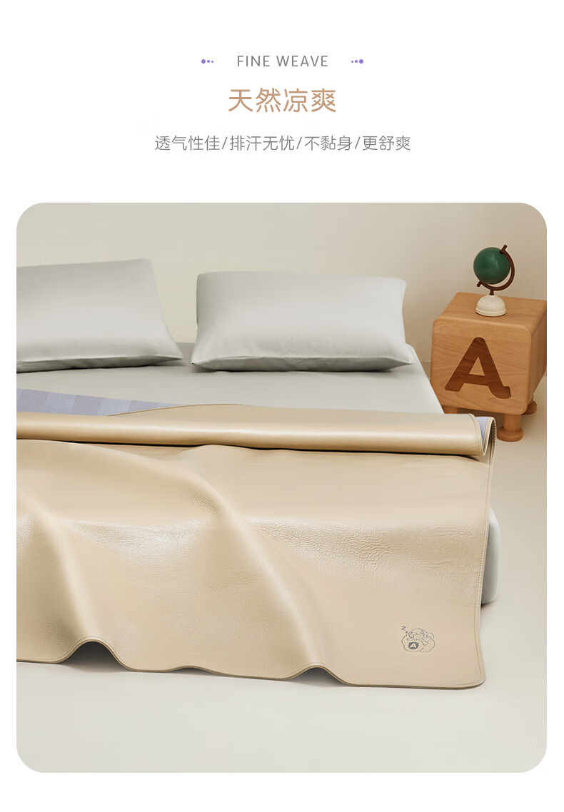 罗莱家纺婴幼儿A类头层牛皮席子夏季凉席空调席 童臻 舒享素彩牛皮席 1.2米床 200cm*120cm 单席不含枕套