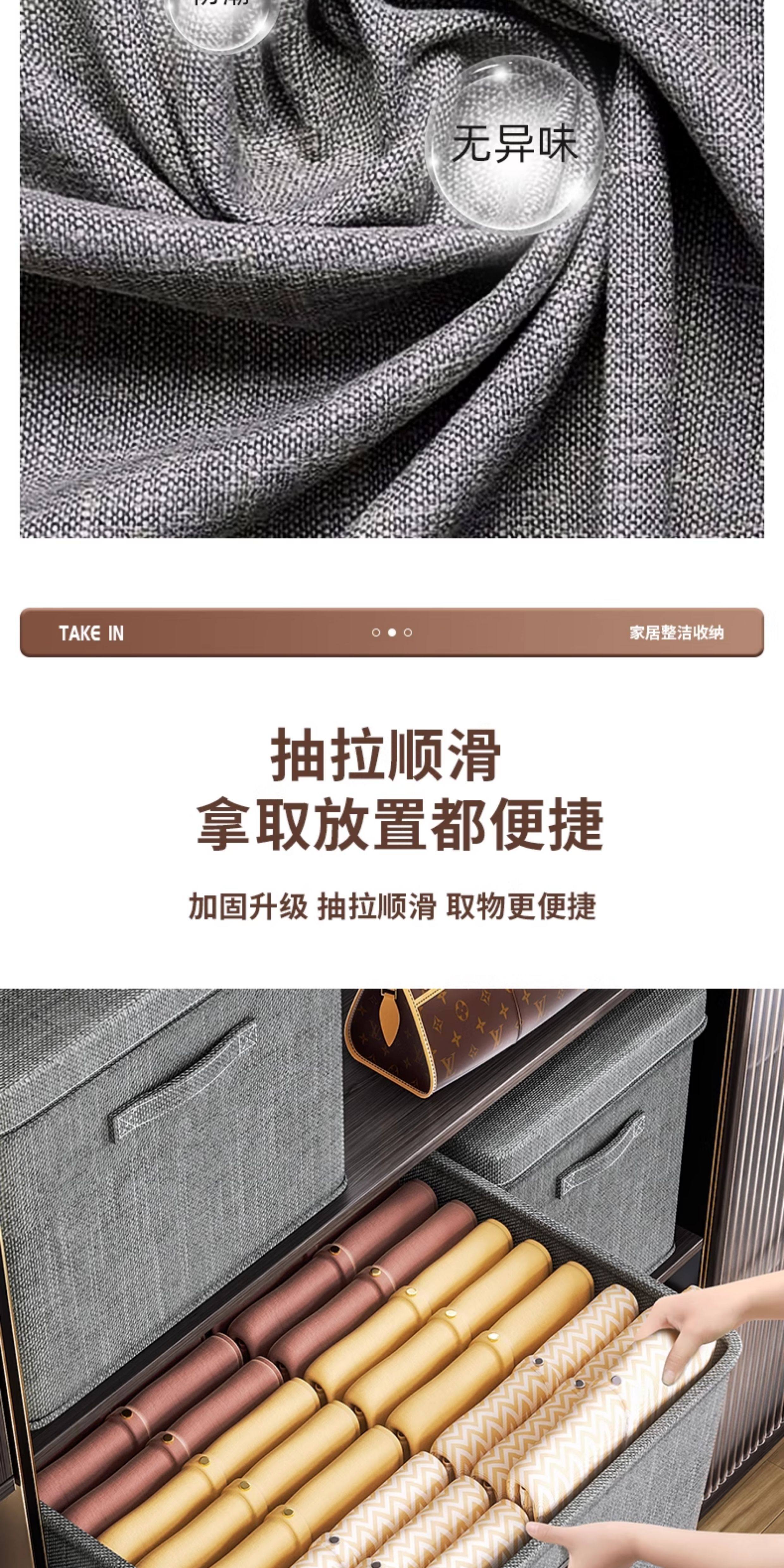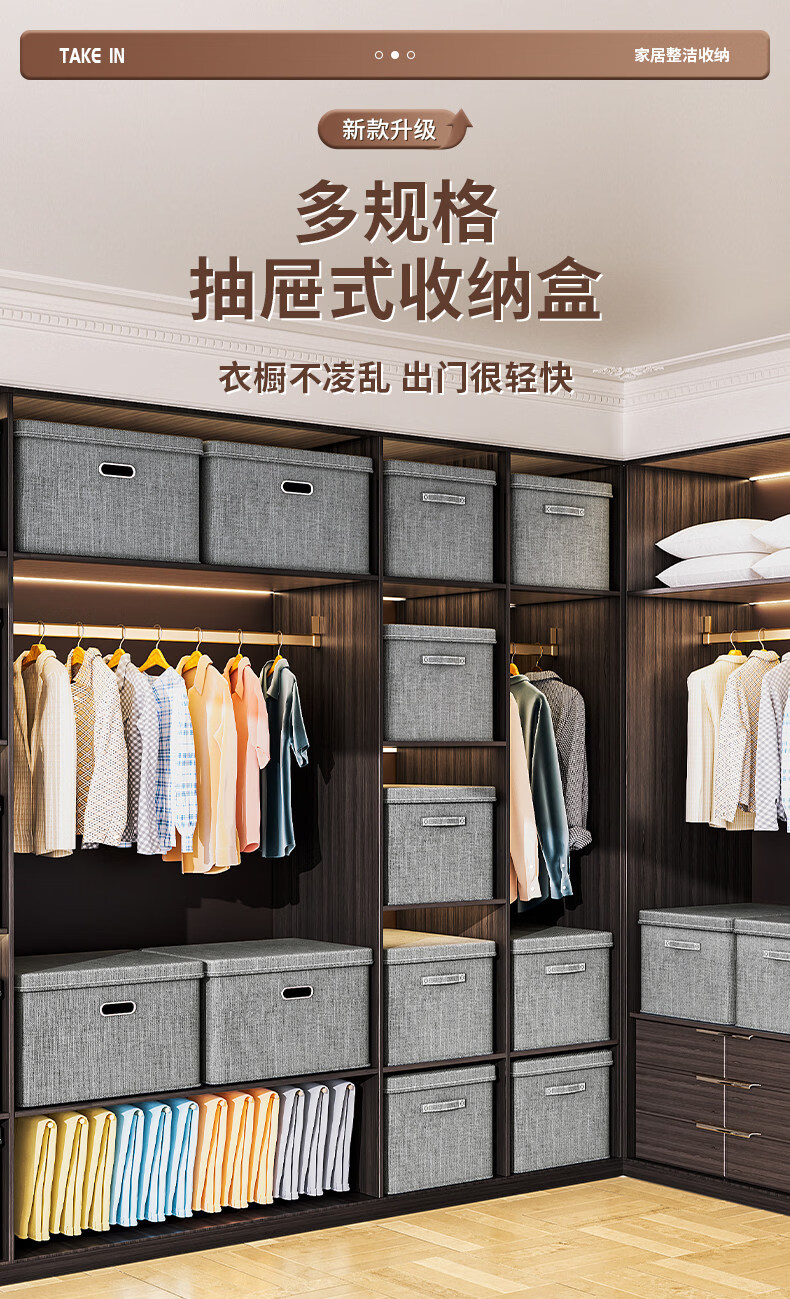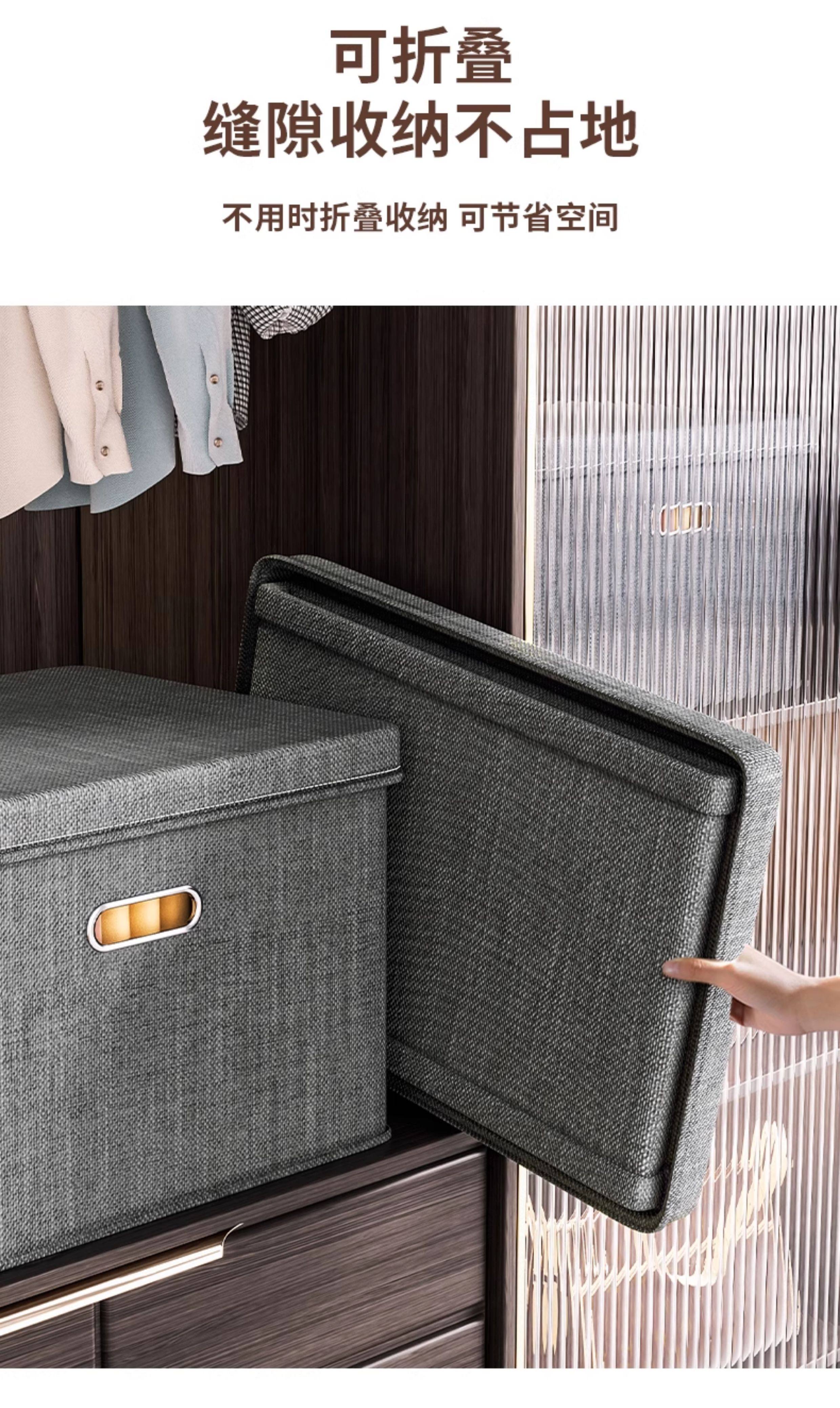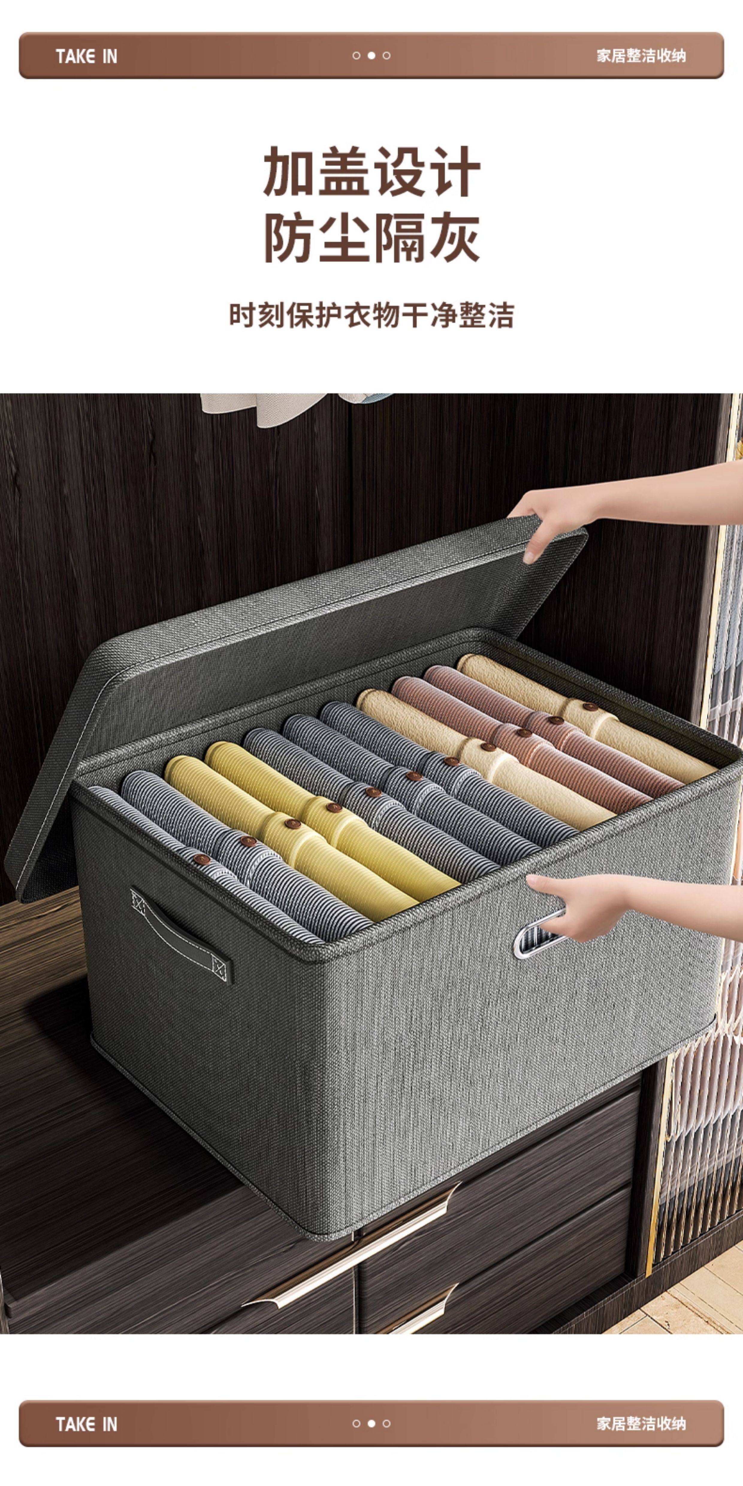 吱凡日本天山棉麻衣服收纳箱家用布艺整理盒衣柜衣物裤被子分层储物箱 【深灰色】小号【可装10件T恤或衬衫】 1个装【PP板,0异味】