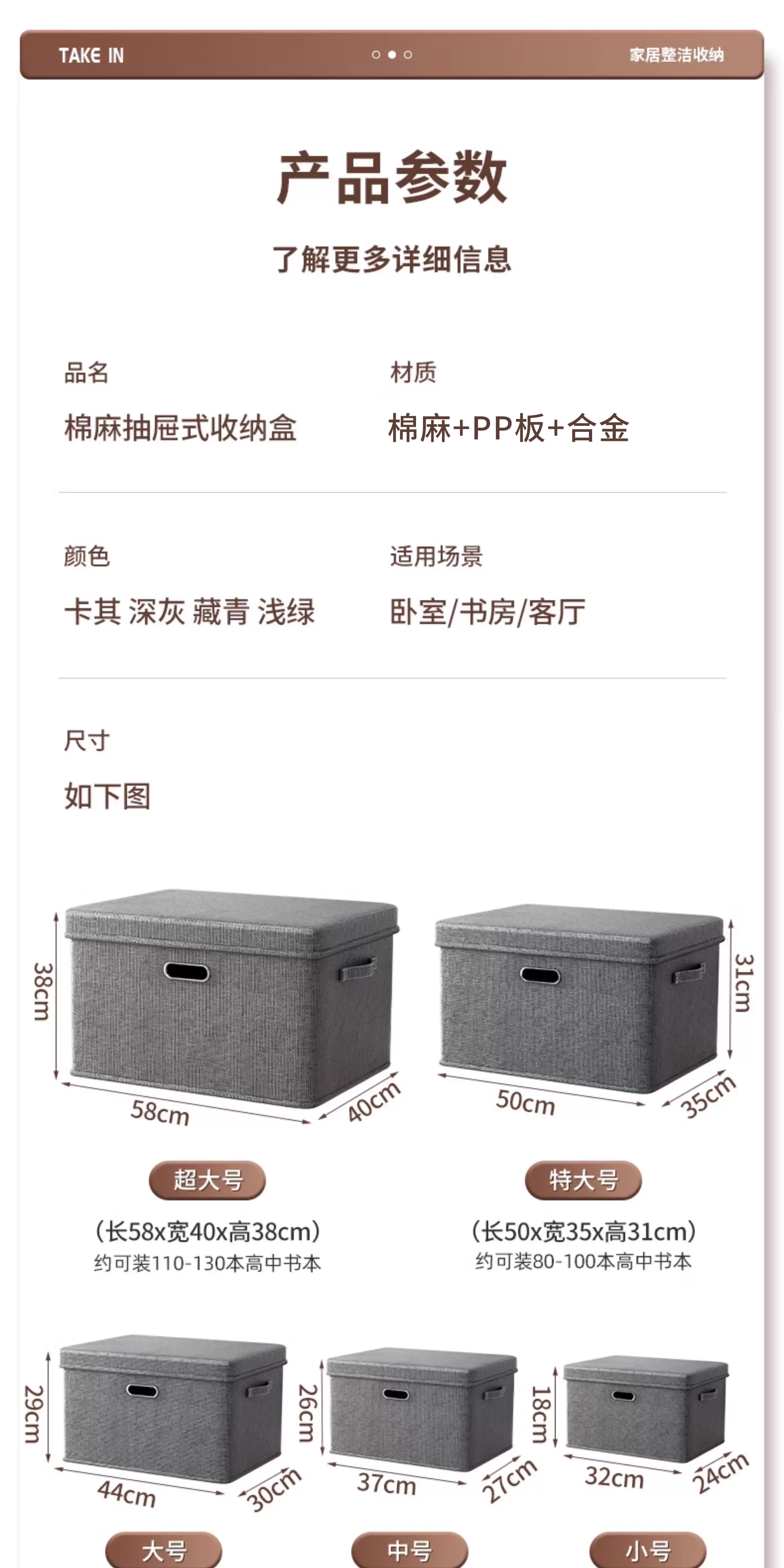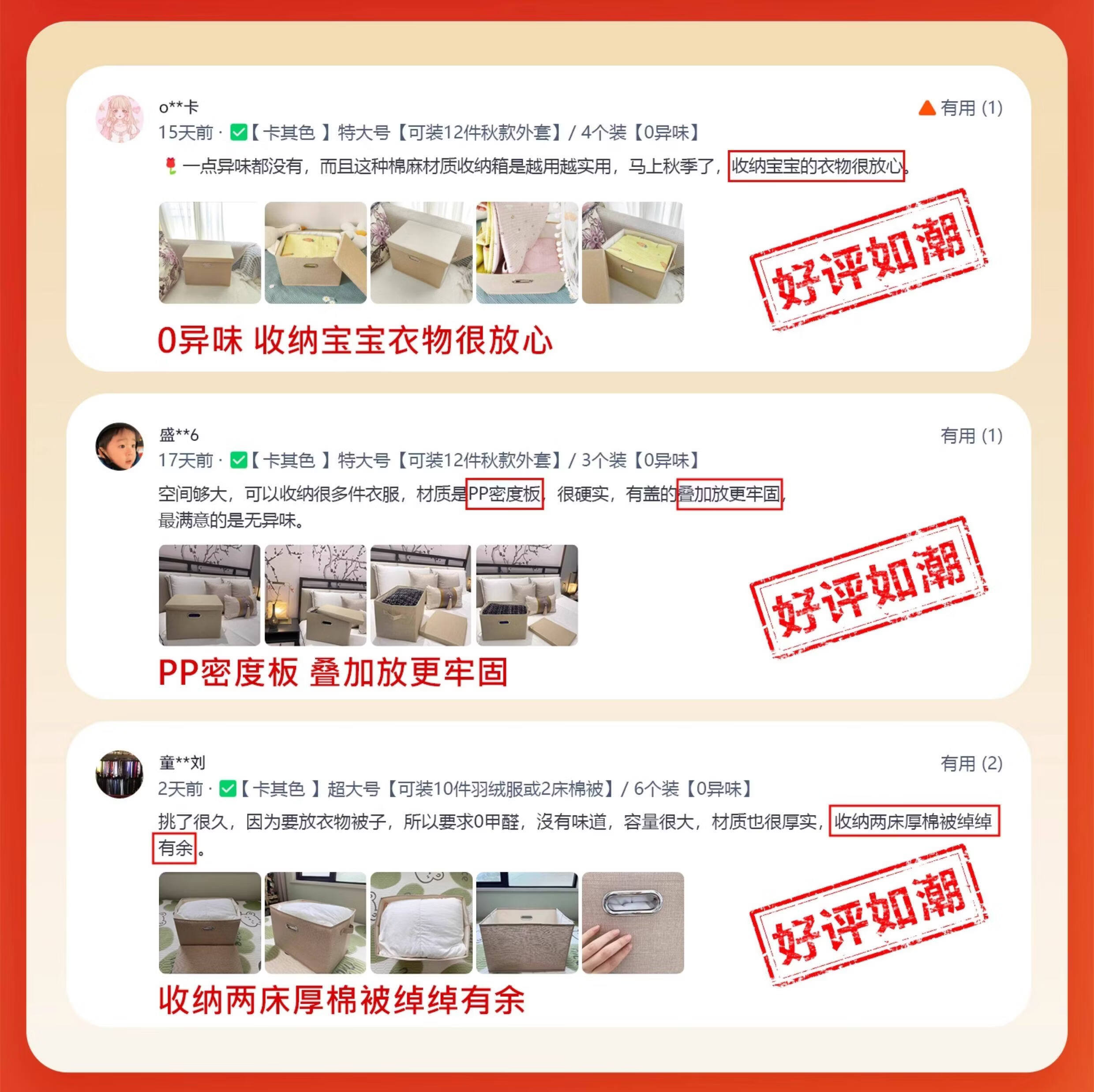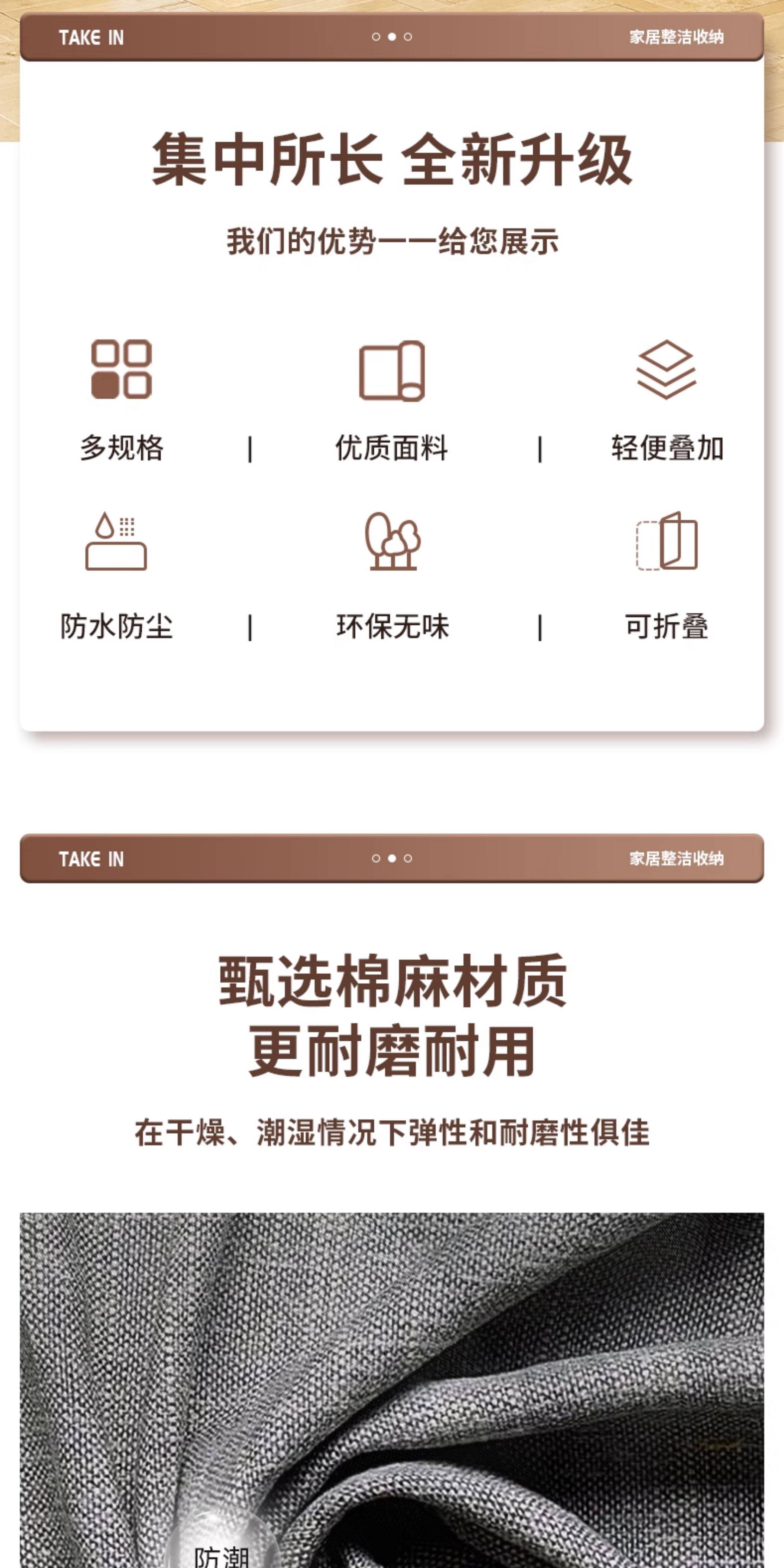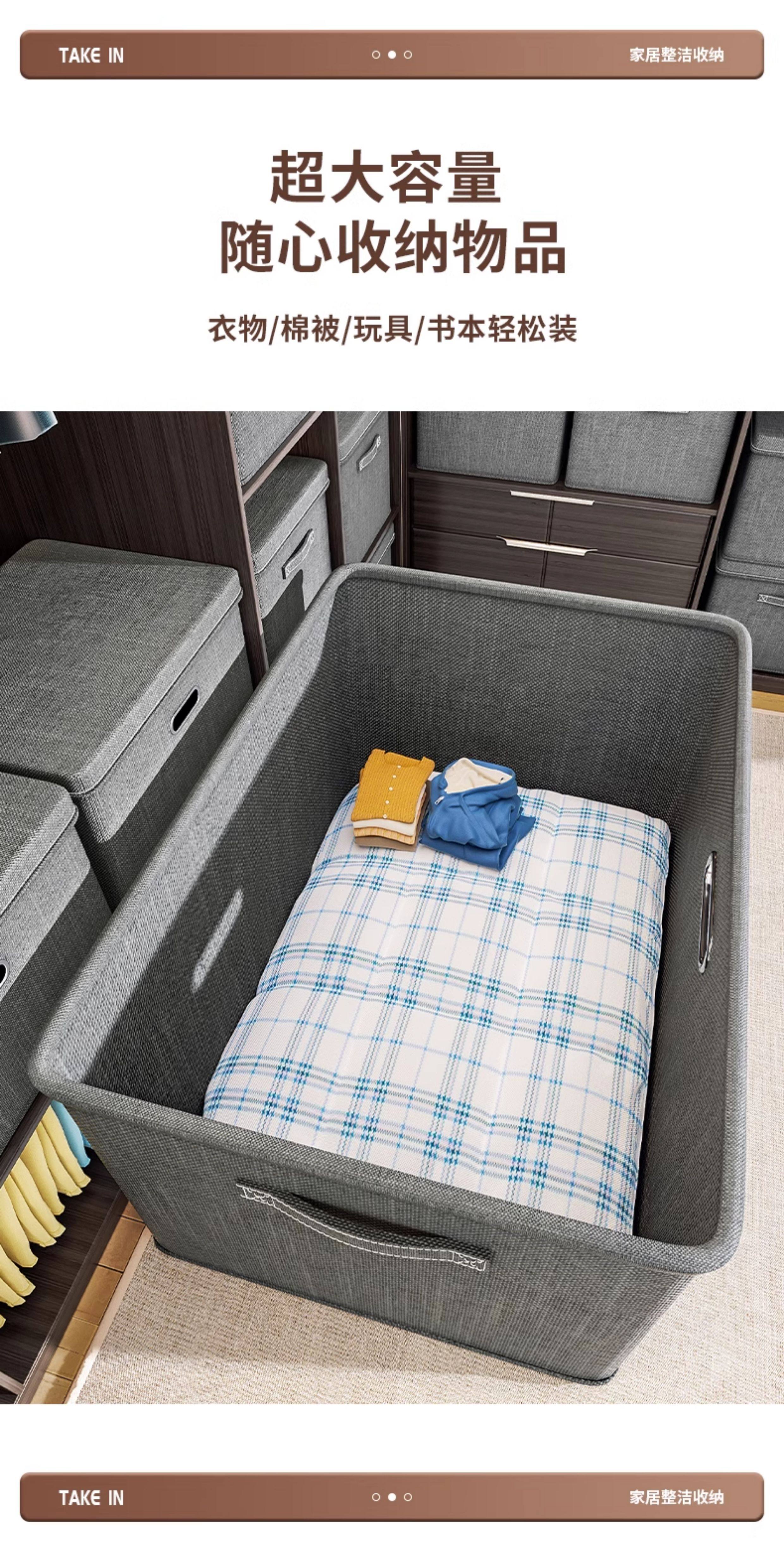 昂图收纳箱衣服衣物储物折叠神器被子整理大容量密封棉麻布艺衣柜专用 【卡其色-中号66L】 50*40*33cm 1个 【天山棉麻丨健康无味丨加粗钢架】