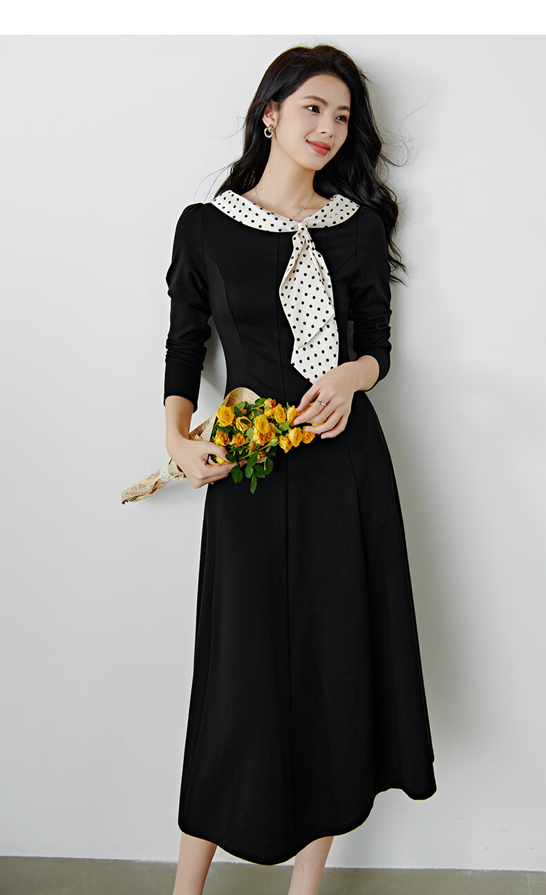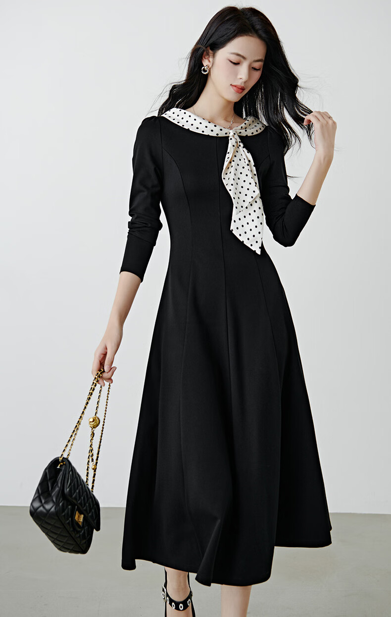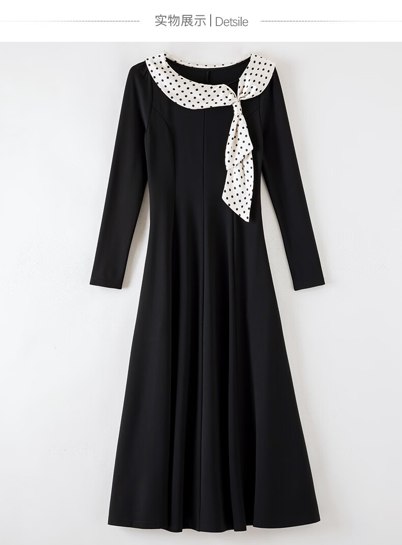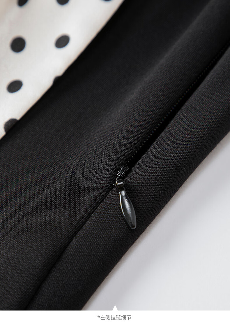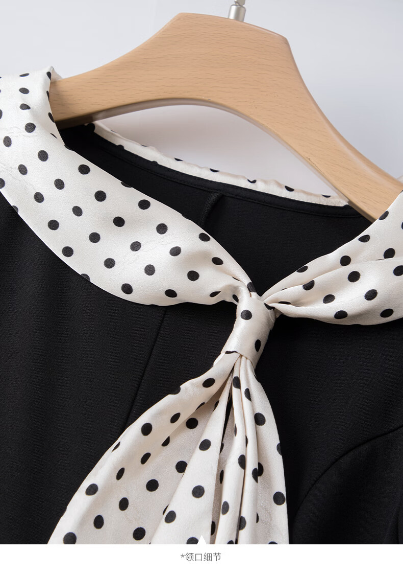 晚白2026年春款时尚波点法式拼接裙子修身显瘦弹力舒适通勤连衣裙 黑色 M