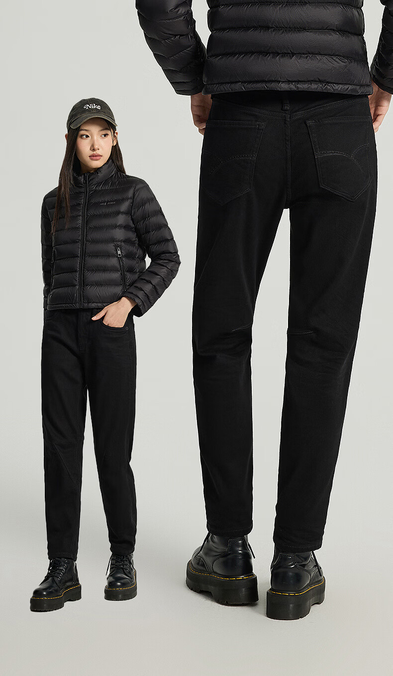 ABLE JEANS【立体锥形裤】冬季新款女士舒适羊毛牛仔裤小个子保暖防寒显瘦 古黑 /356801622826 30