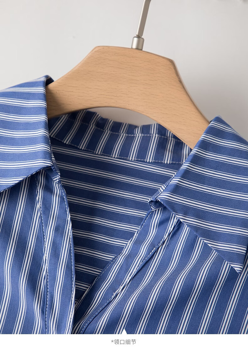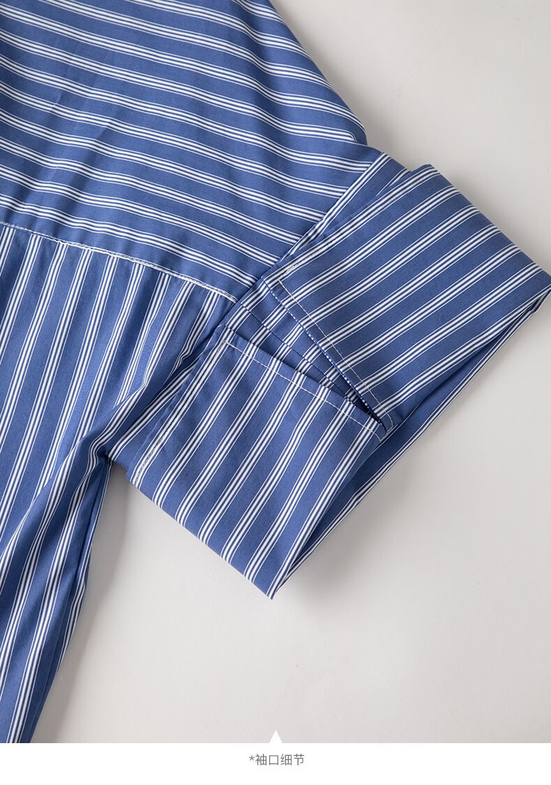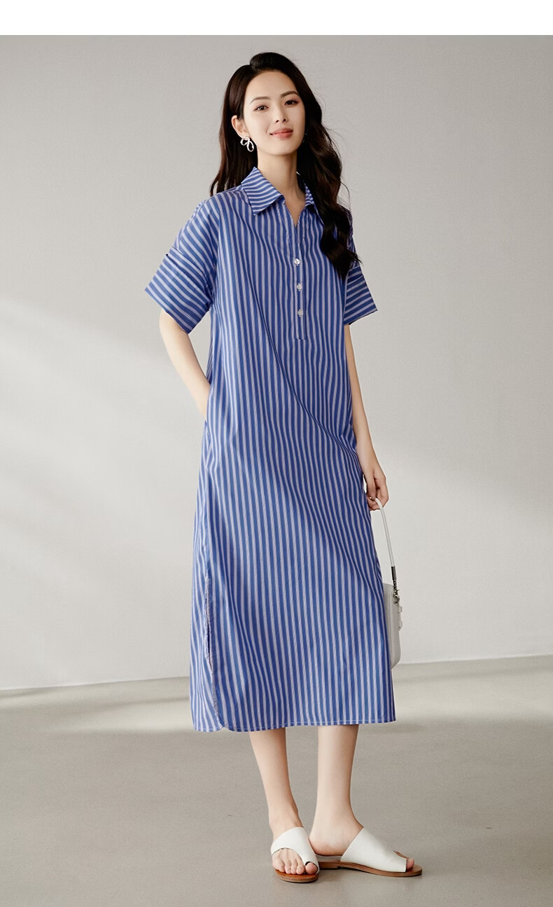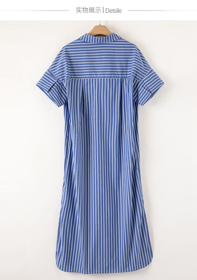 晚白【新品】2026年春款经典蓝白条纹衬衫裙宽松显瘦大码短袖连衣裙 蓝色 S