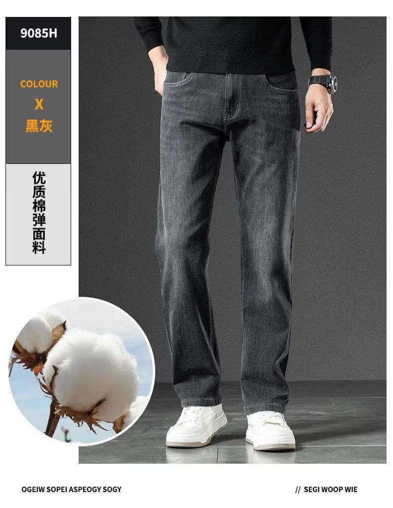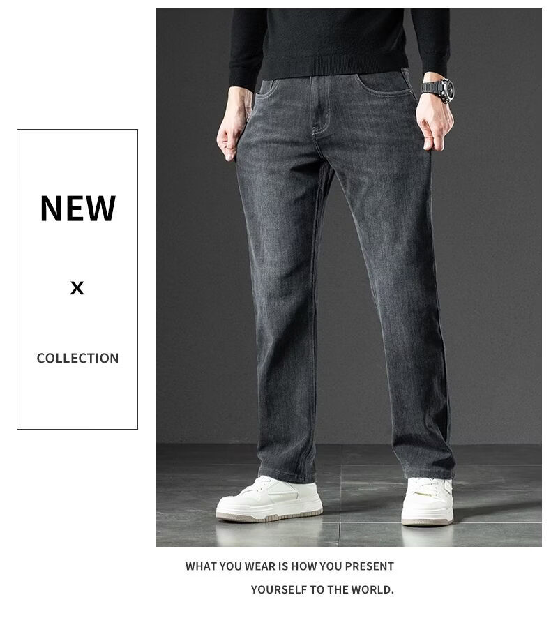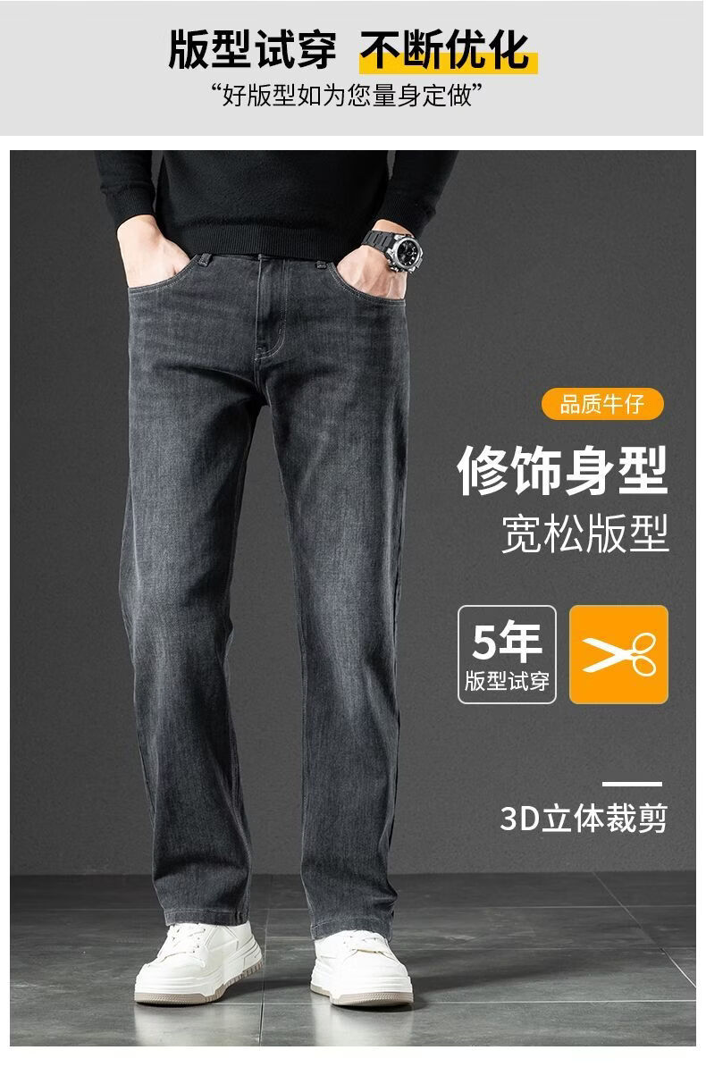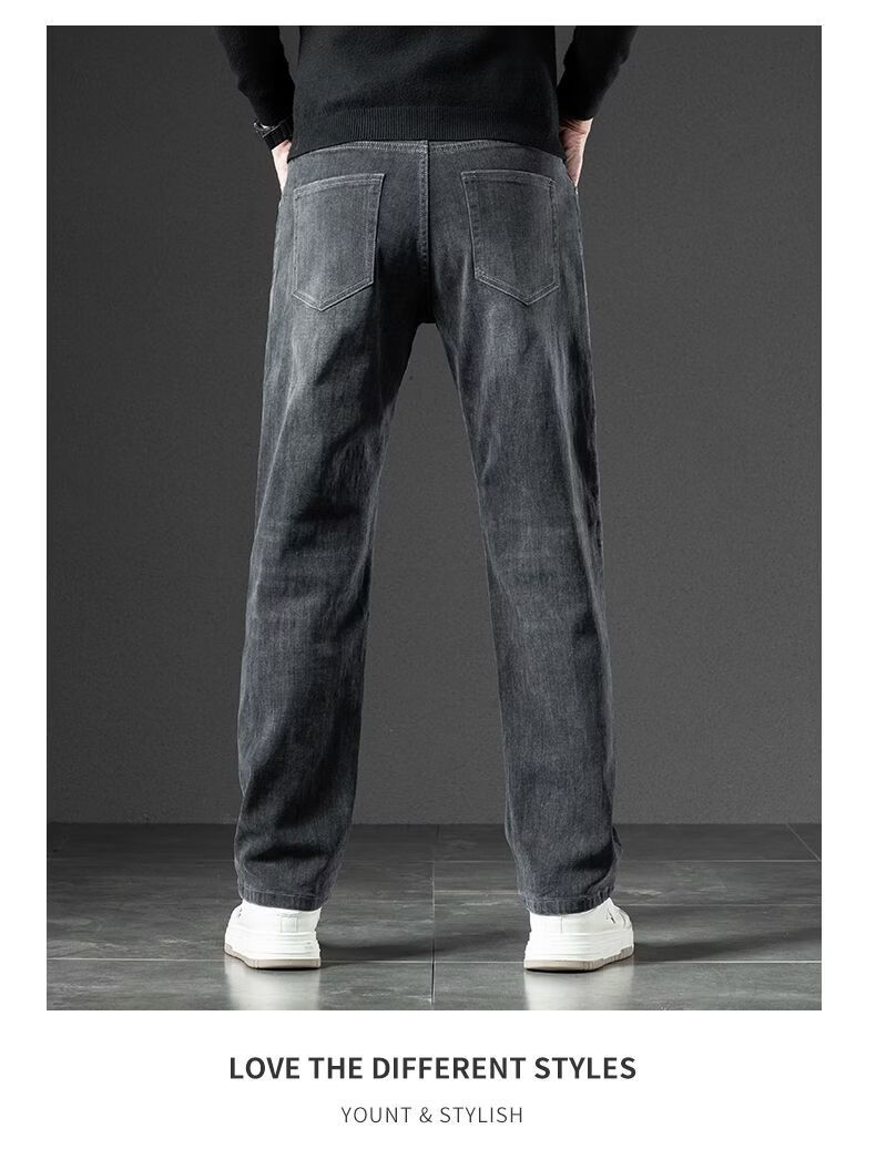 真维斯(Jeanswest)2026春季厚款百搭美式水洗牛仔裤男潮牌宽松弹力垂感直筒休闲裤 黑灰 36