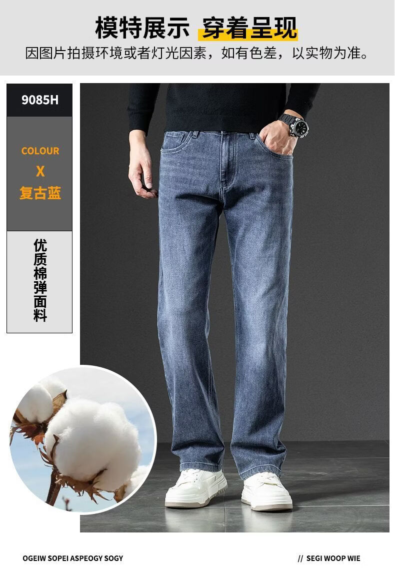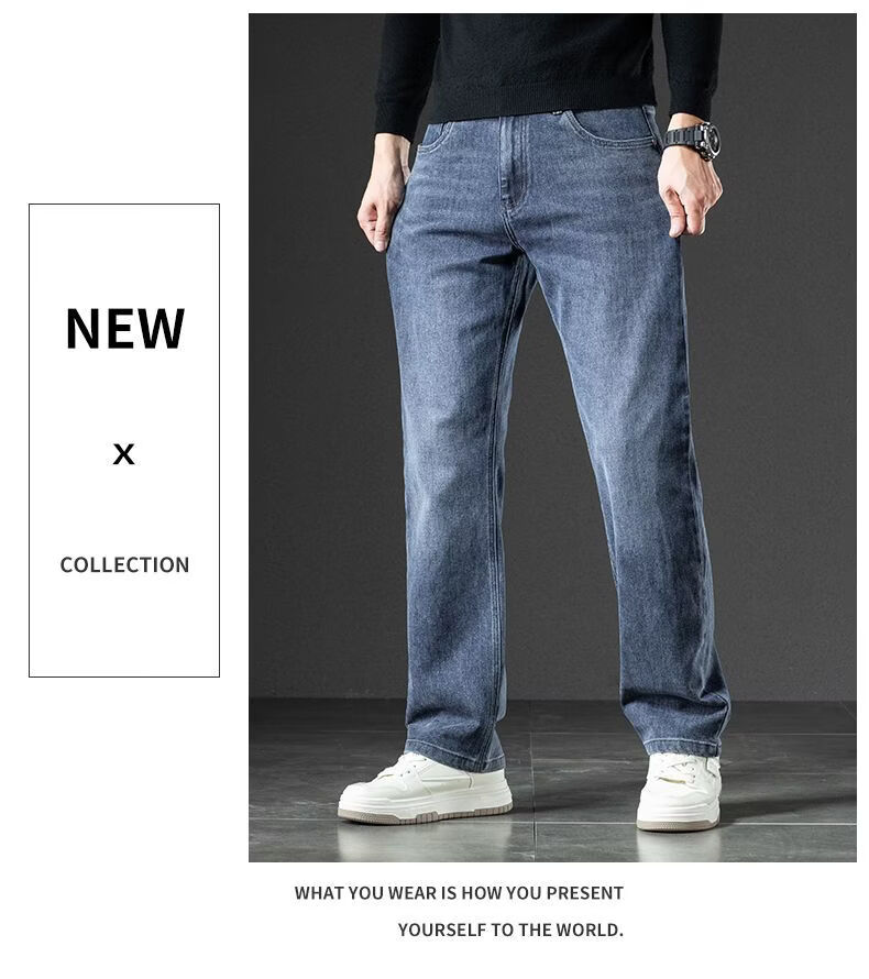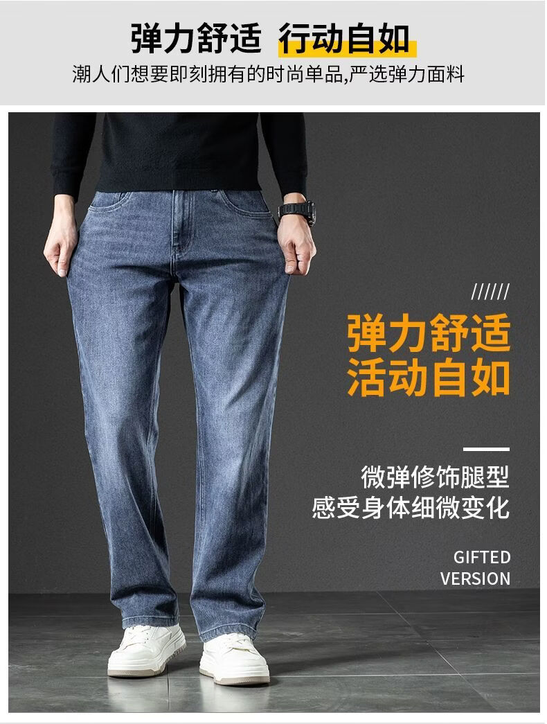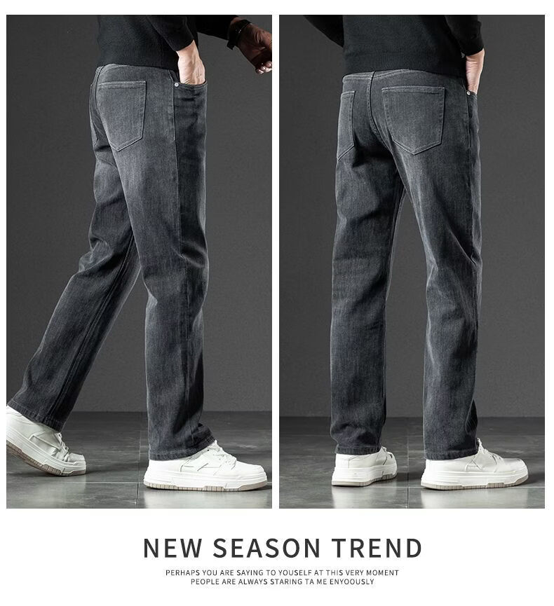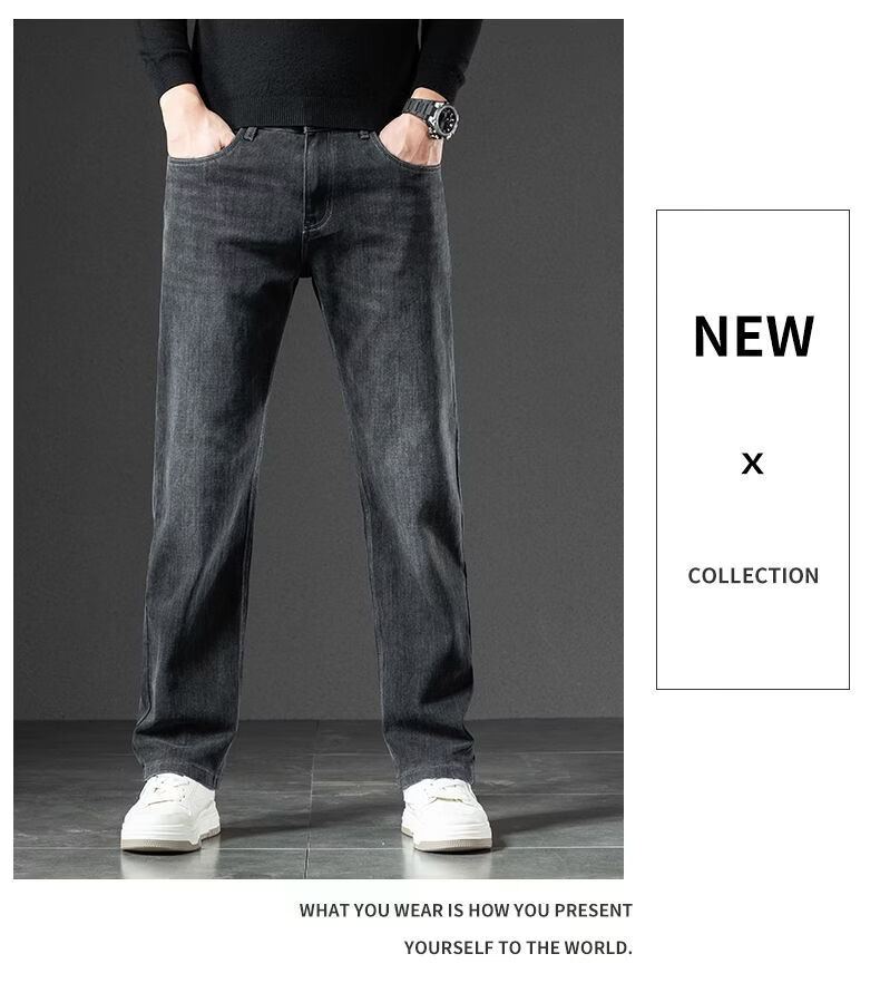 真维斯(Jeanswest)2026春季厚款百搭美式水洗牛仔裤男潮牌宽松弹力垂感直筒休闲裤 黑灰 36