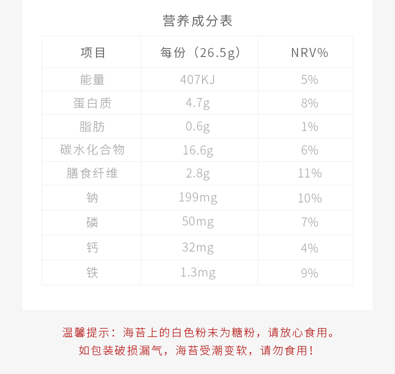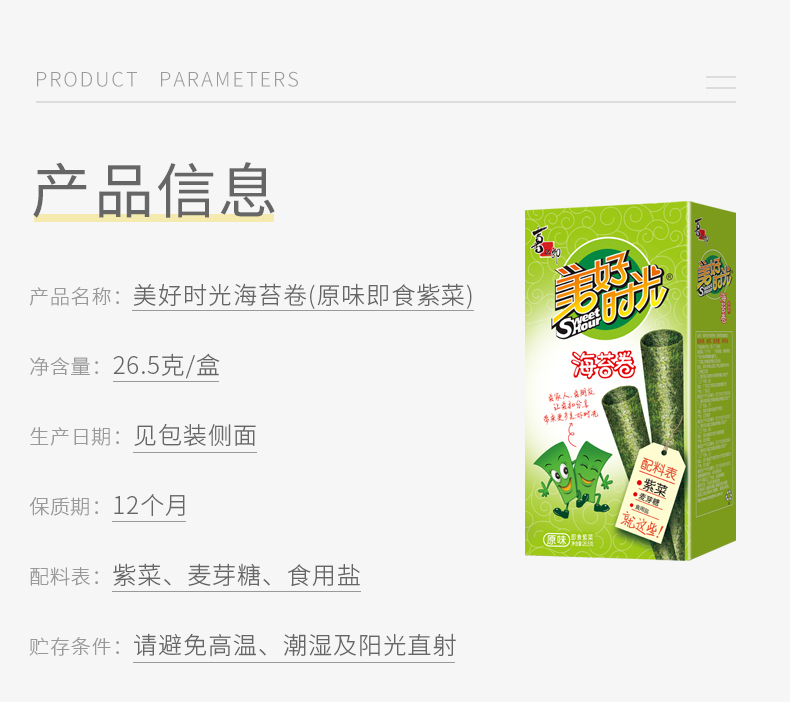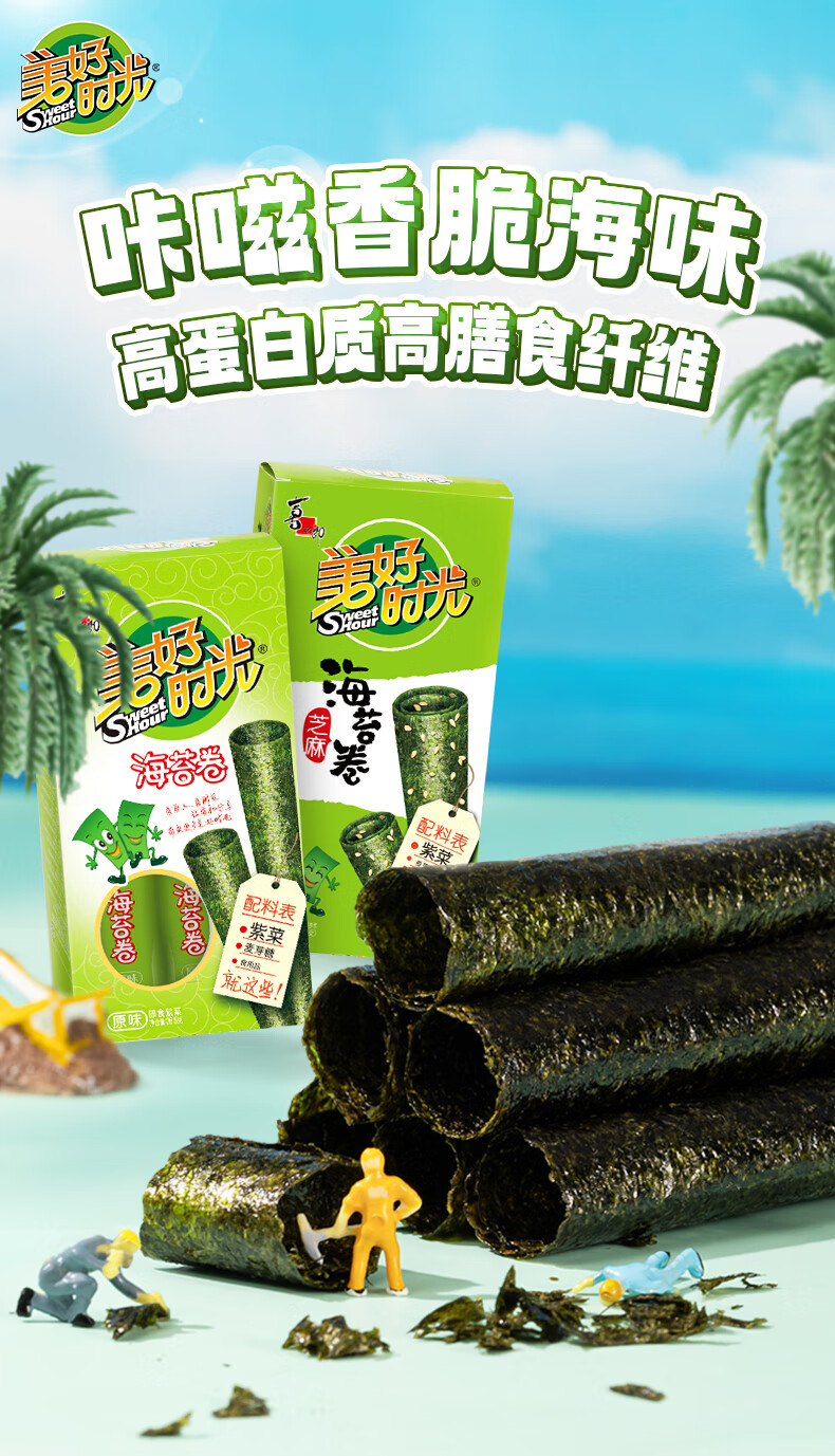 美好时光原味海苔卷9支共26.5g非油炸即食紫菜 儿童零食休闲零食