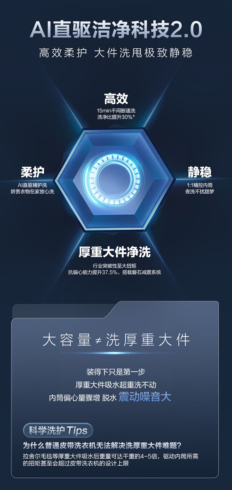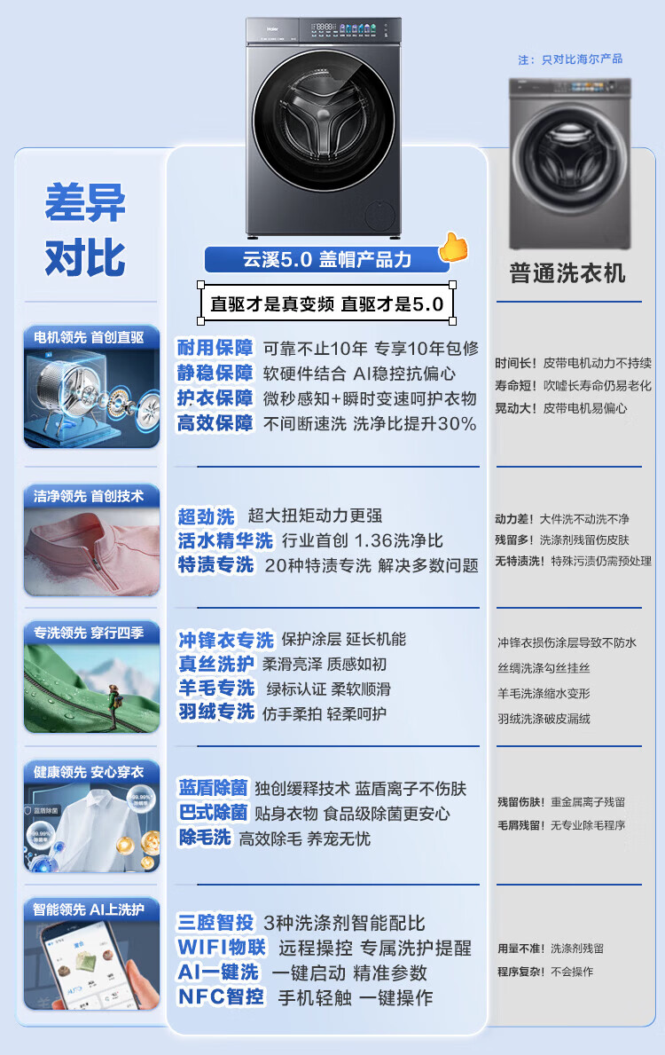 海尔(Haier)【云溪5.0重磅首发新品】10公斤滚筒洗衣机全自动AI直驱 智能投放1.28高洗净比蓝盾双除菌7AD1U1 蓝盾双重除菌+双智能投放+活水精华洗 滚筒