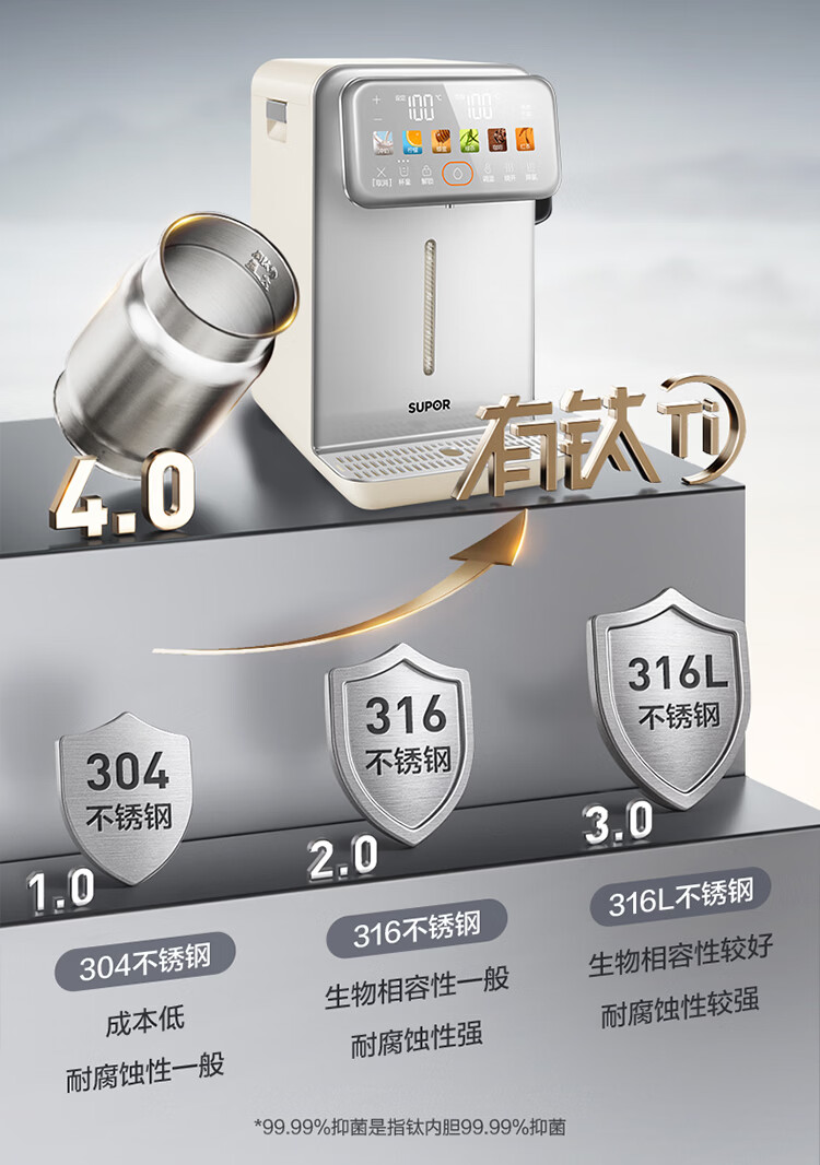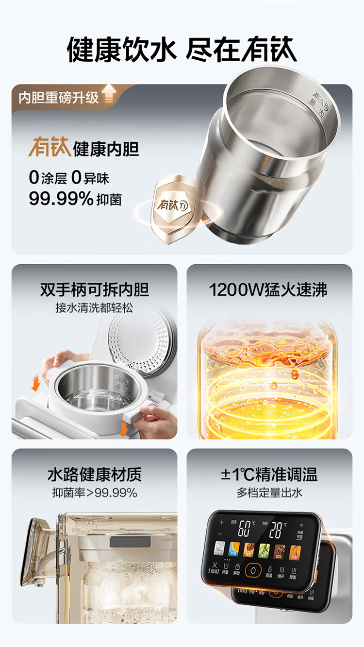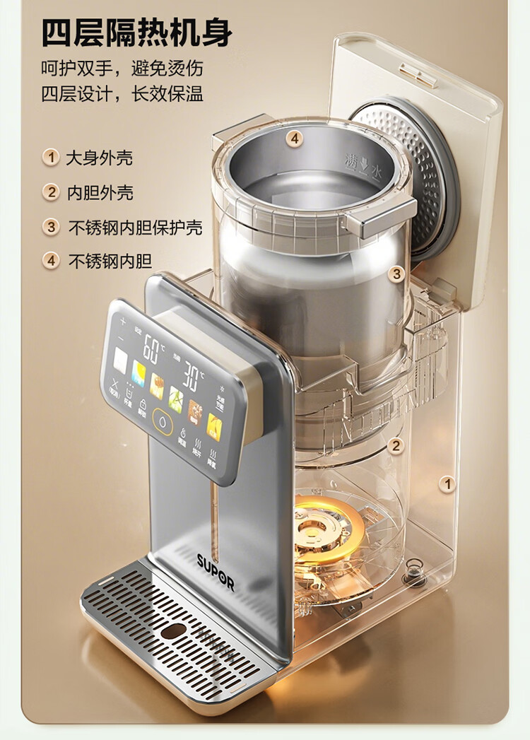 苏泊尔(SUPOR)风冷热水瓶即热熟水机全能大师MAX 恒温保温热水壶 5L大容量电热水壶有钛可拆内胆SW-50T808MAX