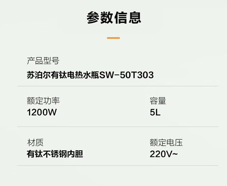 苏泊尔(SUPOR)5升大容量 电热水瓶饮水机恒温水壶电热水壶烧水壶 彩屏多段保温 有钛可拆内胆SW-50T303