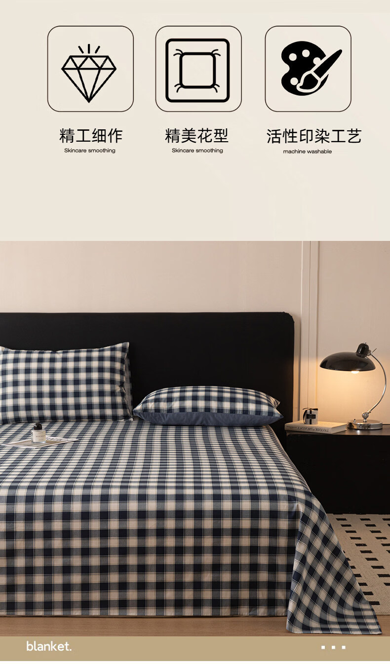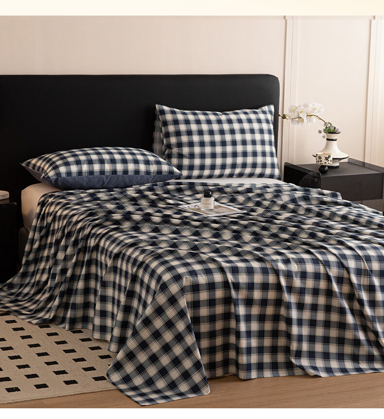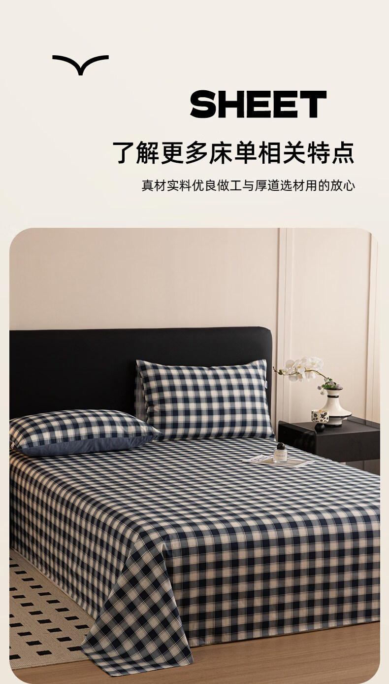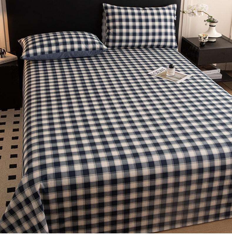 阿尔皮纳袋鼠纯棉床单单件100纯棉单双人200x230被单学生宿舍床罩三件套四季款 藏青学院【柔软全棉亲肤透气不易起球】 单床单:120*230cm【适合0.9m床】