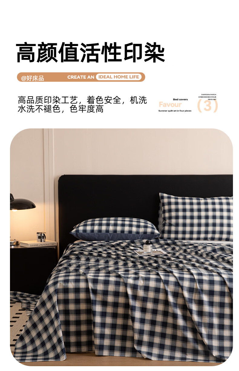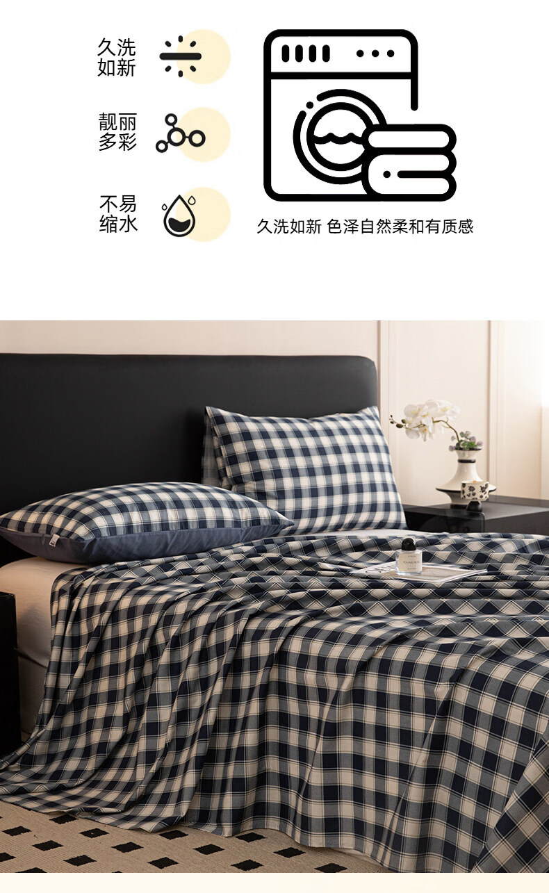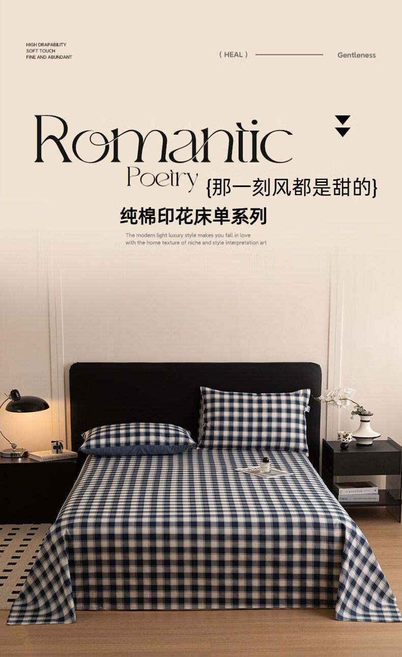阿尔皮纳袋鼠纯棉床单单件100纯棉单双人200x230被单学生宿舍床罩三件套四季款 藏青学院【柔软全棉亲肤透气不易起球】 单床单:120*230cm【适合0.9m床】